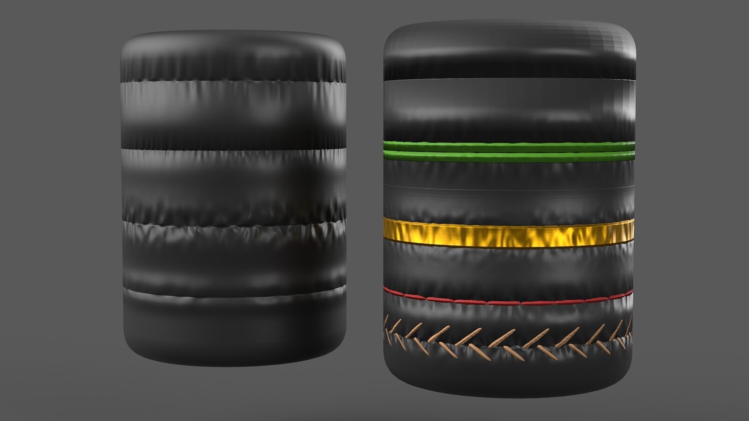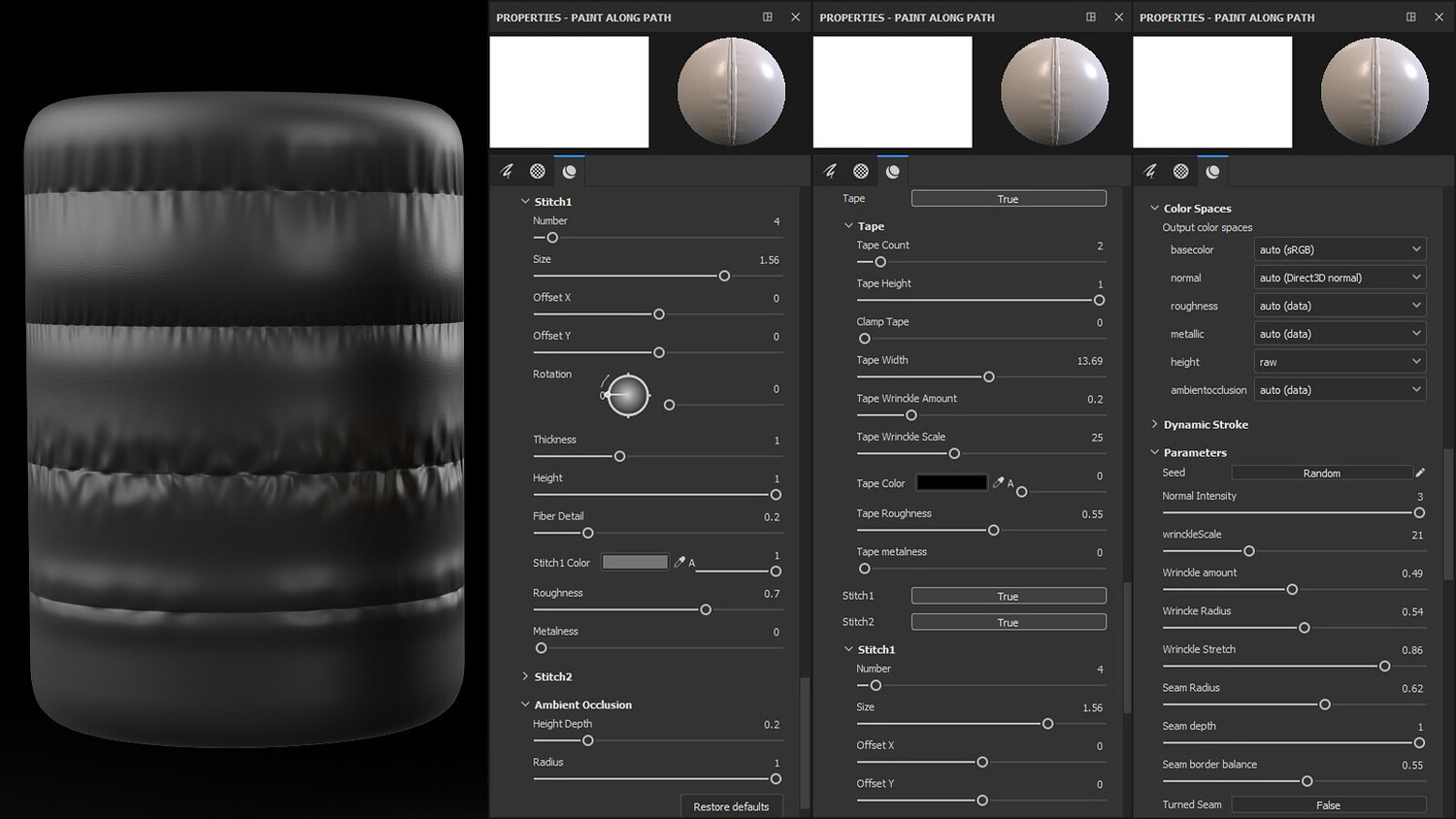 Stitches (2 Layers): Size, Width, Number, Height, Depth, Rotation, X/Y Offset, Color, Roughness, Metallic