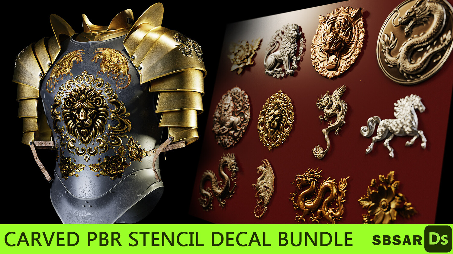 Carved PBR Decal Stencil Bundle (SBSAR + Texturesets)