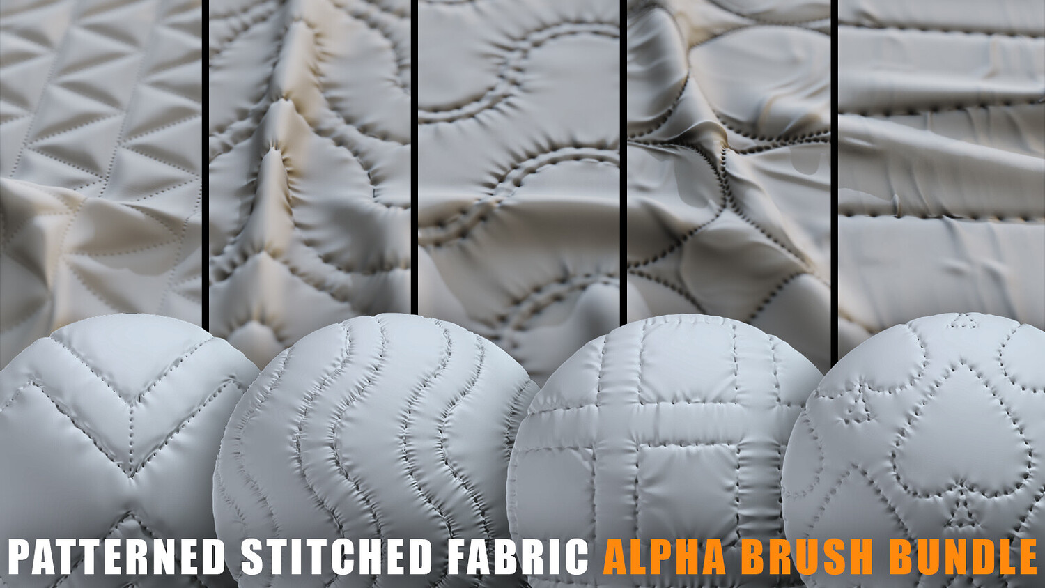 Stitched Fabric Patterns Alpha Brush Bundle (2k tiff 16bit-normal-AO)