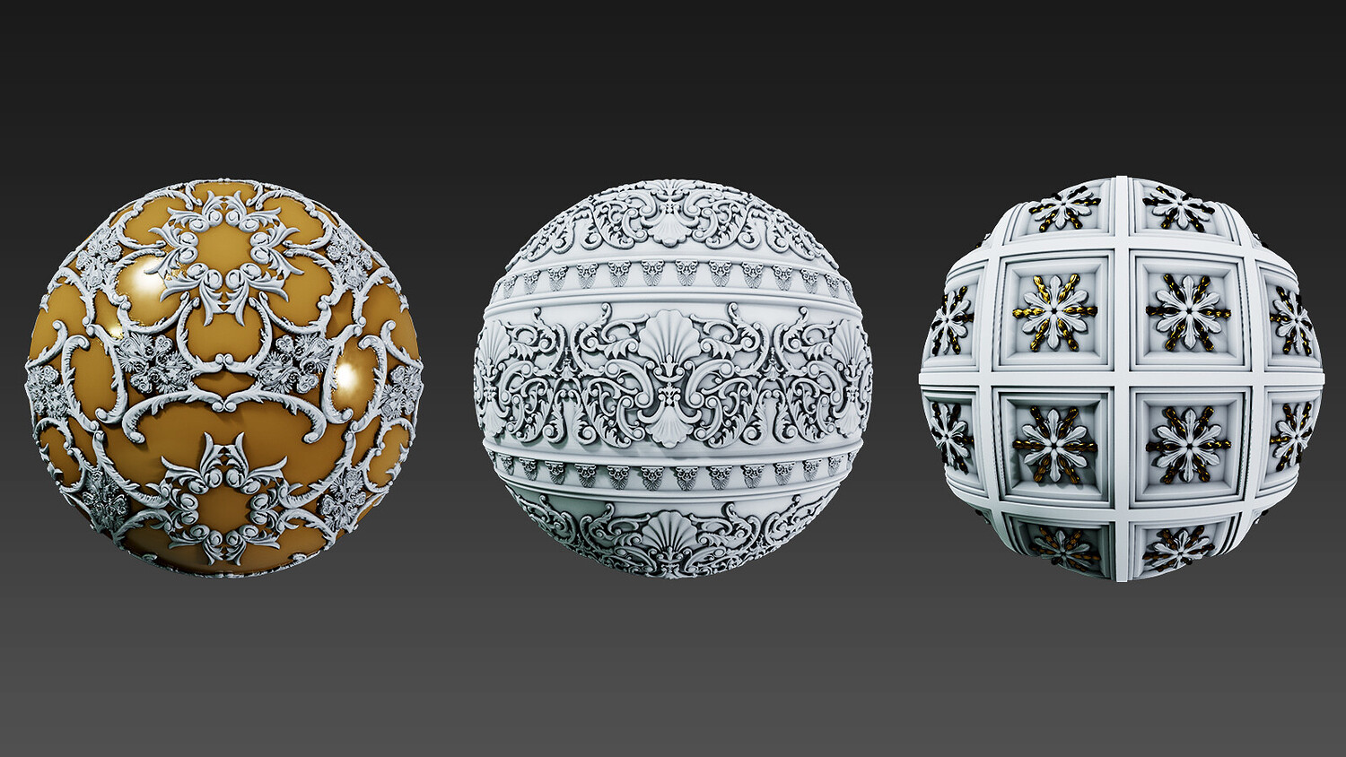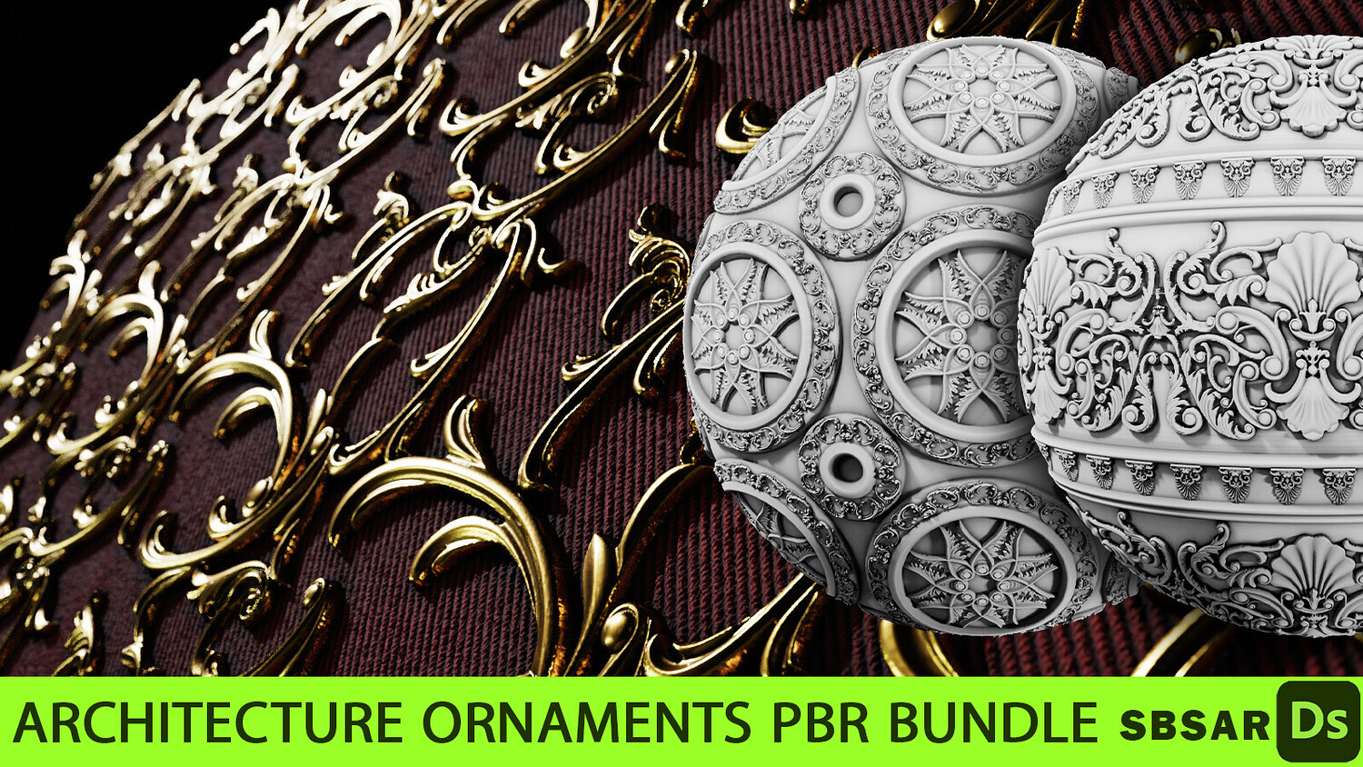 Architecture Ornaments PBR Material Bundle includes 15 high quality PBR tilable substance material for expedite your architectural projects workflow.