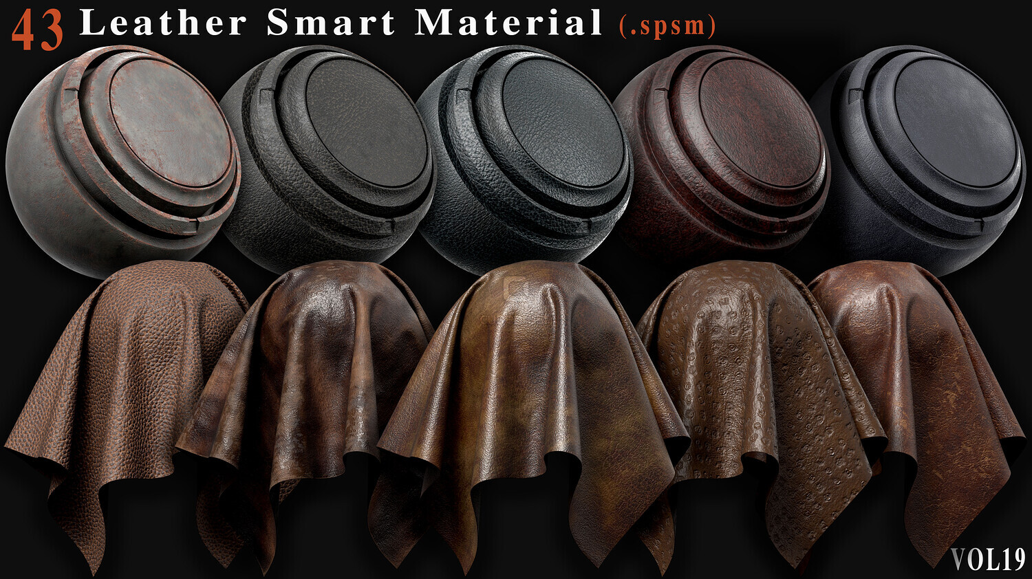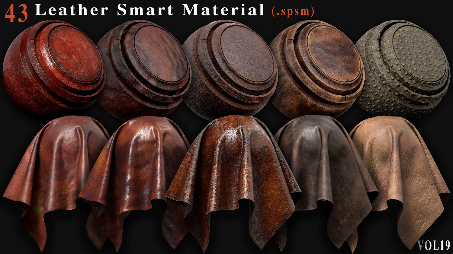 Package Includes: • 43 Leather Smart Materials (.SPSM) for Substance Painter • High-quality preview images