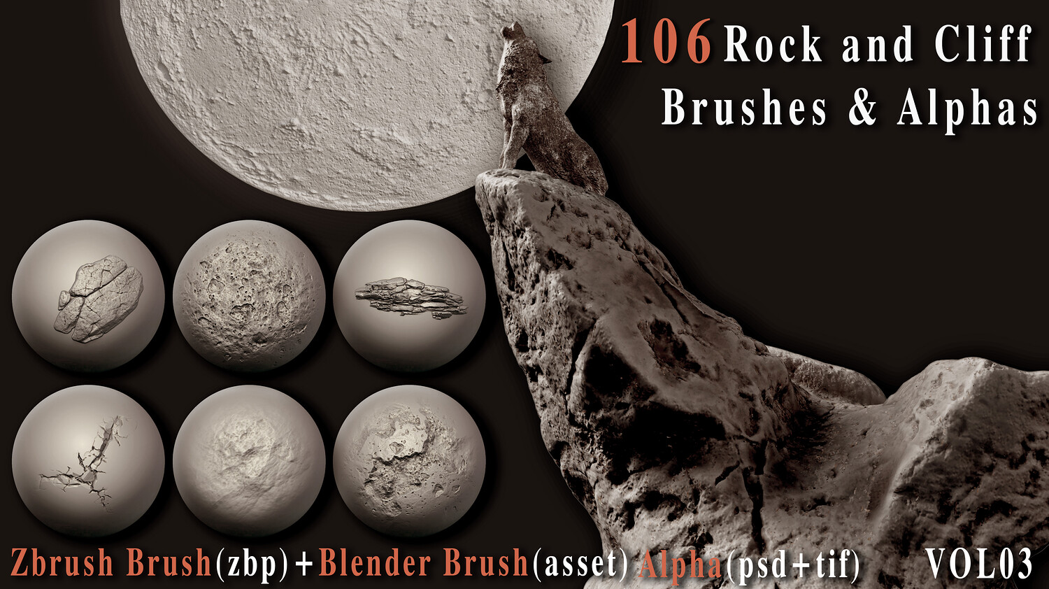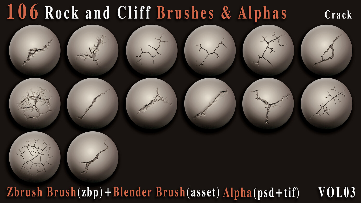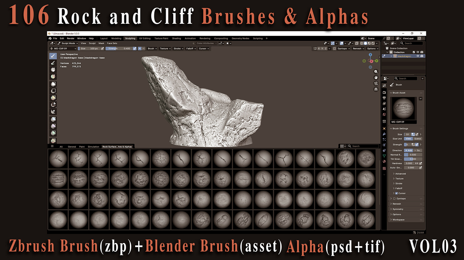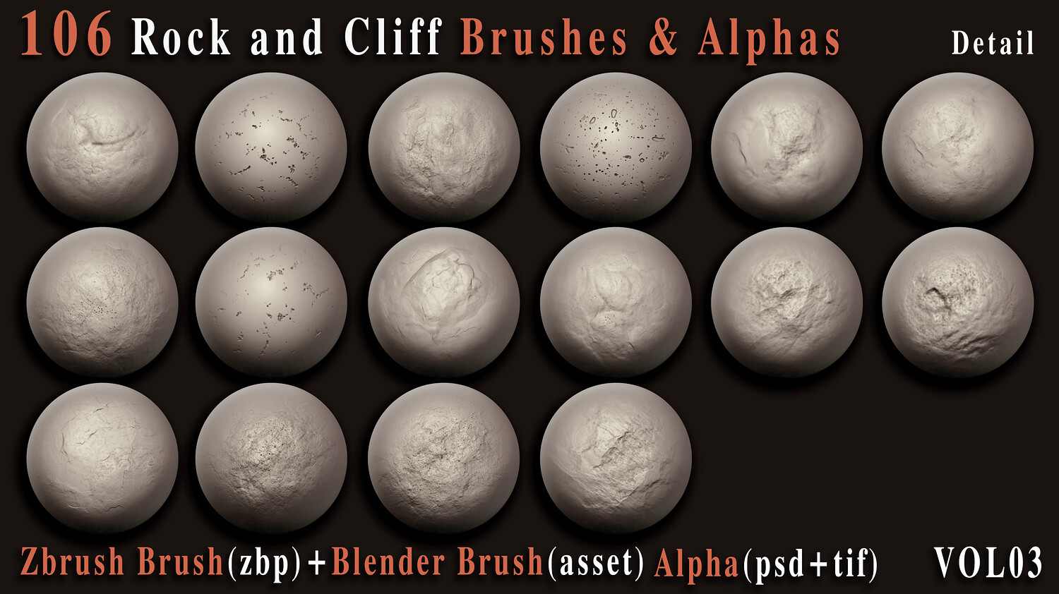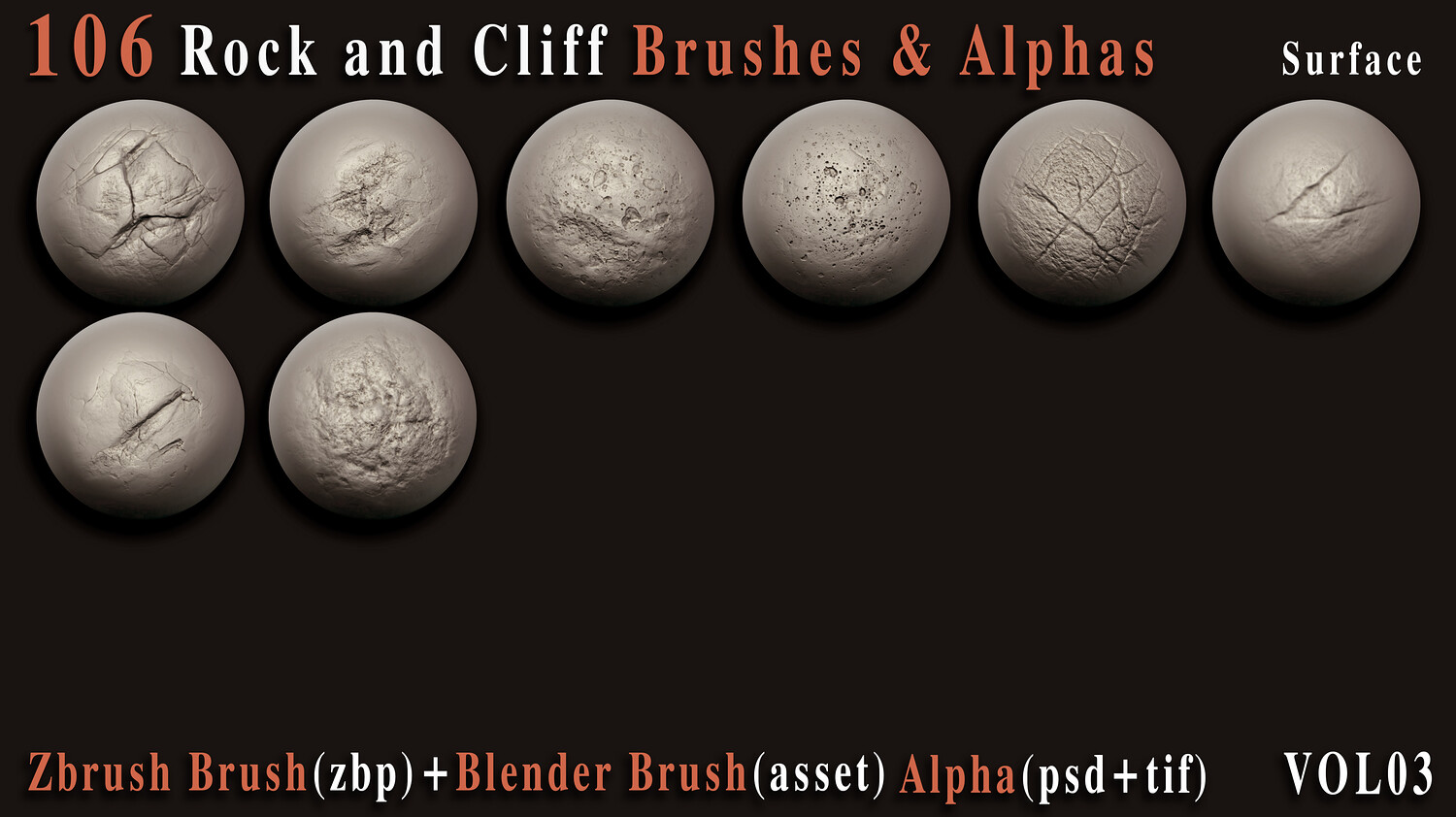 Enhance your 3D creations with this powerful collection of 106 high-quality rock and cliff brushes and alphas, carefully crafted to bring realistic surface depth and natural imperfections to your models. Whether you're building rugged environments, sculpting cliffs, or adding fine rock details, this versatile pack is designed to speed up your workflow and elevate your results. This set includes both VDM brushes for ZBrush + Blender and 2K alphas (PSD, TIFF) for flexible use across your favorite 3D software.