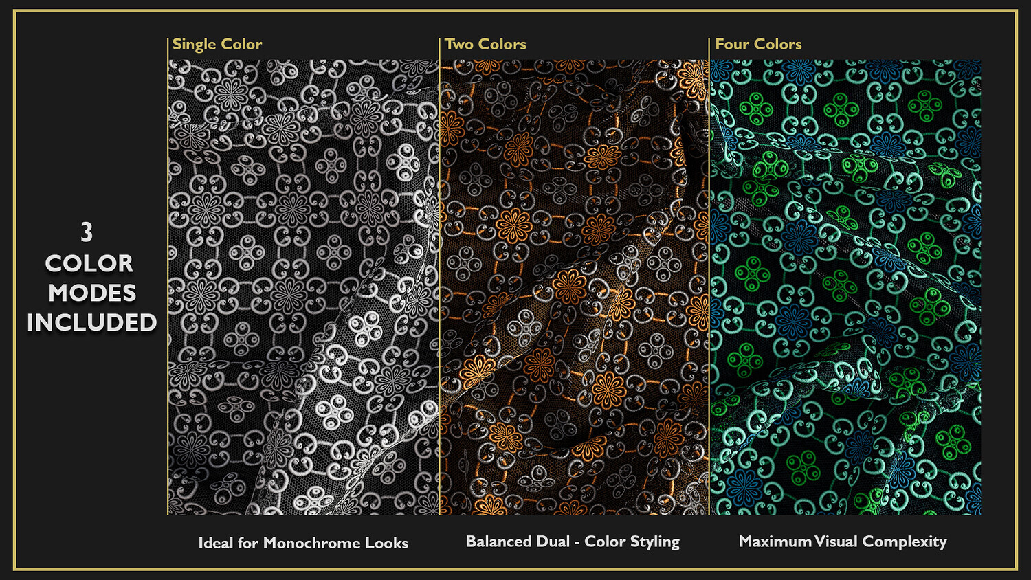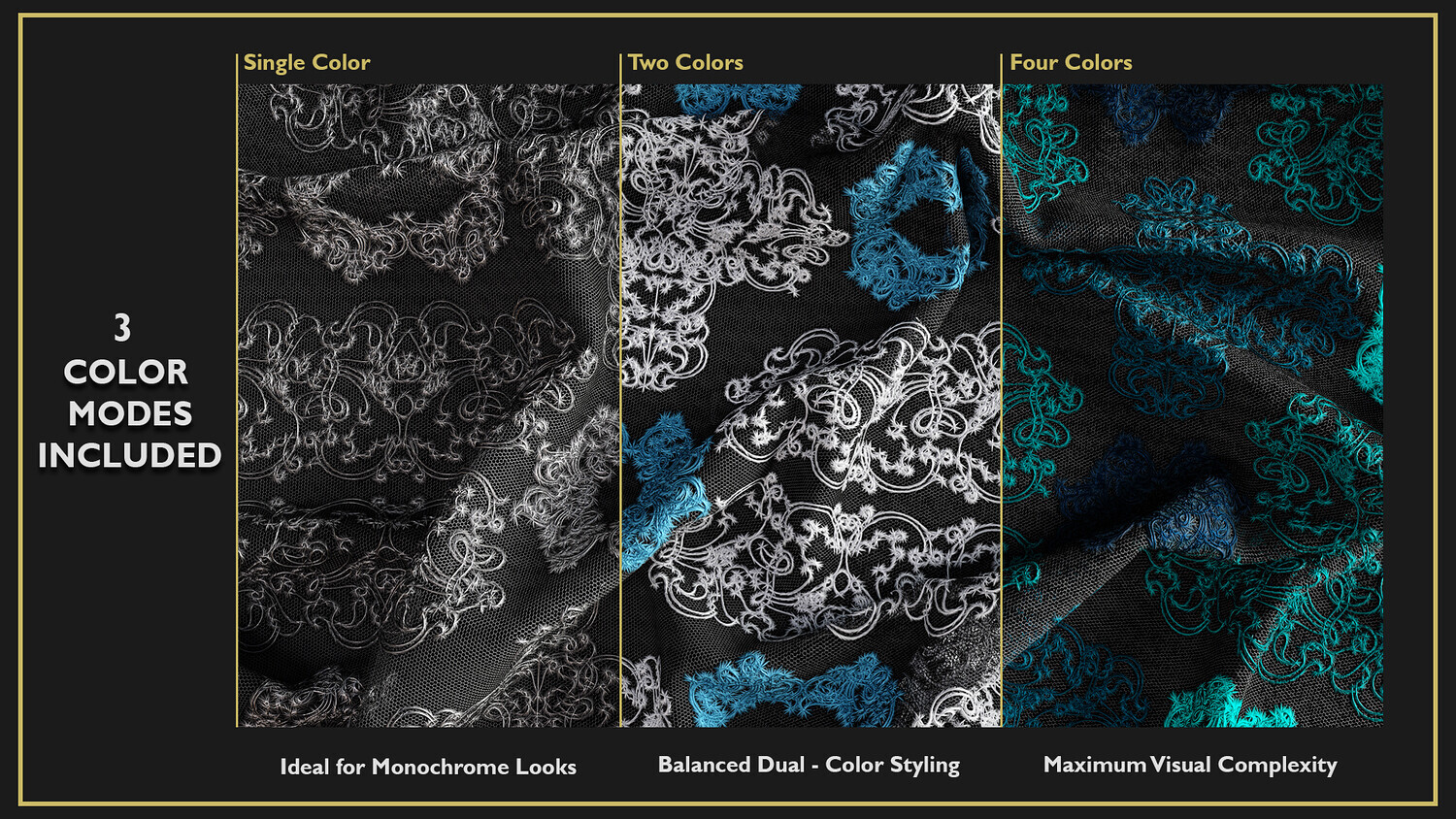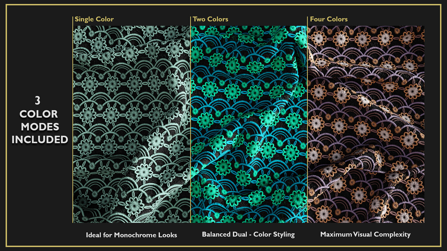 This product includes 10 Guipure Lace Fabric Smart Materials, 10 texture sets, and 10 4K previews.