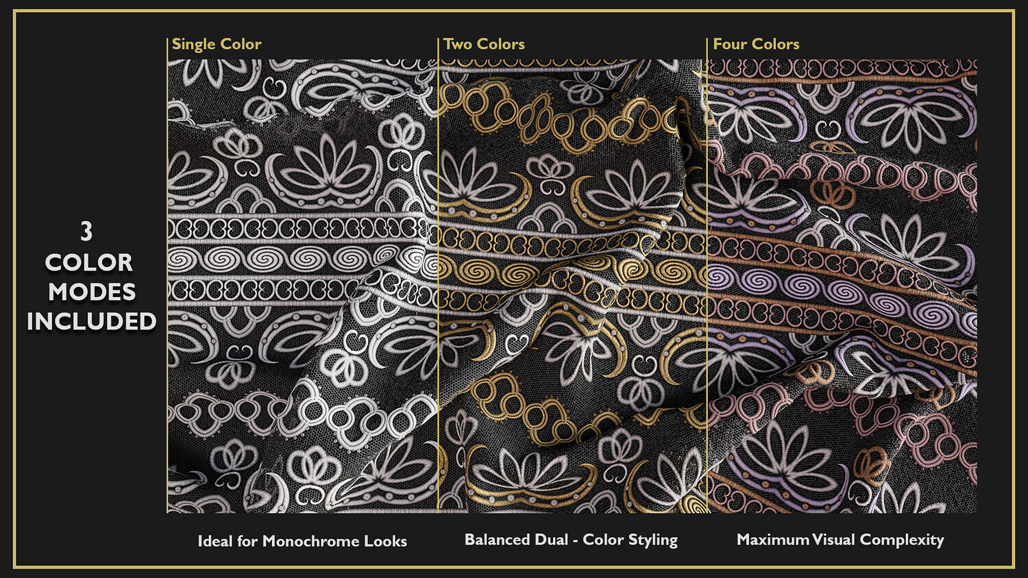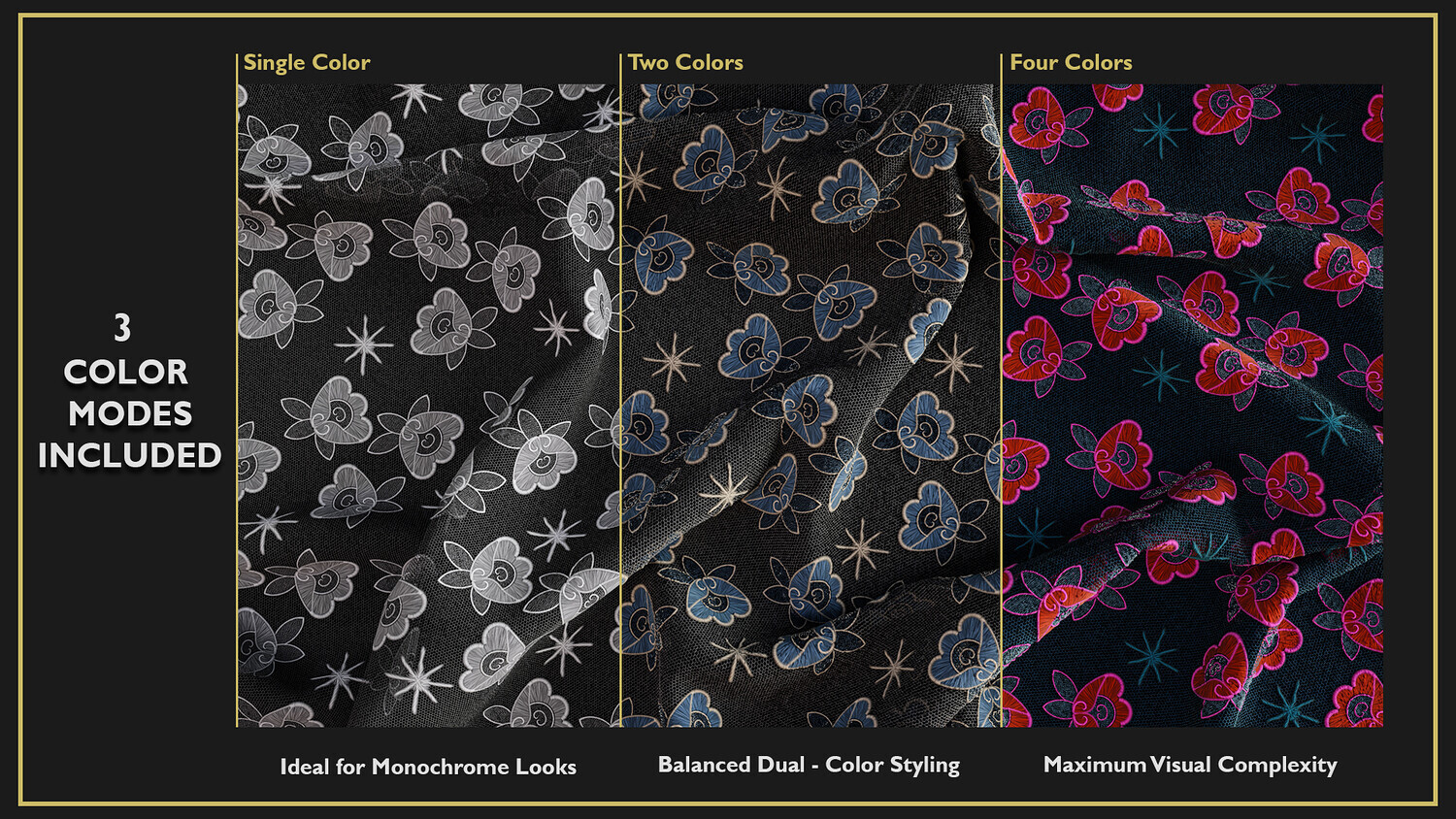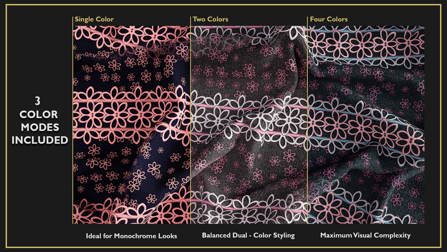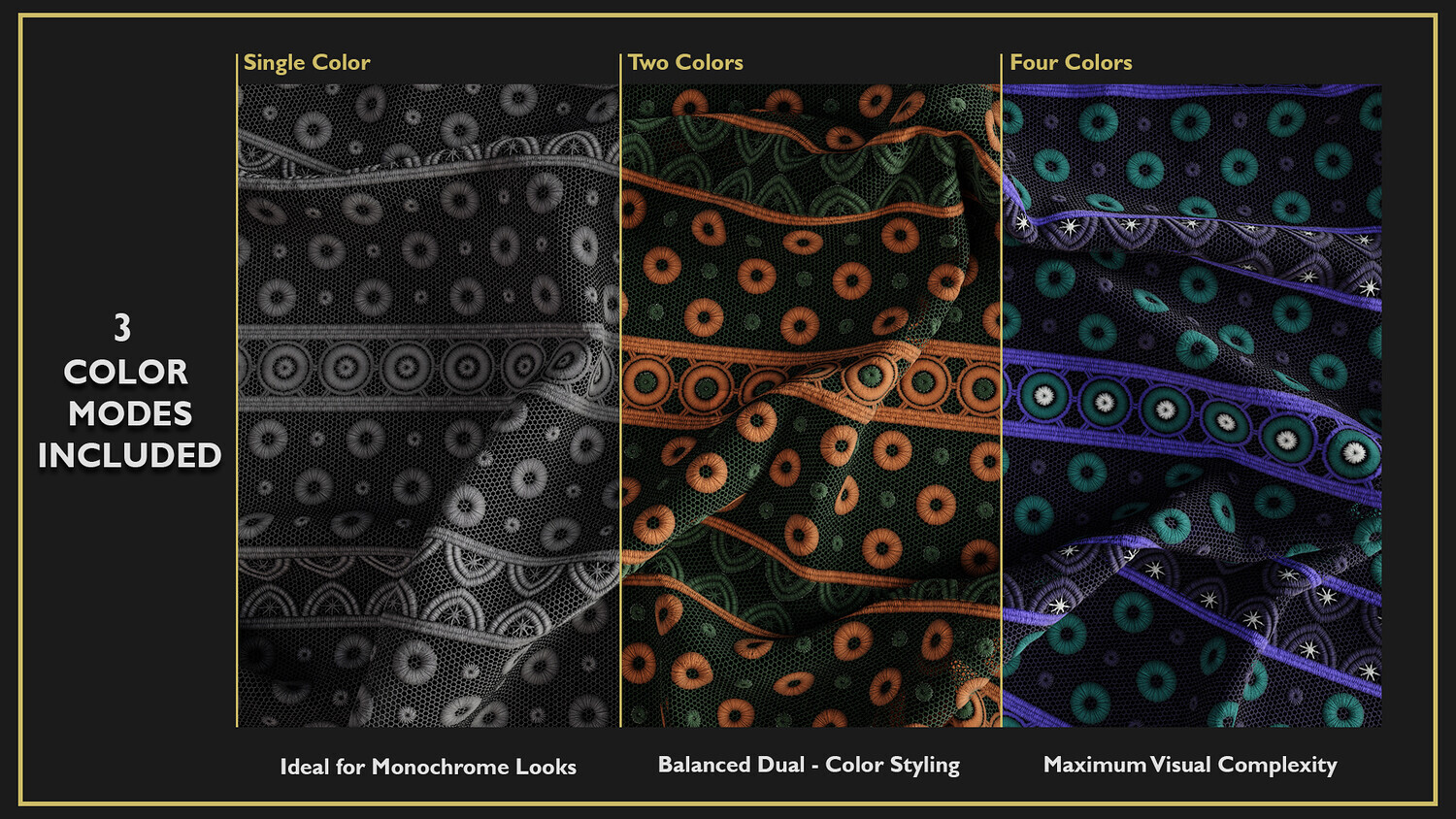 Each texture is a seamless, Tileable 4K PBR material, designed with exceptional detail and realism to enhance your 3D models or scenes. These high-quality fabric textures are meticulously crafted, providing intricate details that bring unparalleled realism to your work. Perfect for 3D modeling, animation, fashion design, game development, and character design. What sets this product apart is its unique versatility: each fabric comes in three color modes—single color, two-color, and four-color—giving you the flexibility to incorporate precise color variations into your 3D models or scenes.