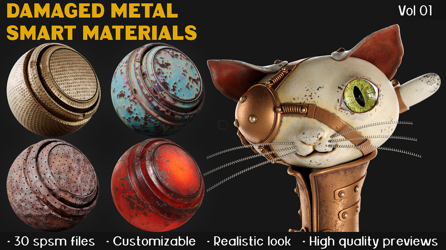 30 High-Detail and customizable damaged metal smart materials (spsm)
