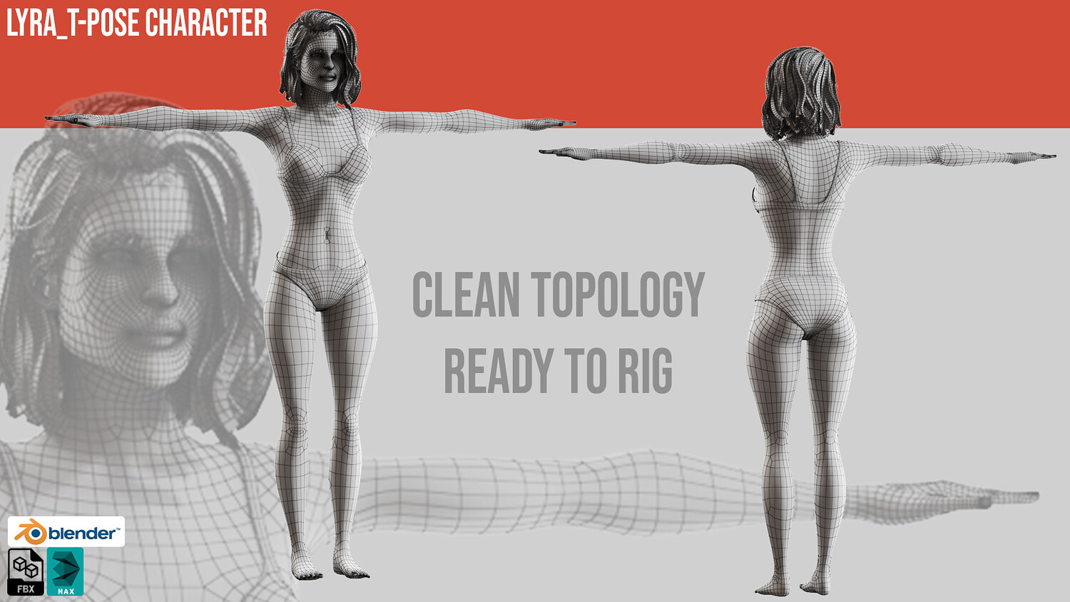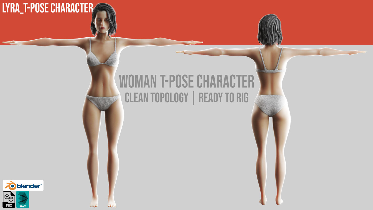 Realistic Female Base Mesh | Game-Ready | Rigged + FBX + Blender + 3ds Max