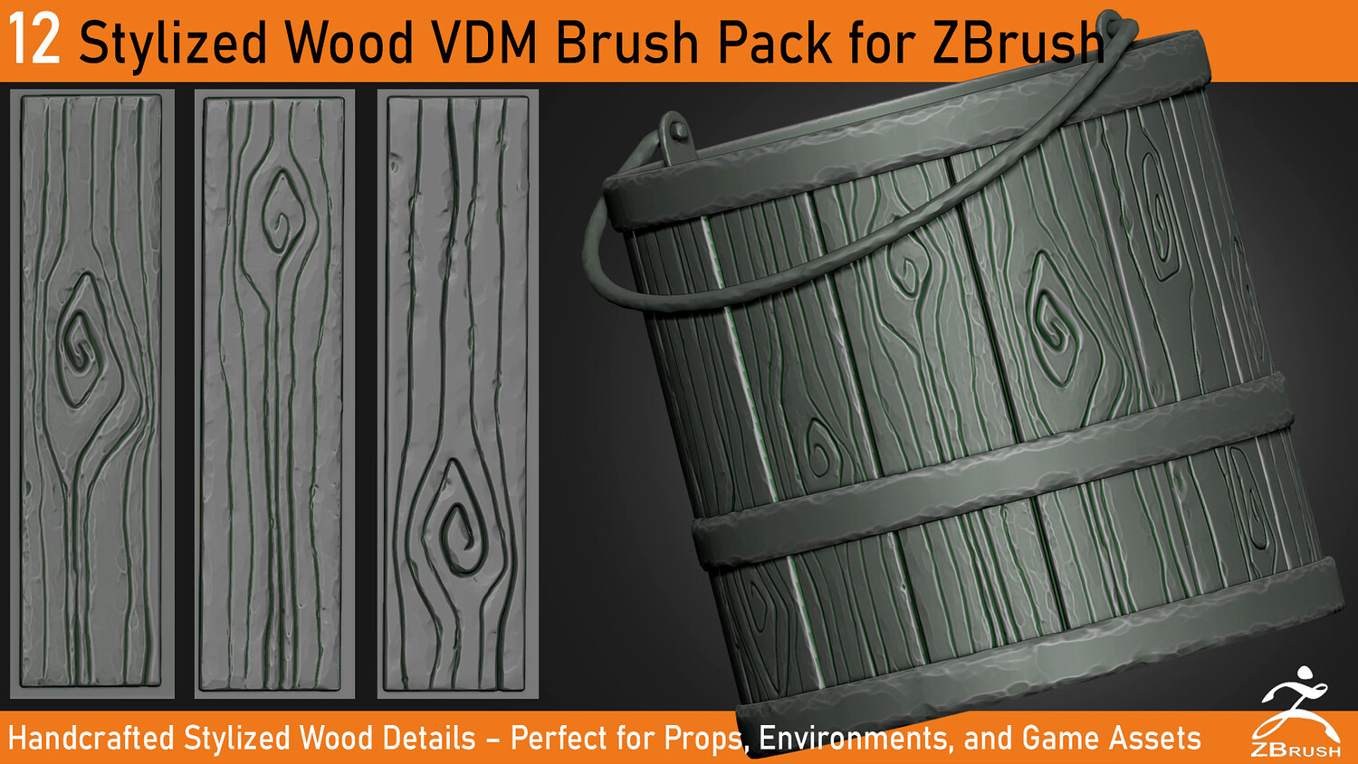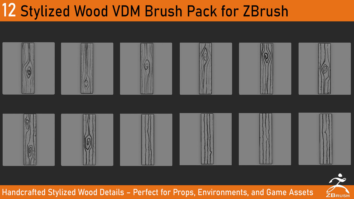 🔹 12 unique VDM brushes 🔹 Clean stylized shapes and wood knots 🔹 Ready for ZBrush 2022+ 🔹 Ideal for stylized props, environments, and hand-painted workflows