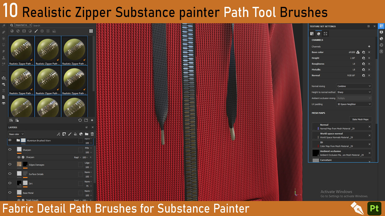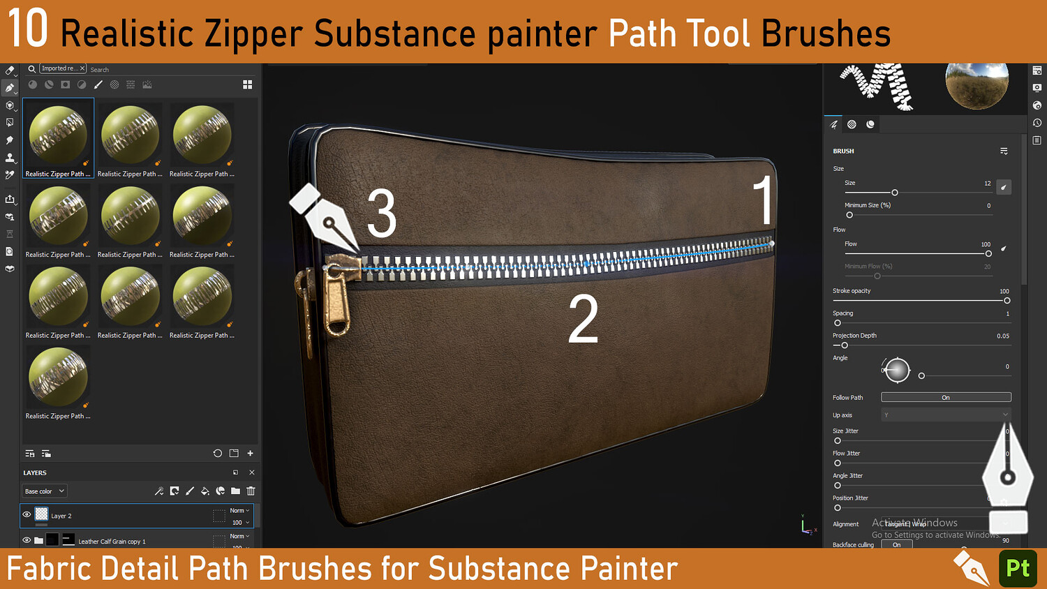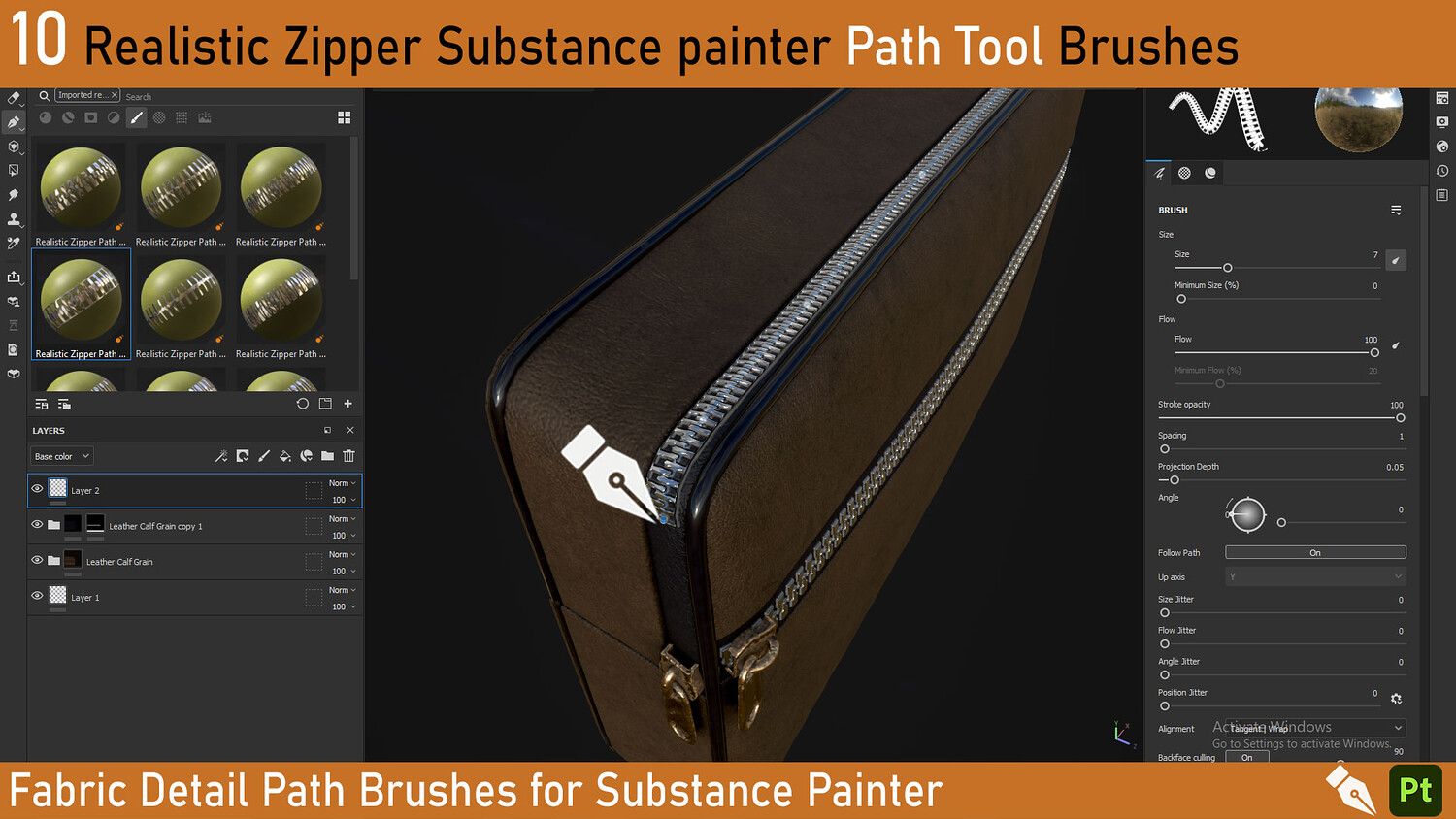 10 Realistic Zipper Substance Painter Path Tool Brushes