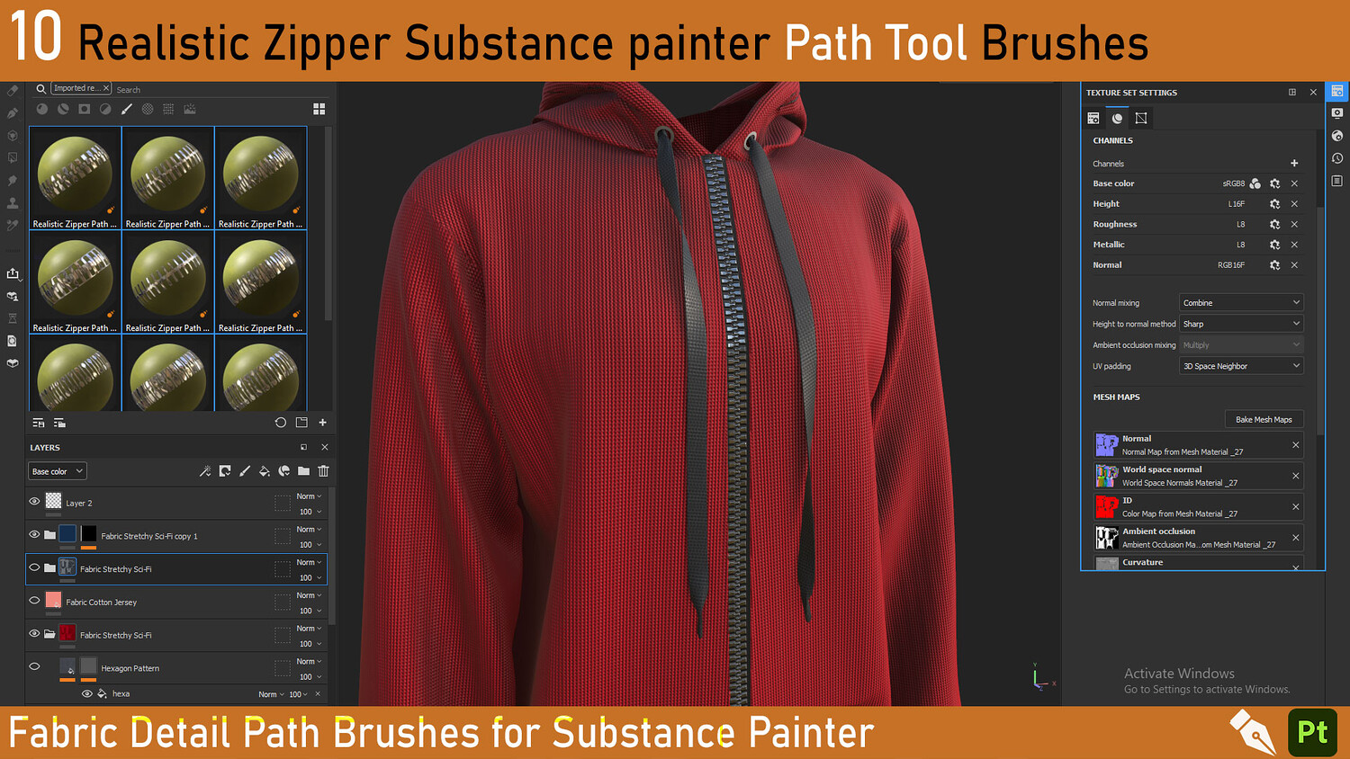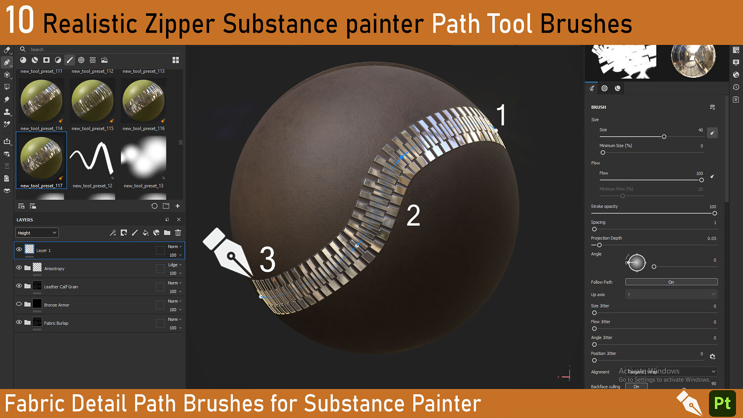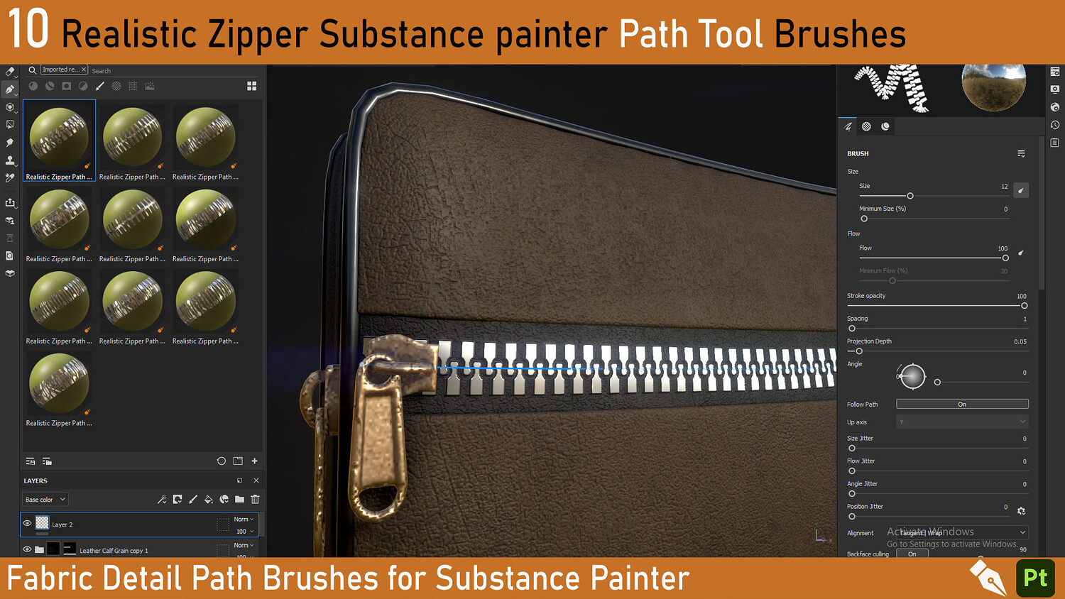 10 Realistic Zipper Substance Painter Path Tool Brushes