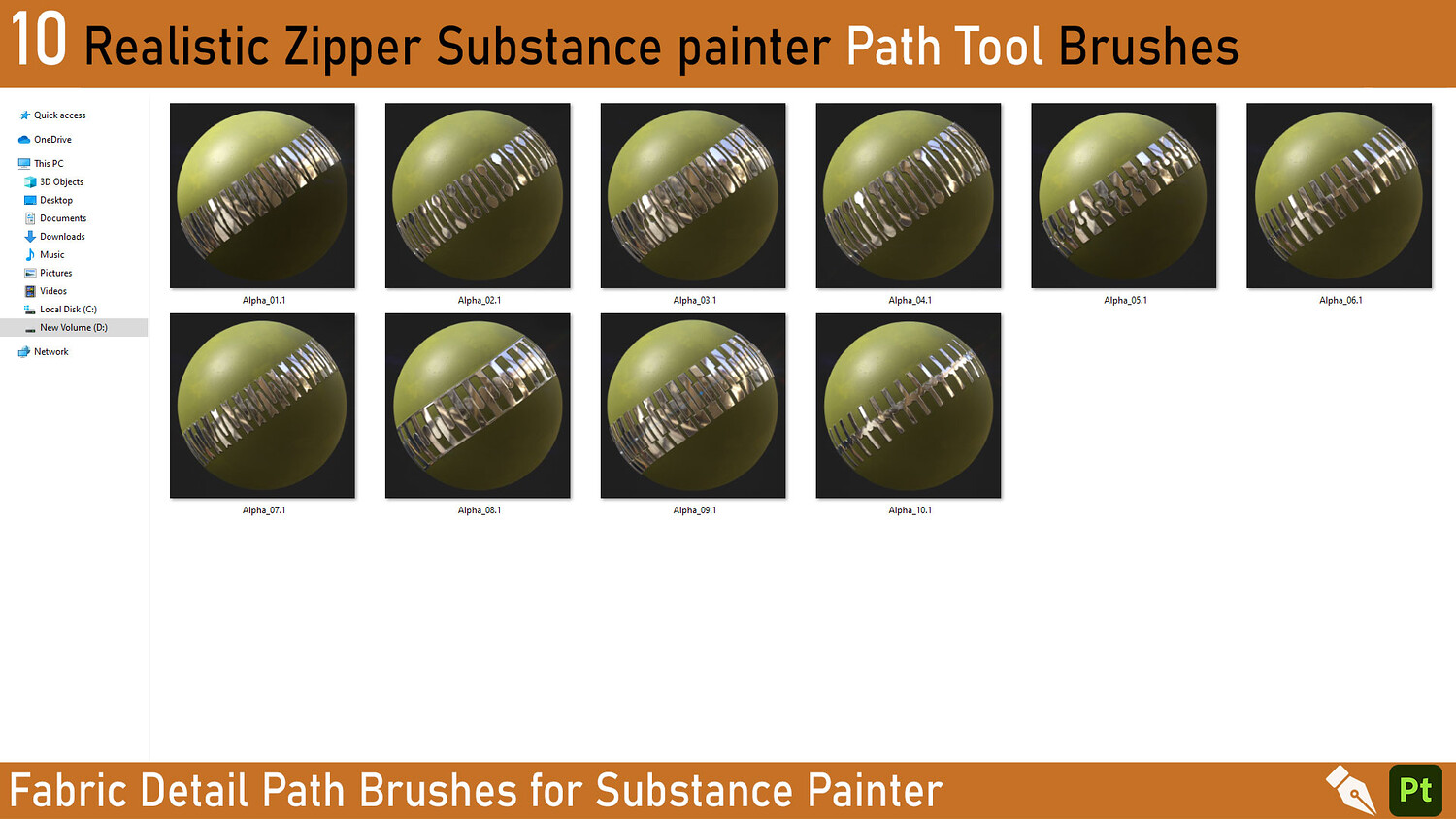 Realistic Zipper Path Tool Brushes – 10 Pack for Substance Painter