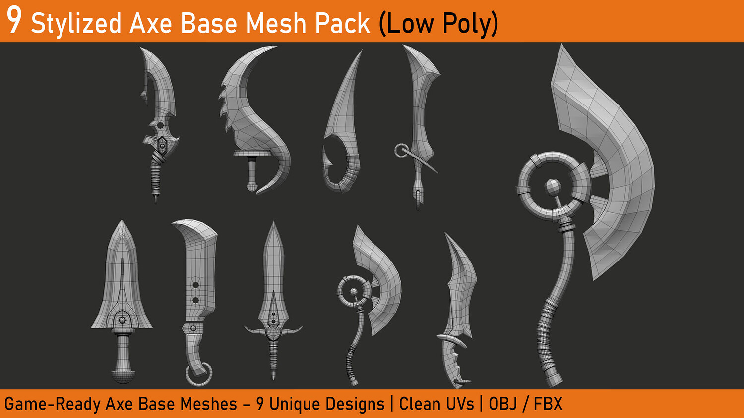 Exported in OBJ and FBX formats, fully compatible with most 3D software such as Blender, Maya, 3ds Max, ZBrush, and game engines like Unreal Engine and Unity.
