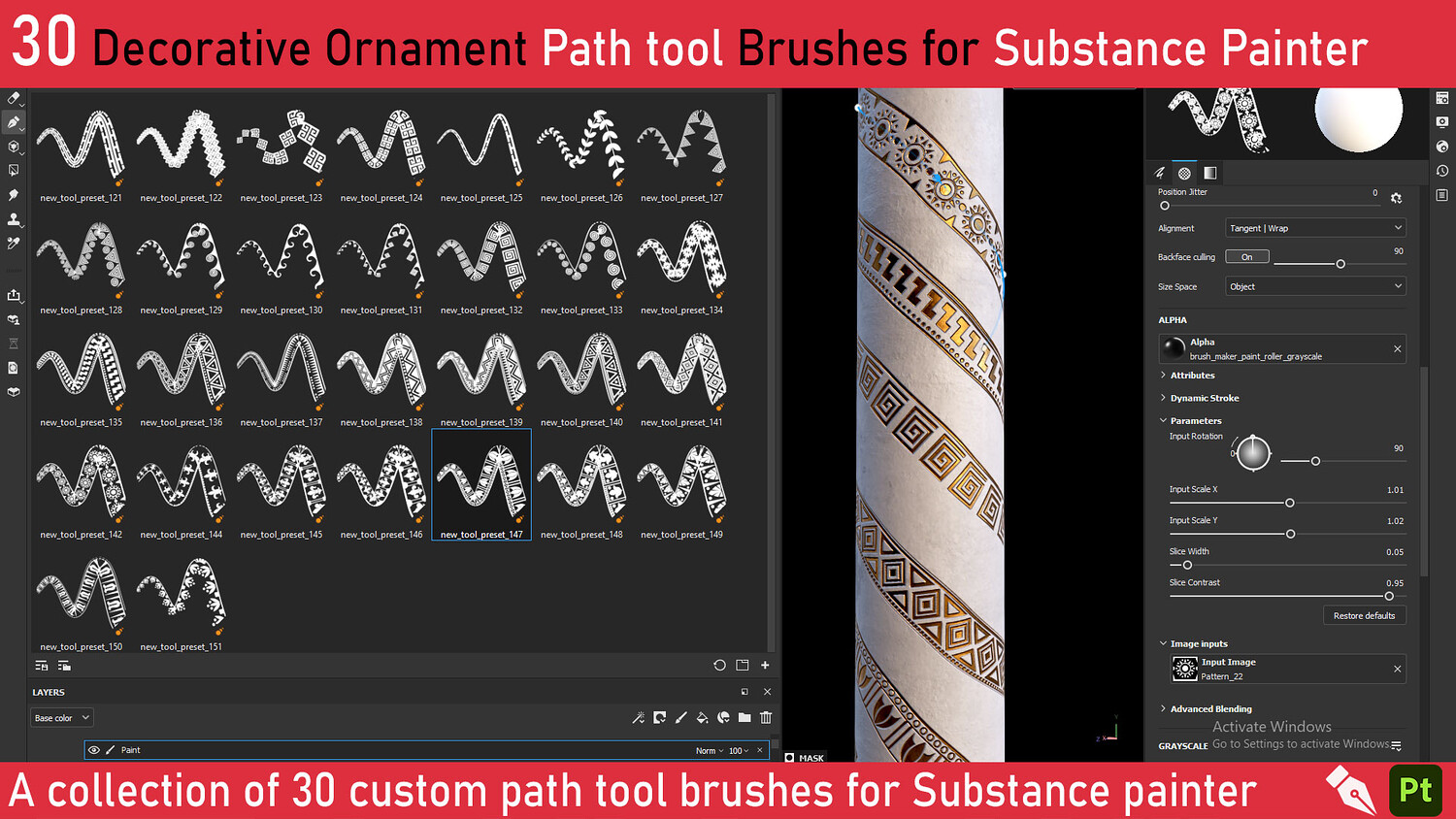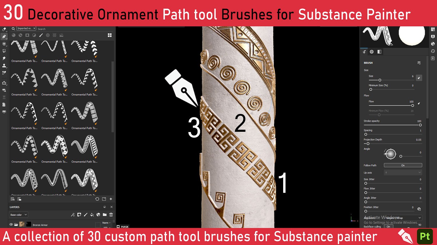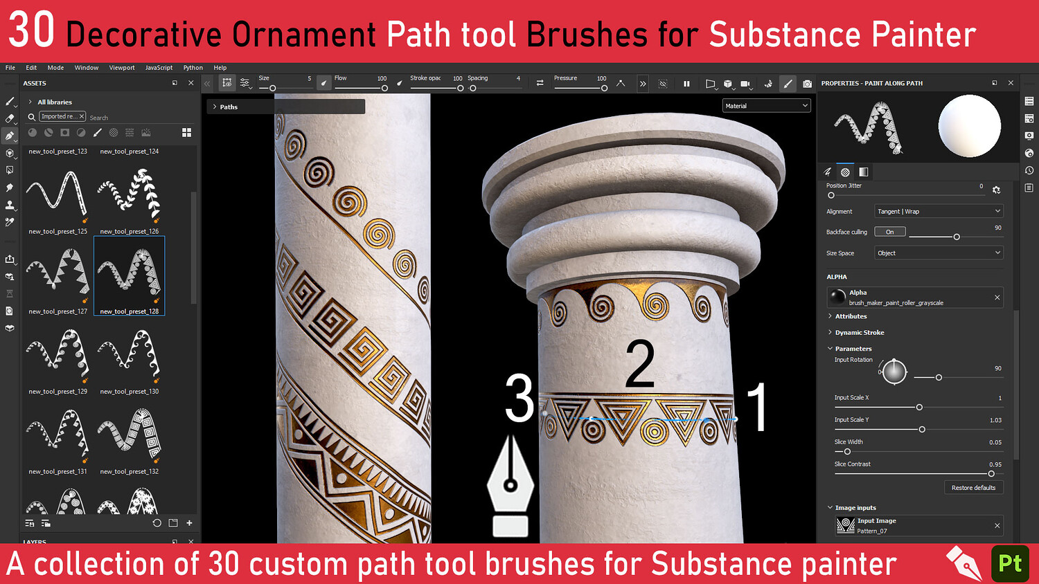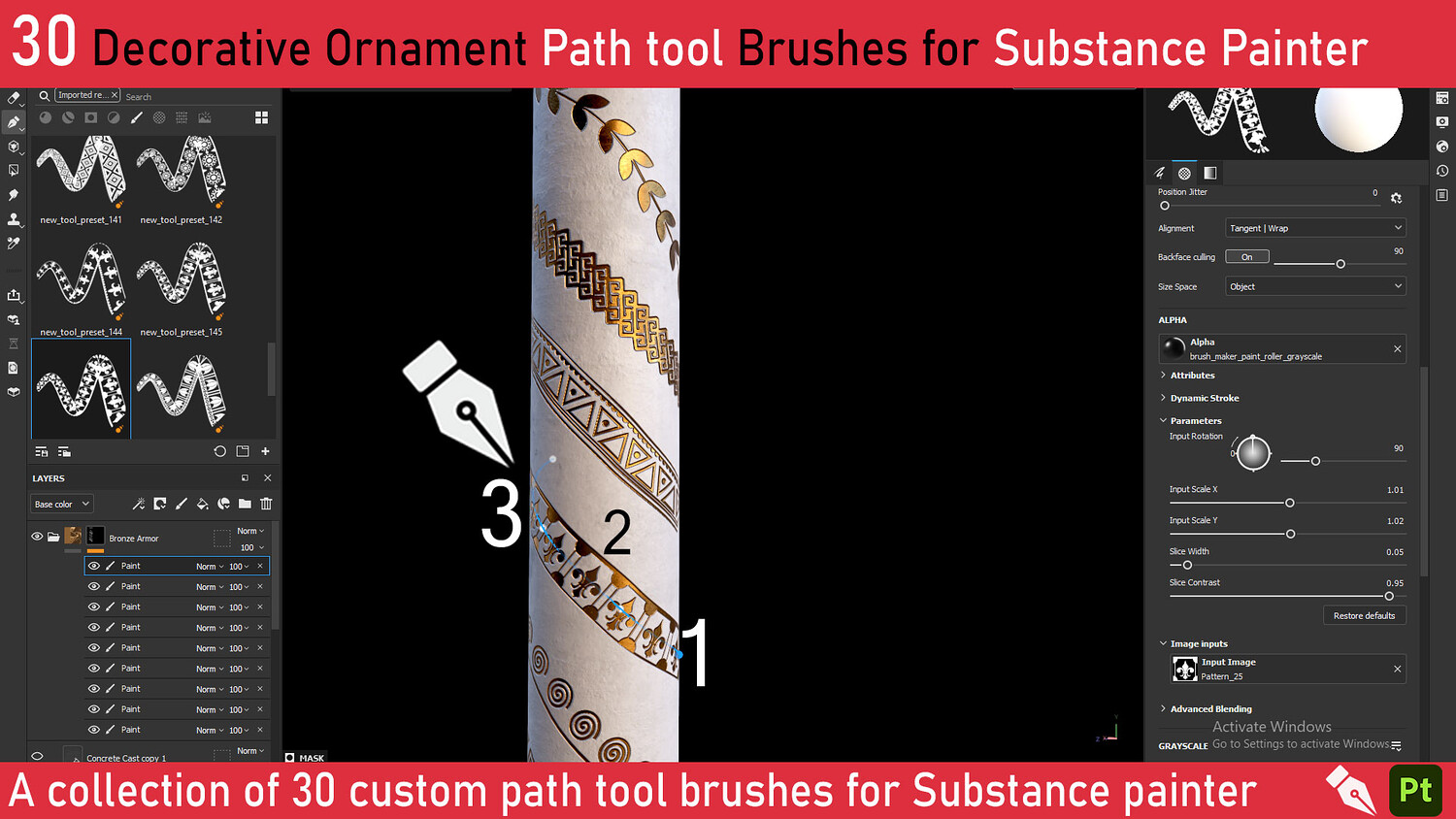 30 Decorative Path tool Brushes – Ornament & Trim Tools for Substance Painter
