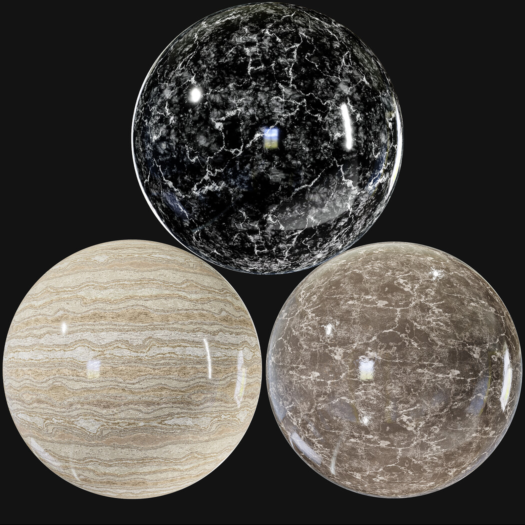 A collection of 20 marble materials meticulously crafted in Substance Designer.