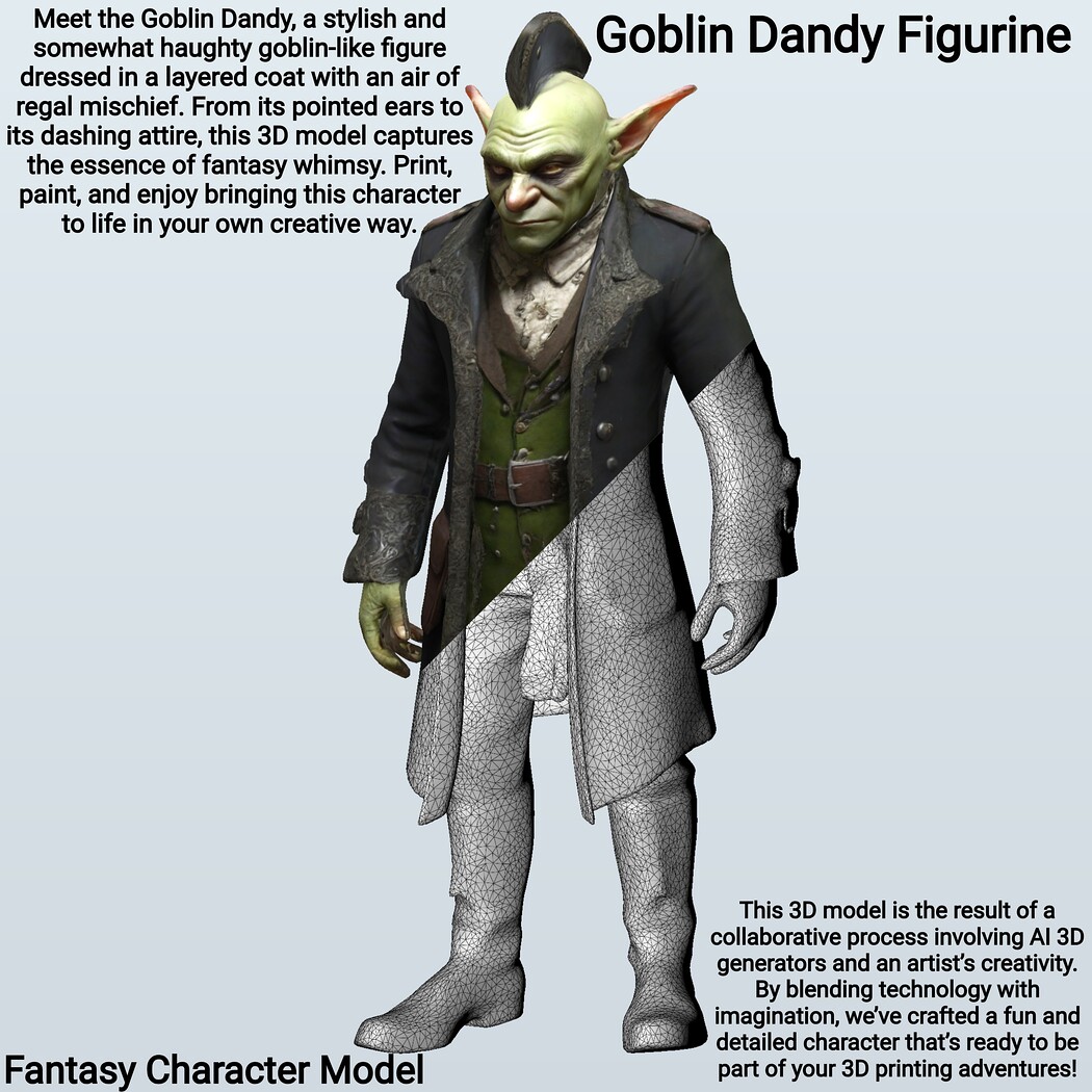 Meet the Goblin Dandy, a stylish and somewhat haughty goblin-like figure dressed in a layered coat with an air of regal mischief. From its pointed ears to its dashing attire, this 3D model captures the essence of fantasy whimsy. Print, paint, and enjoy bringing this character to life in your own creative way.
