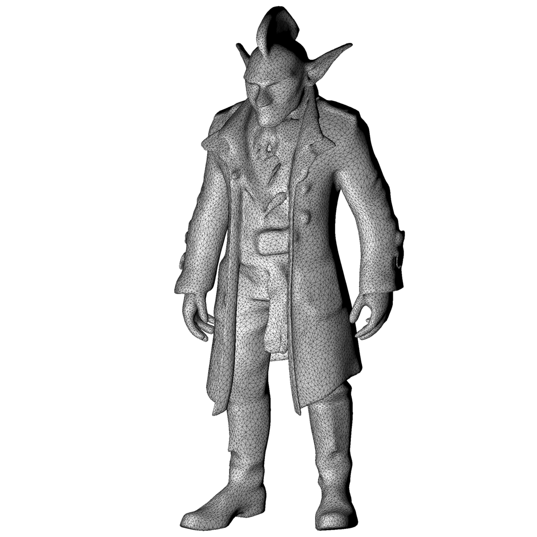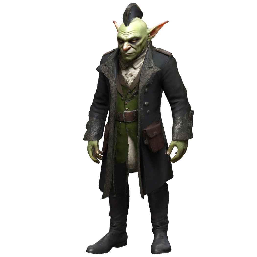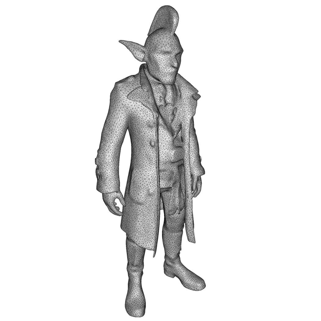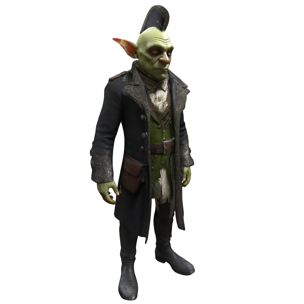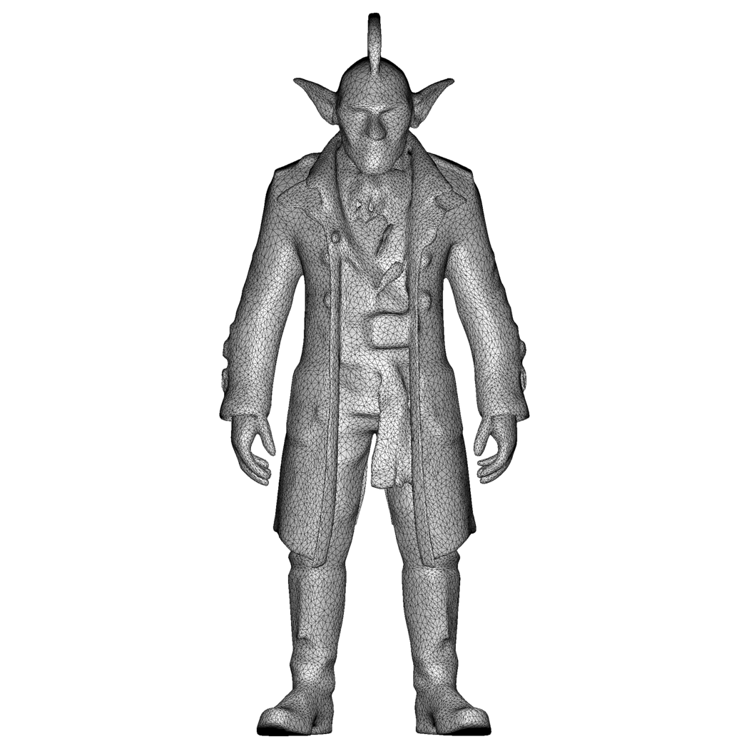 This fantastical goblin-like figure is designed with intricate details, from its pointed ears and mohawk hairstyle to its layered coat and boots. It’s a charming (yet slightly mischievous) character that can be used as a display piece, a tabletop gaming miniature, or even a fun collectible to show off on your shelf. Its posture is dynamic, capturing a bit of personality in the stance and facial expression.
