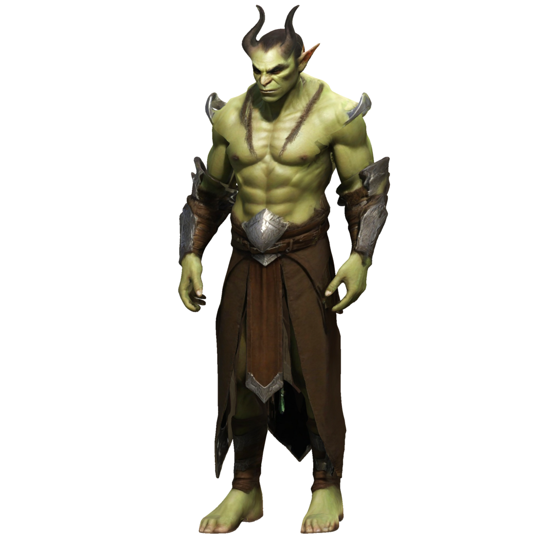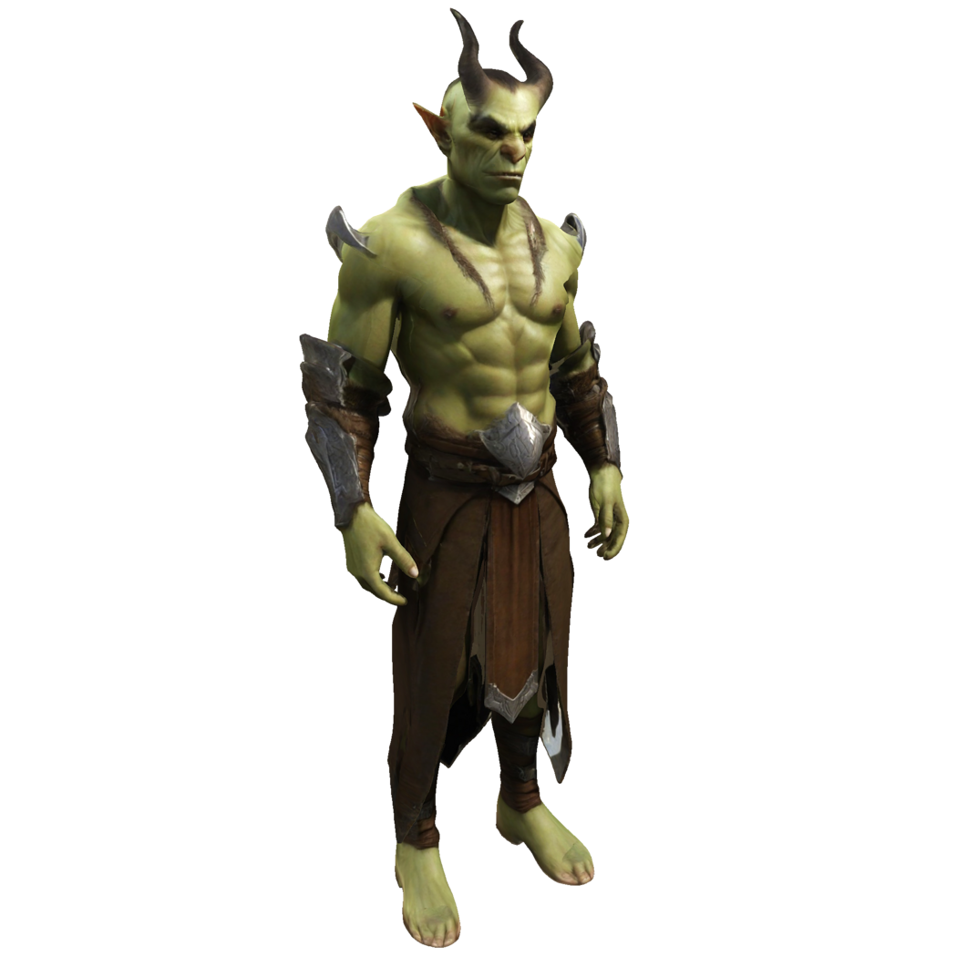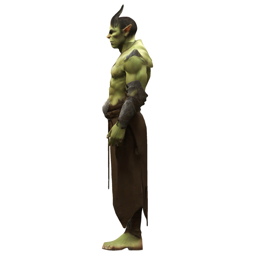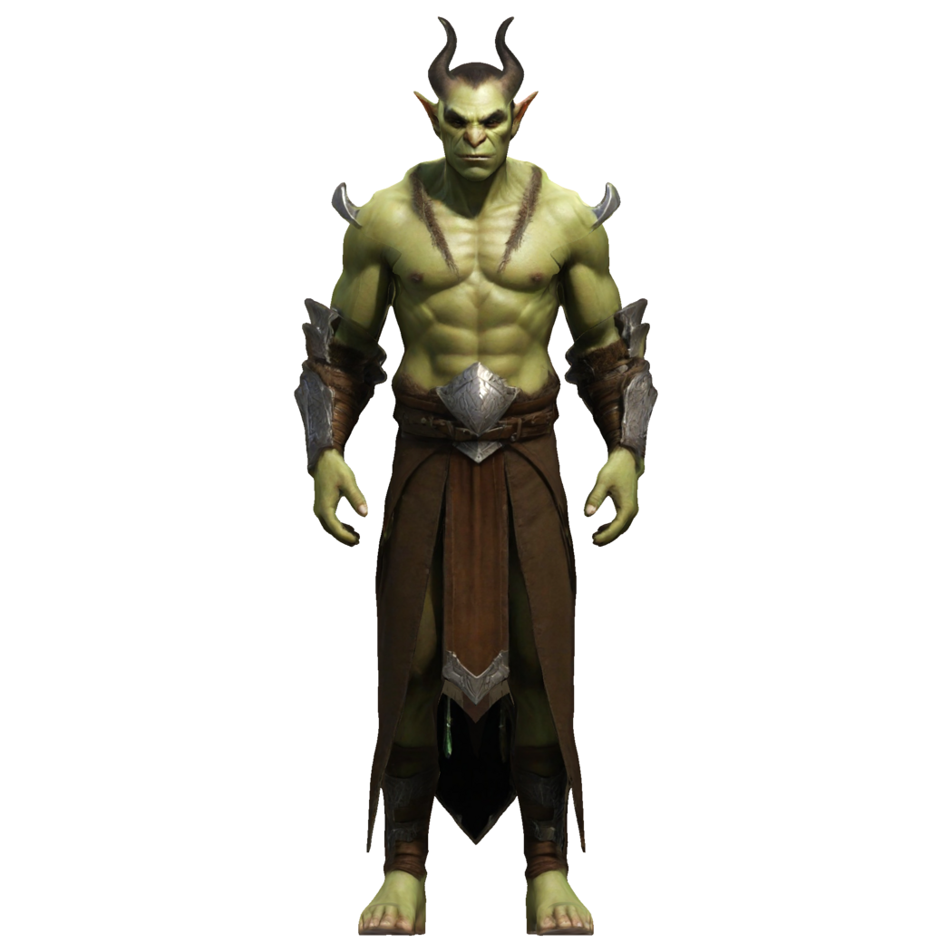 This model features a powerful, fantasy-inspired creature with green skin, prominent horns, and a lean, muscular build. He’s wearing a tribal-style outfit complete with detailed accessories and layered fabric elements. The design showcases a blend of otherworldly ferocity and intricate costume work, making it a striking piece for tabletop gaming, display, or as a collectible figure.