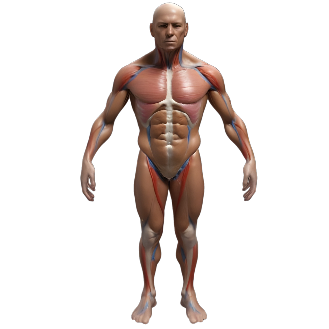 - A detailed anatomical figure showing human musculature for study and reference.