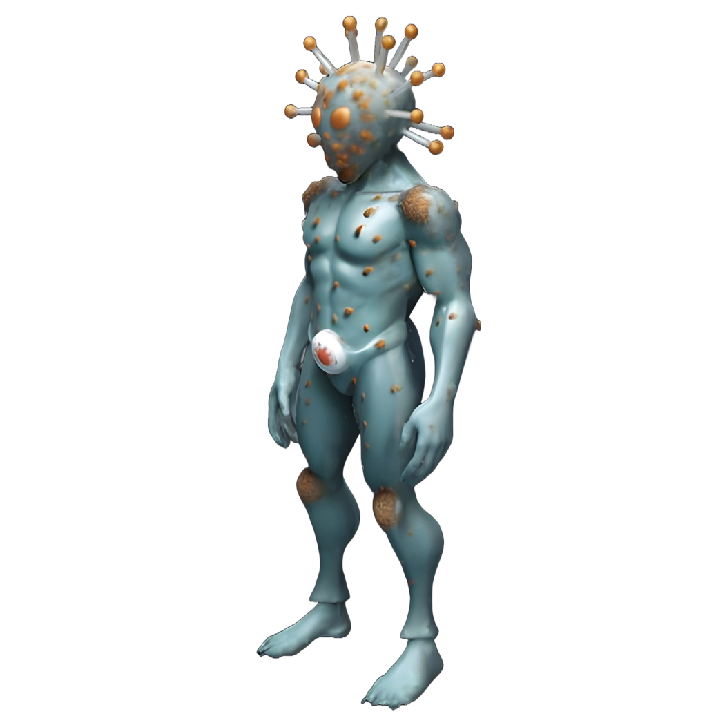 - A creative COVID-themed character, blending realism and fantasy.