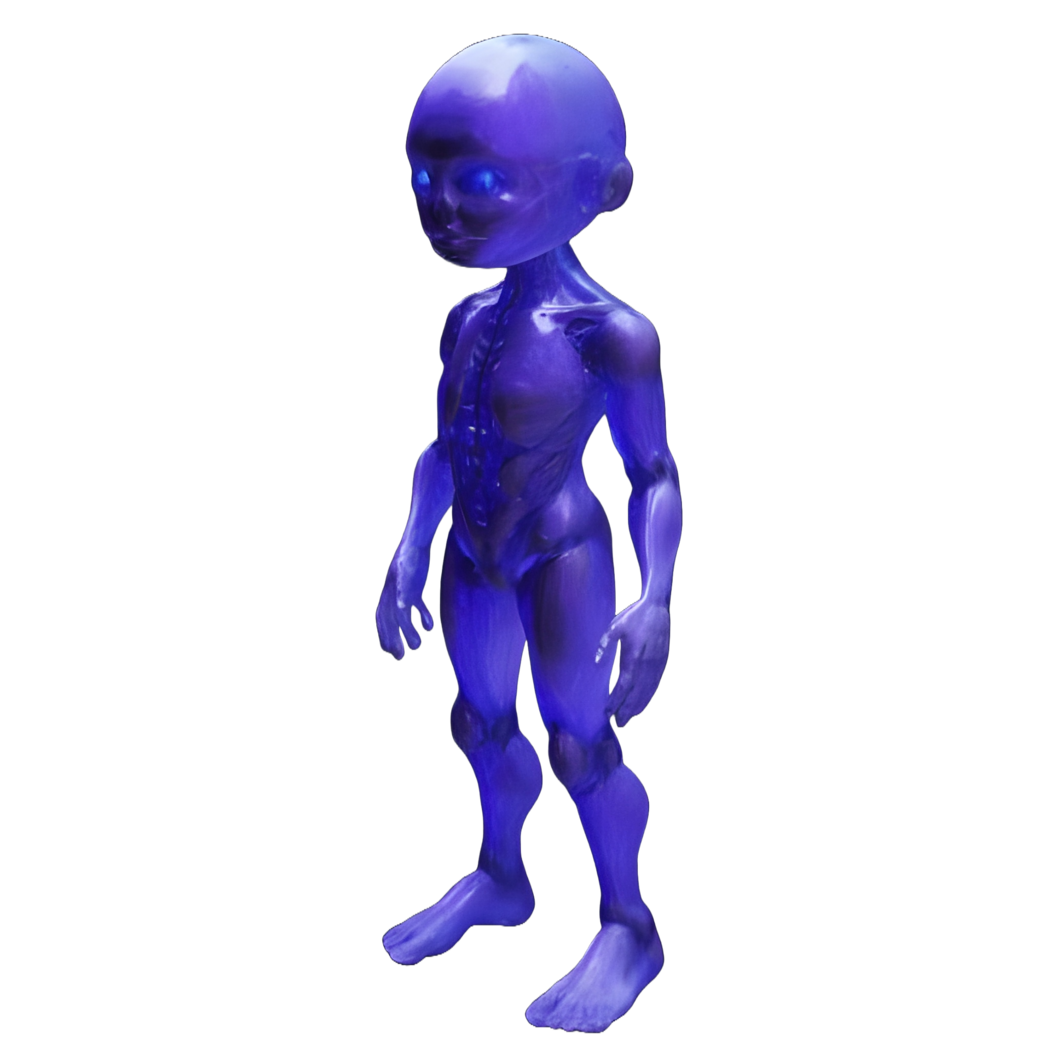 - A translucent, glowing humanoid inspired by sci-fi aesthetics.