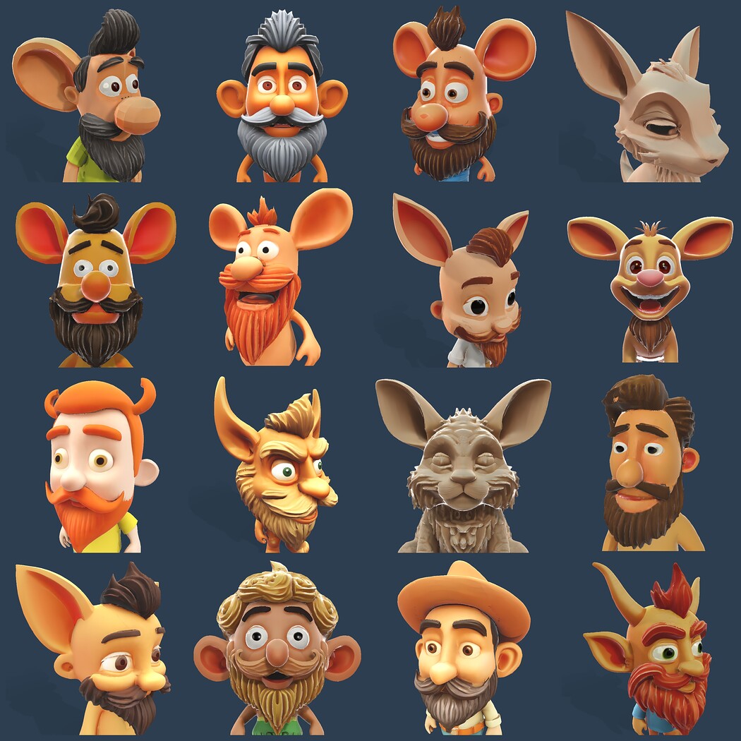 These charming characters feature a perfect balance of stylized design and technical excellence. With their expressive faces, distinctive ears, and character-defining features like beards, unique hairstyles, and simple clothing elements, they'll instantly bring personality to any creative project.