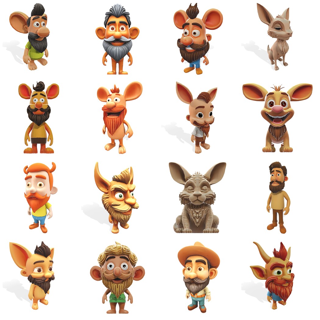 This collection represents a harmonious blend of AI-assisted design and human artistic refinement. Our development process leverages advanced AI generation techniques to create initial concepts, followed by extensive hand-refinement by our skilled 3D artists to ensure printability, character consistency, and professional-quality results.