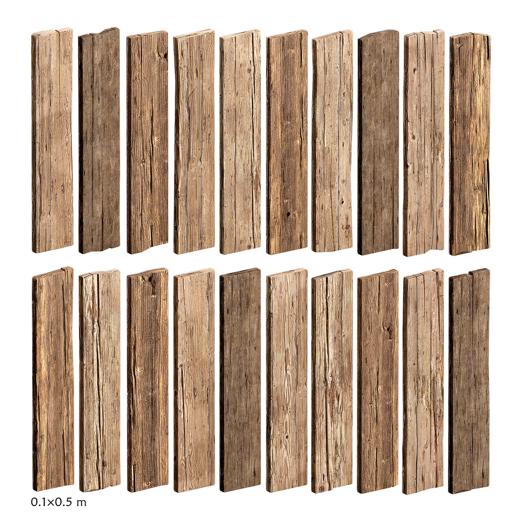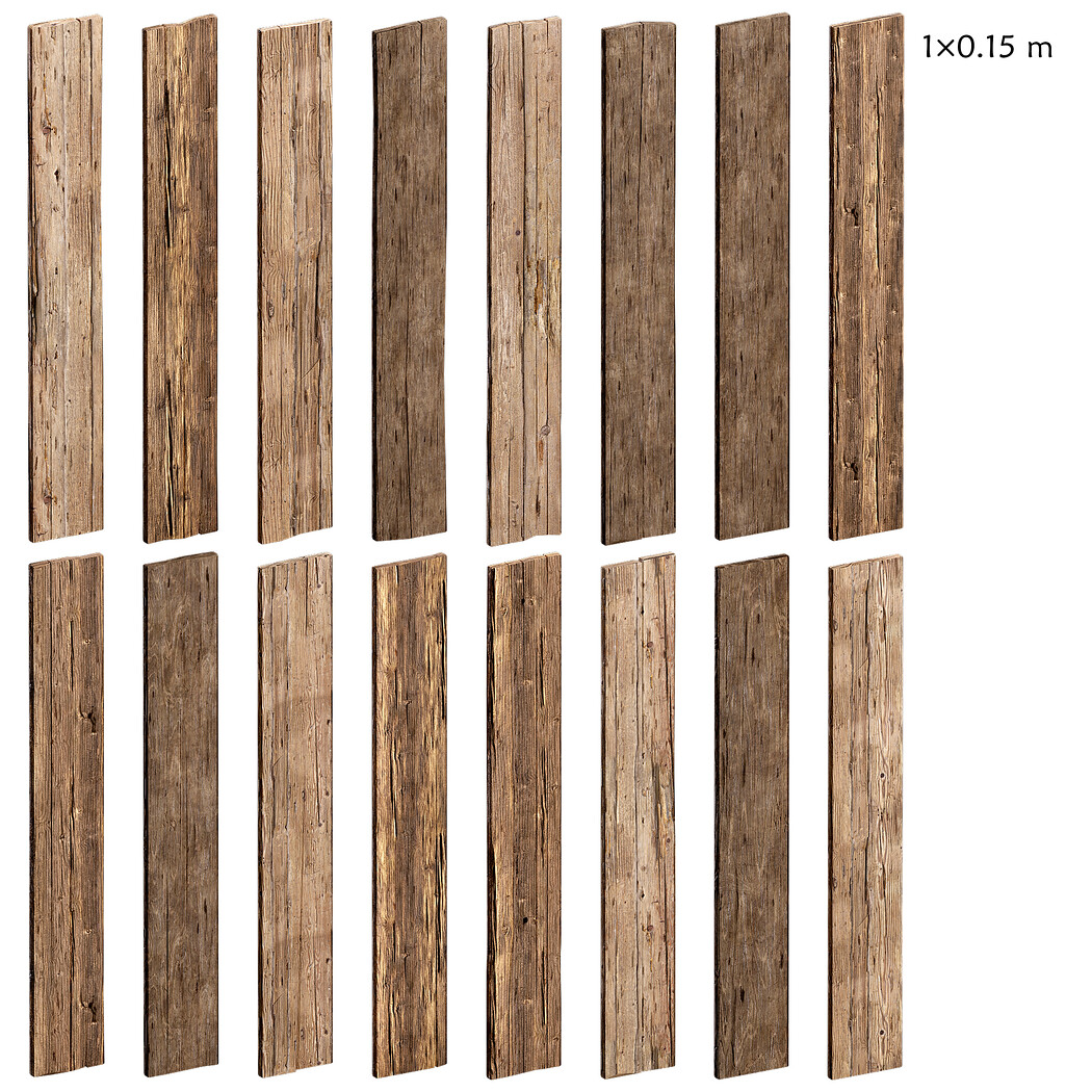 Includes 15 detailed textures in 4K resolution, designed to bring out the natural feel of wood grain and age. All textures are PBR-based and ready for any rendering pipeline.