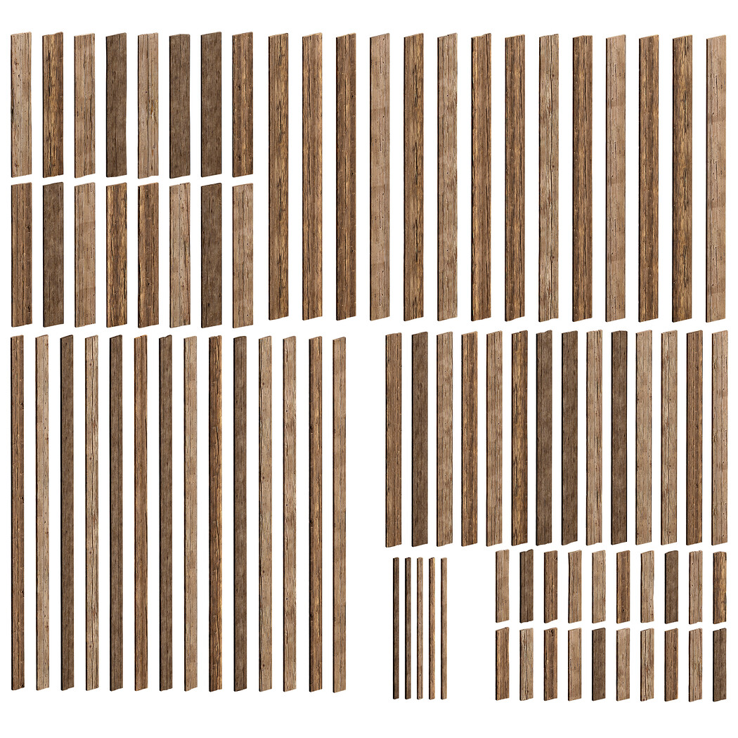 A versatile collection of wooden planks and structural beams, ideal for building realistic environments ranging from rustic cabins to medieval towns or modern construction sites.