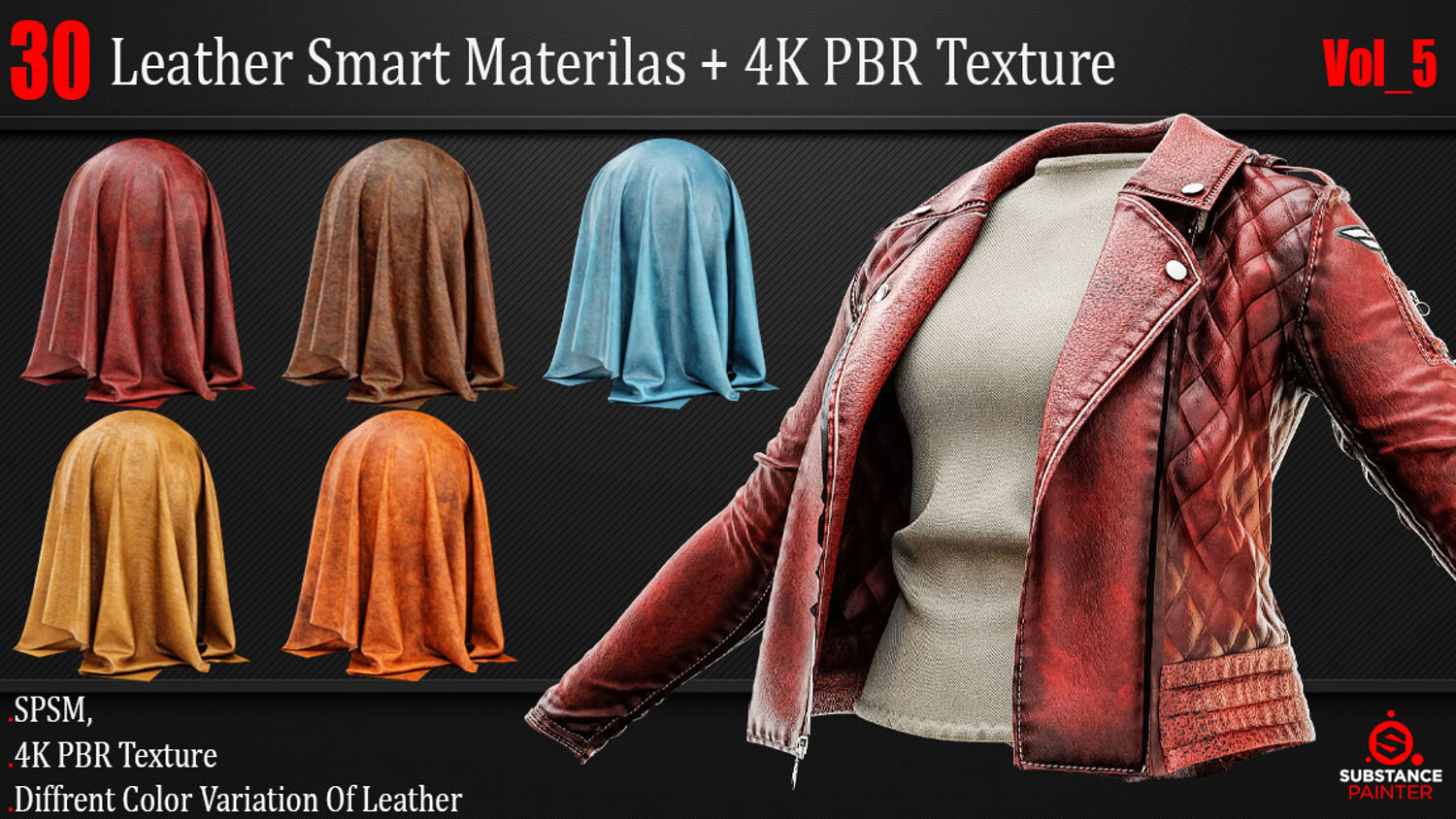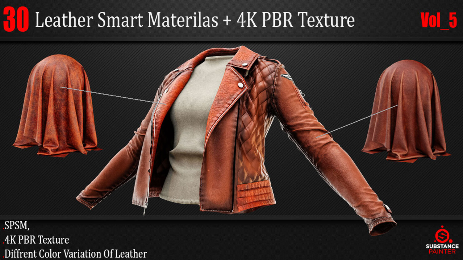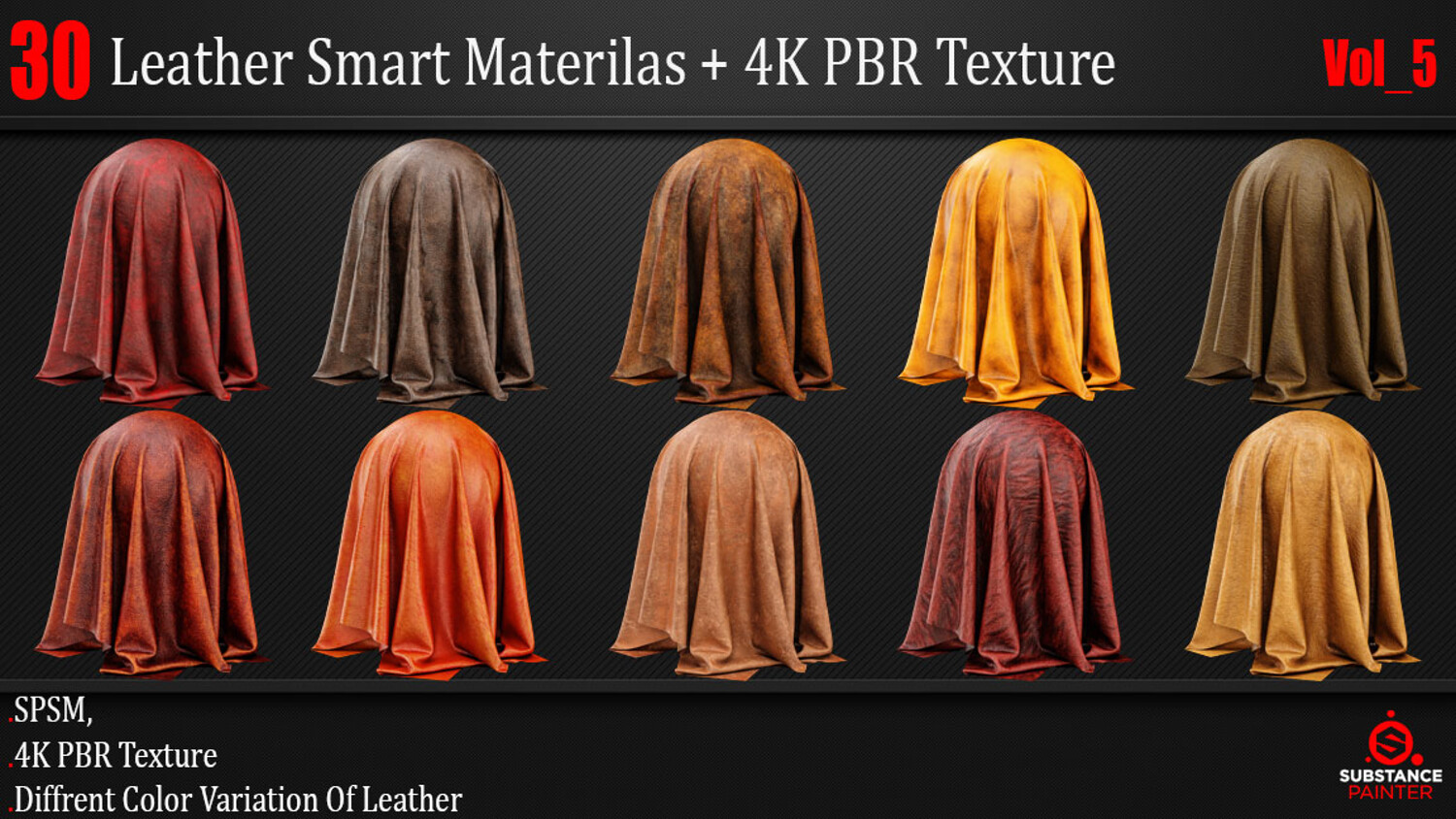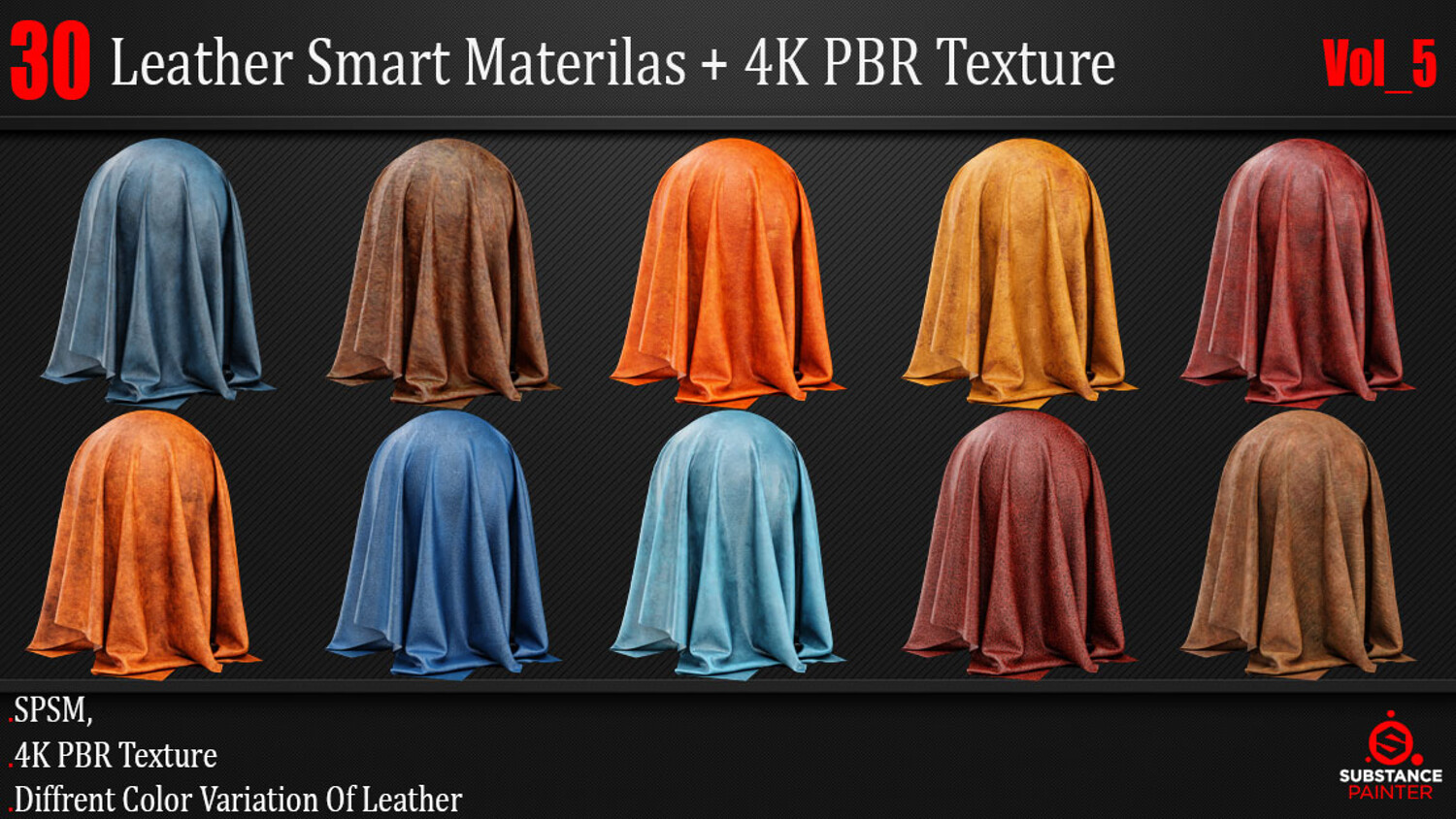 30 High-Quality and Procedural Leather Smart Materials. This Product includes 30 Leather Smart Materials for Substance Painter and 4K PBR textures. You can use the PBR Textures for any program that works with PBR workflow!