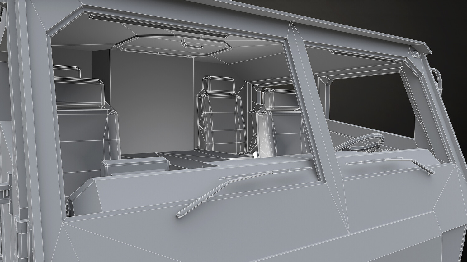 - All doors, wheels, steering wheel and shifters are separate objects and can be easily rigged/animated. Cover, cover structure, benches and panels also detached.