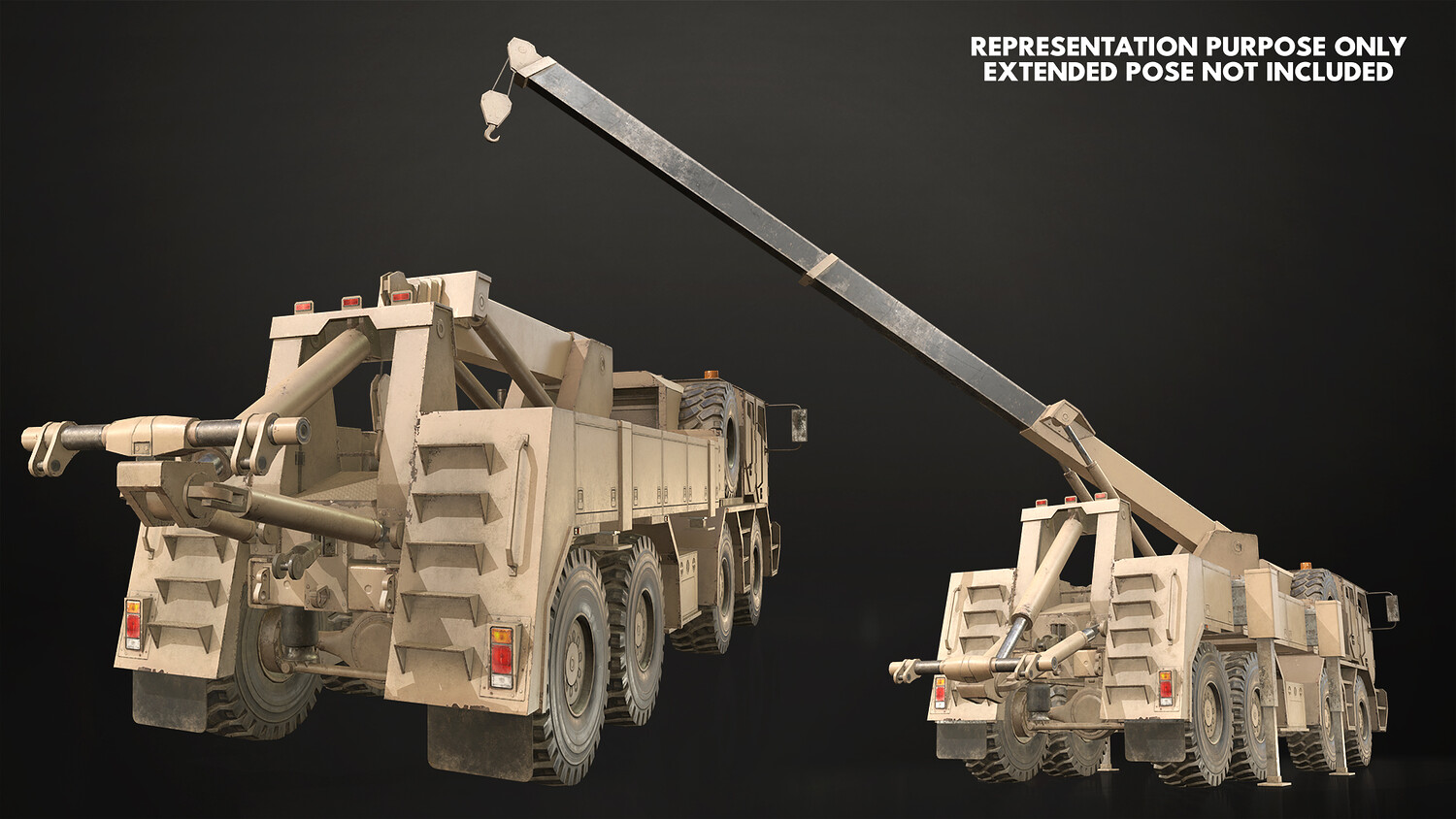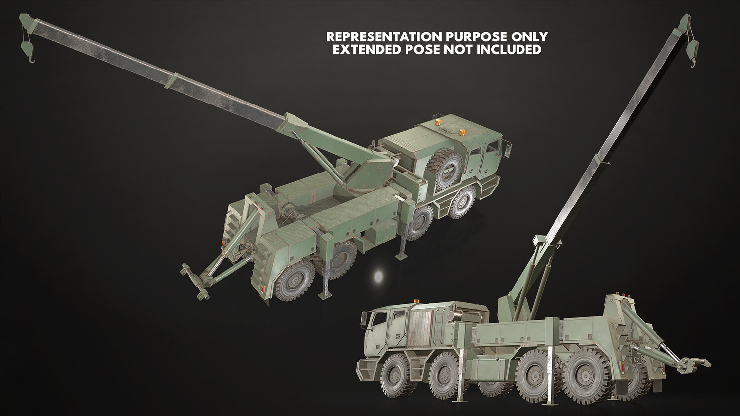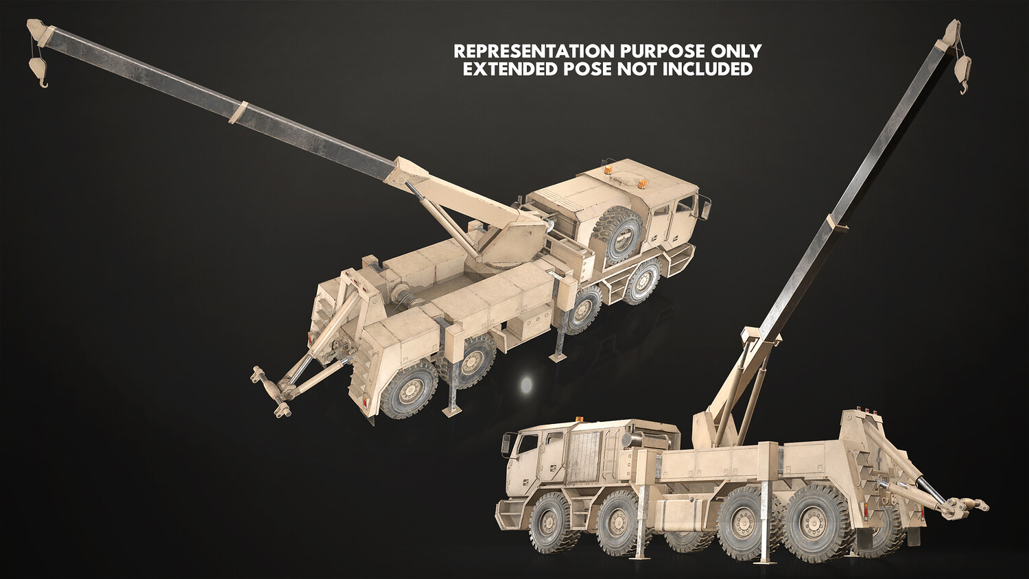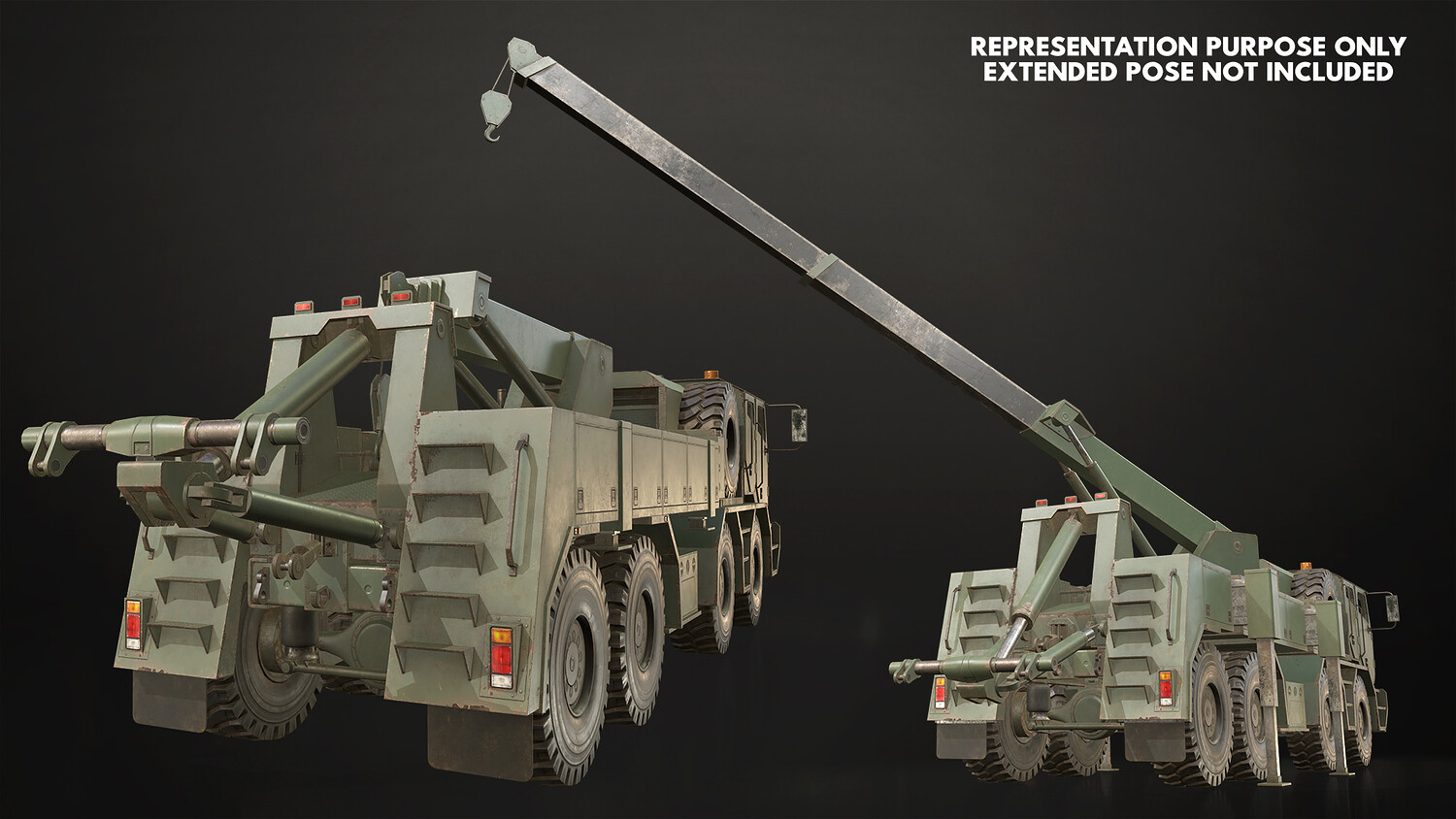 - All doors, wheels, steering wheel and shifter are separate objects and can be easily rigged/animated. Wrecker parts such as crane, tow, outriggers are also separated, ready to rig/animate (model NOT animated). It can all be detached if desired to use only truck chassis.