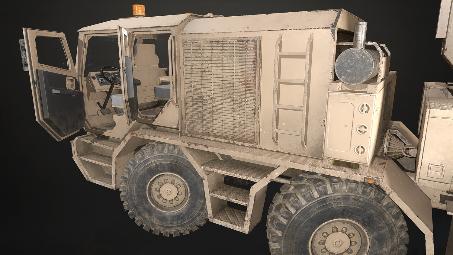 - Cab interior fully modeled, textured and accessible.