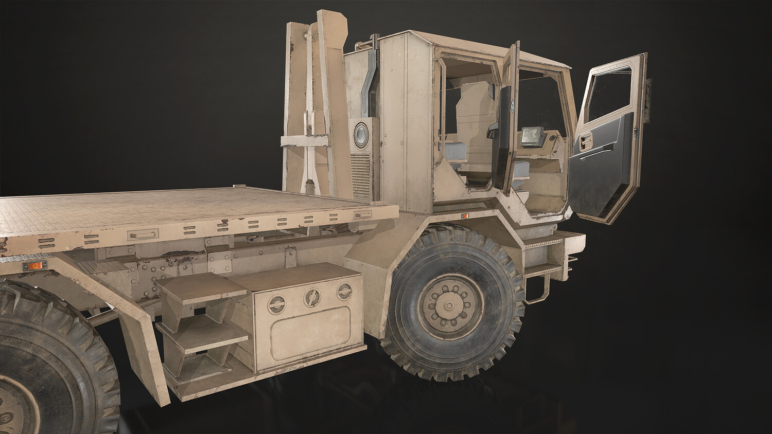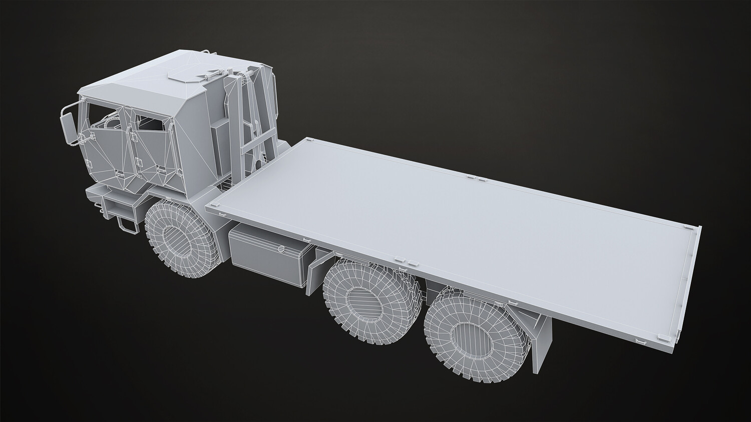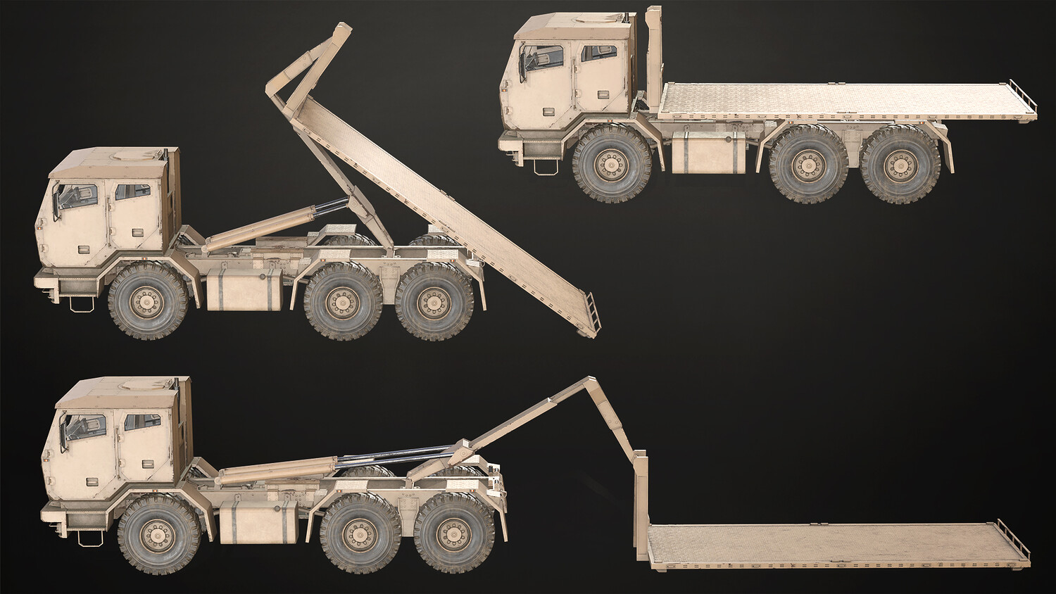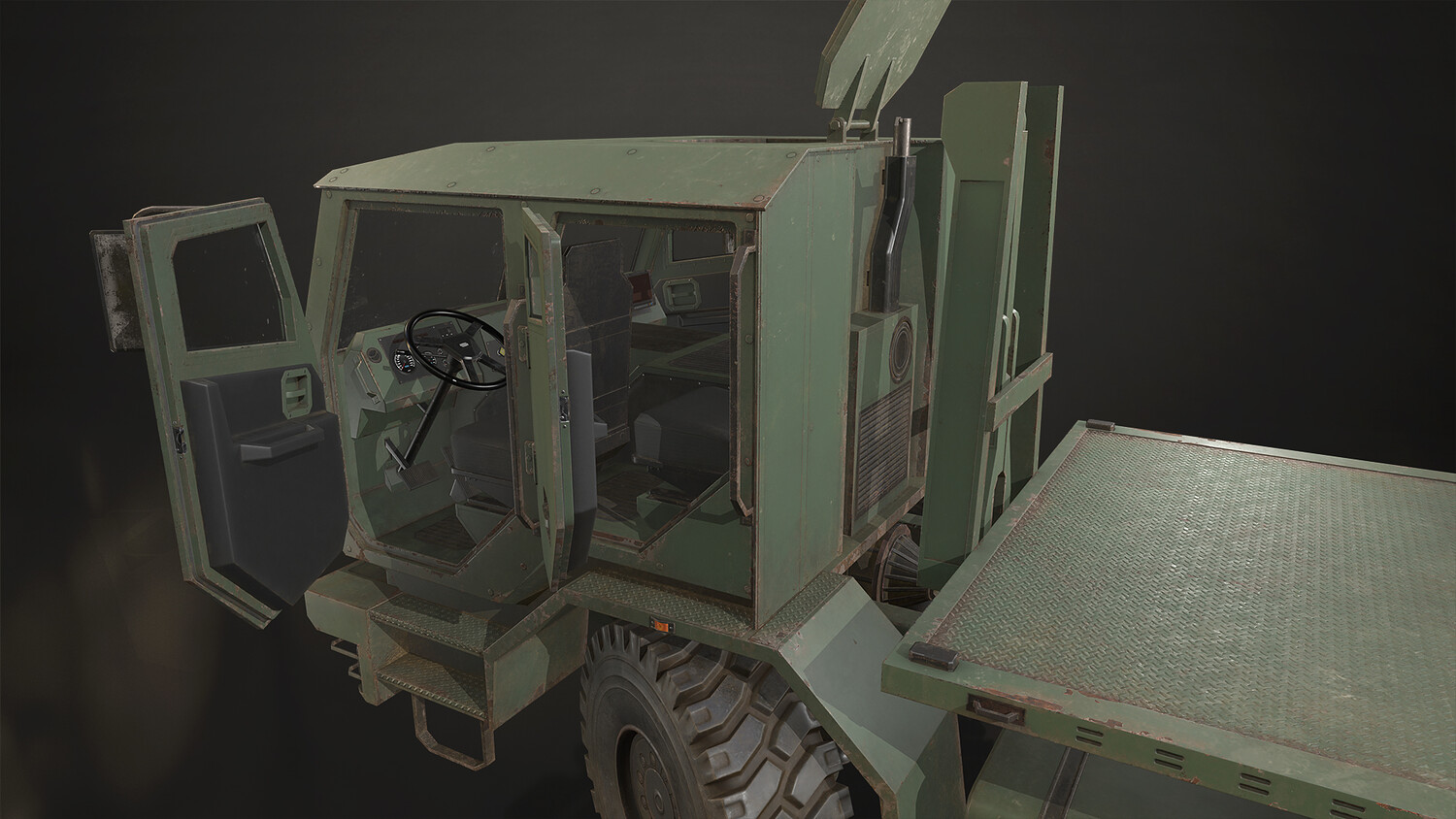 - All doors, wheels, steering wheel and shifters are separate objects and can be easily rigged/animated. Flatbed parts such as bed, arm and hydraulic cylinders also separated, ready to rig/animate (model NOT animated). It can all be detached if desired to use only truck chassis.