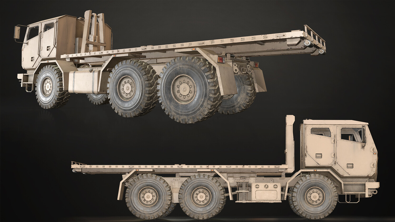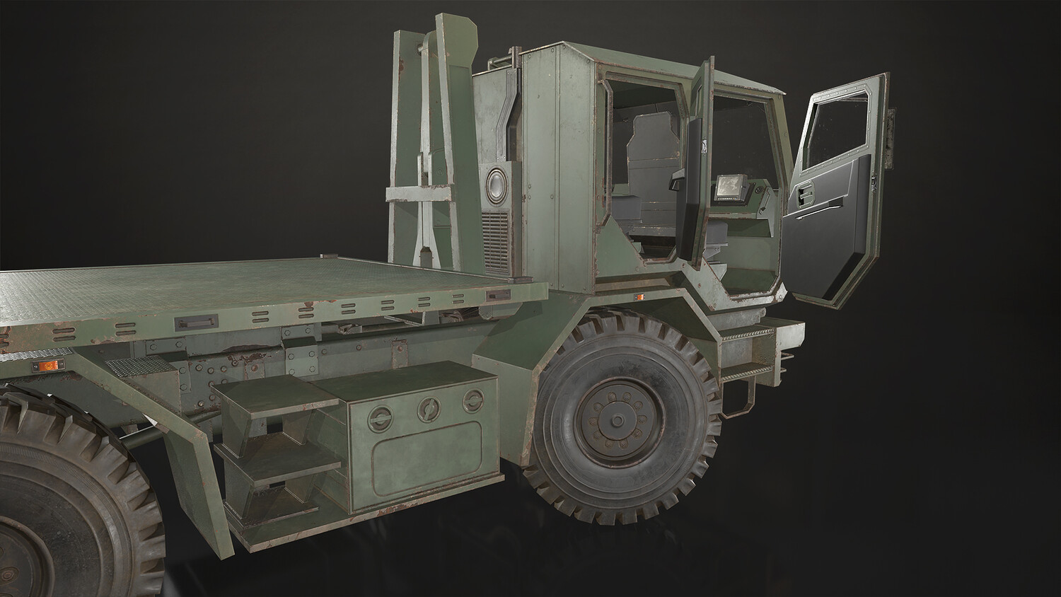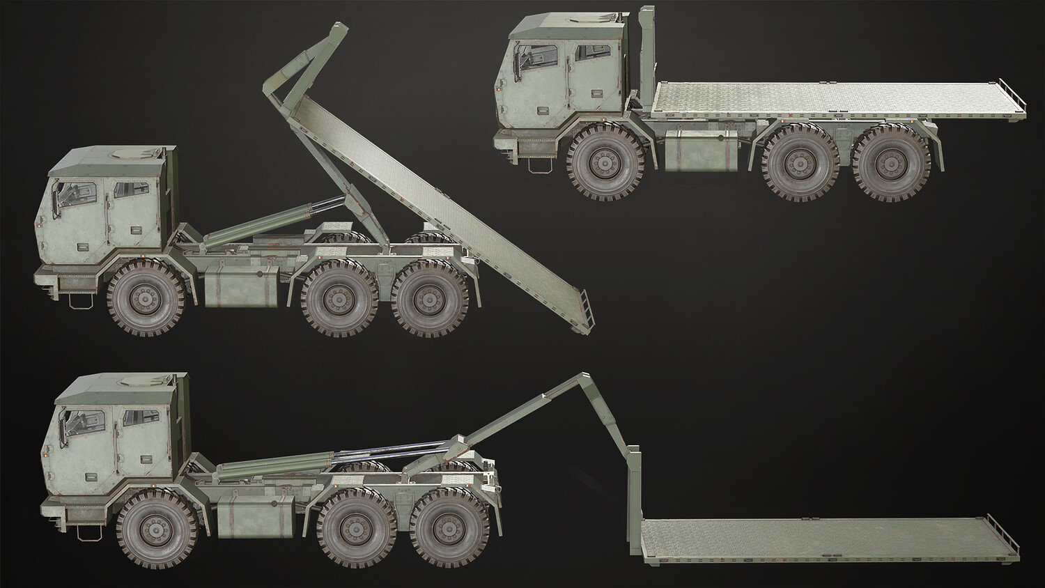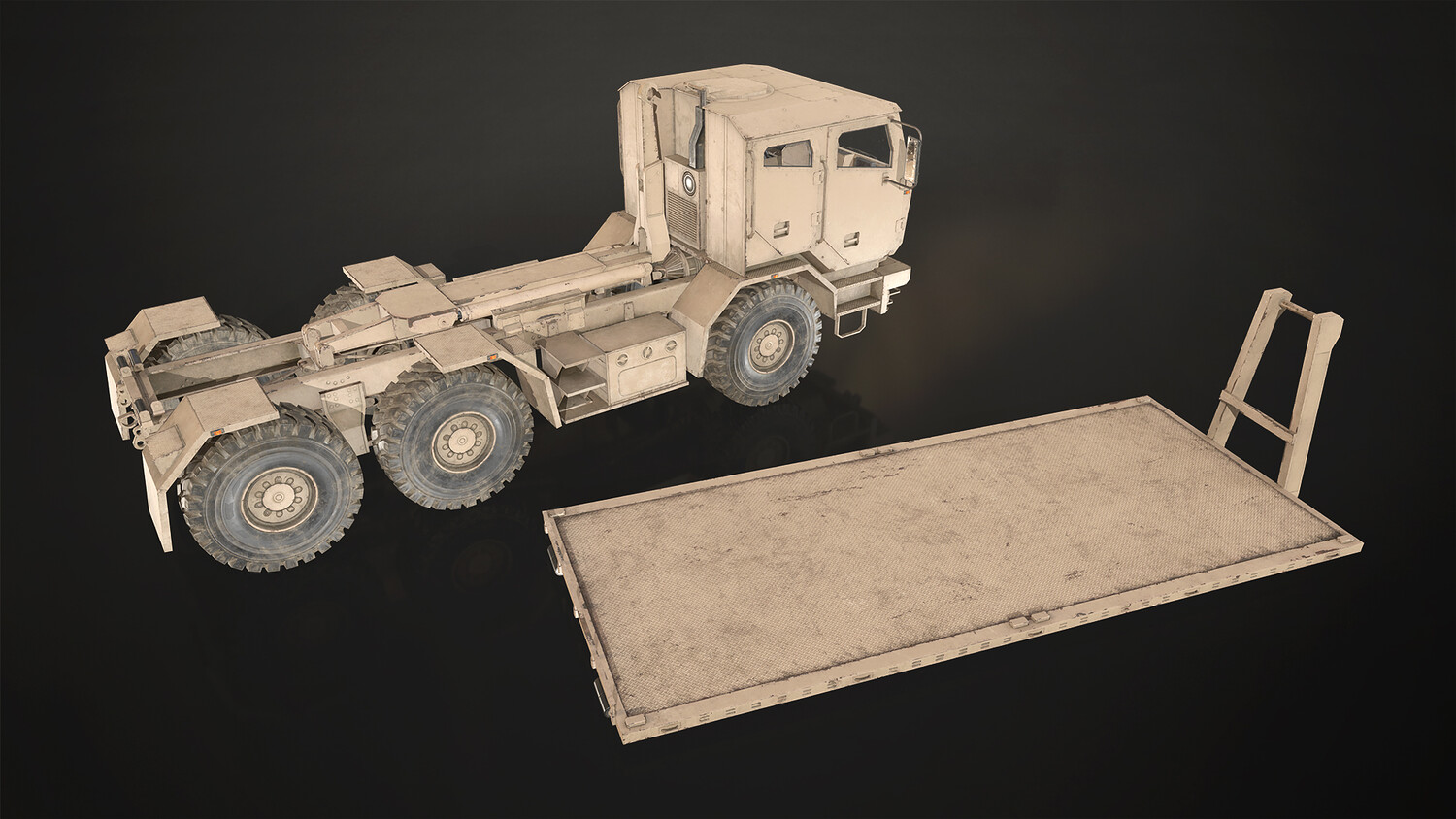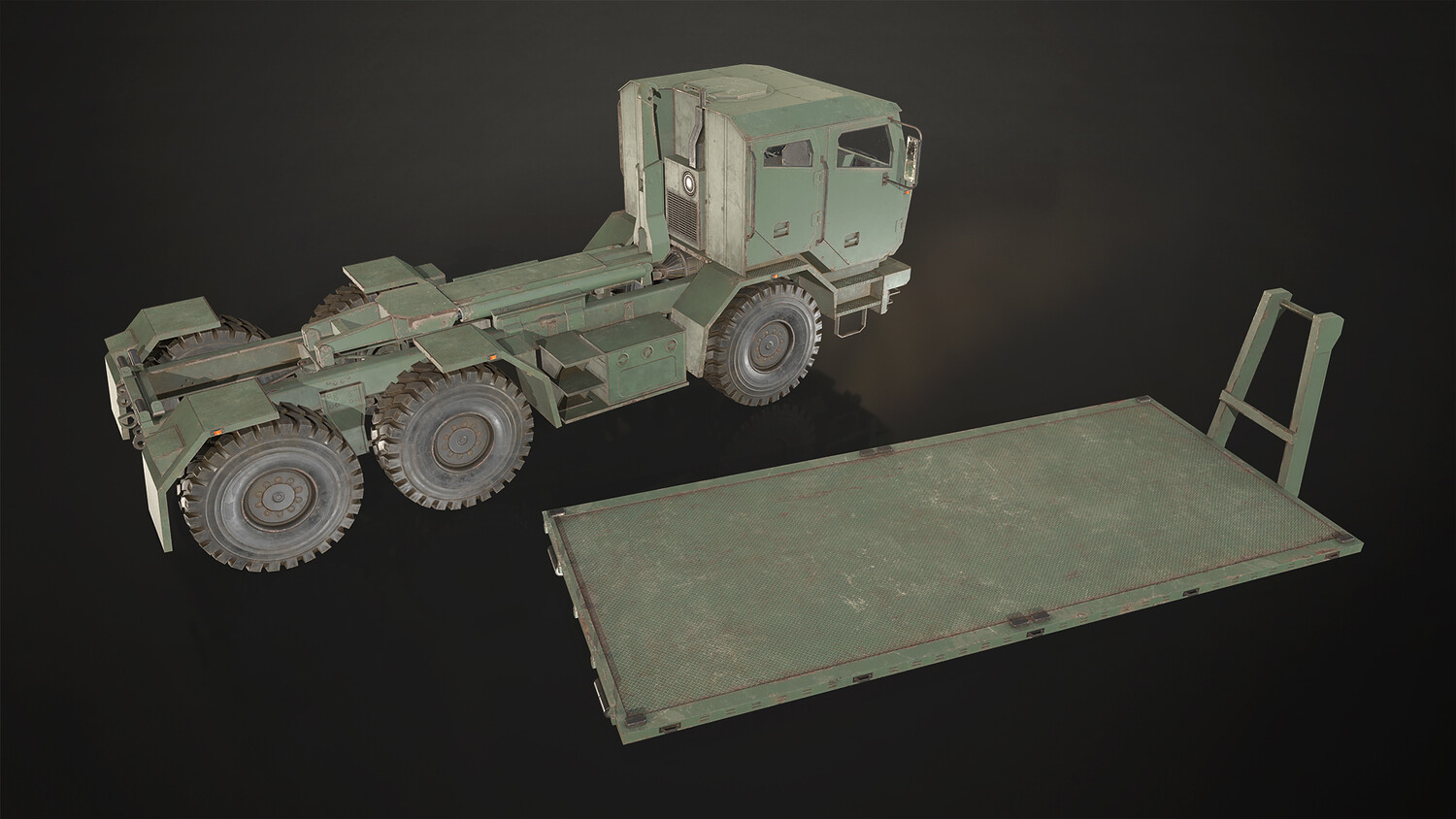 - All doors, wheels, steering wheel and shifters are separate objects and can be easily rigged/animated. Flatbed parts such as bed, arm and hydraulic cylinders also separated, ready to rig/animate (model NOT animated). It can all be detached if desired to use only truck chassis.