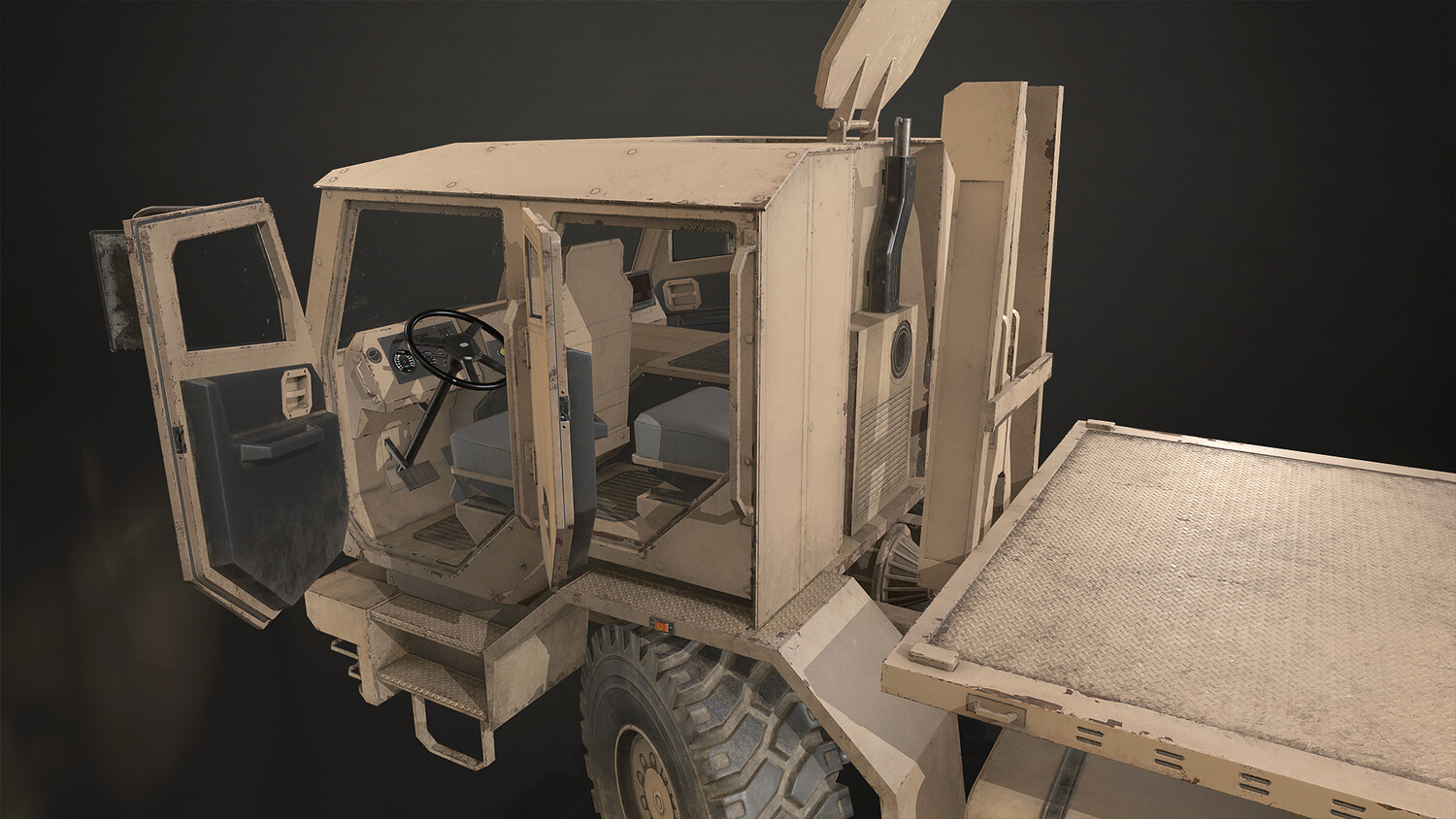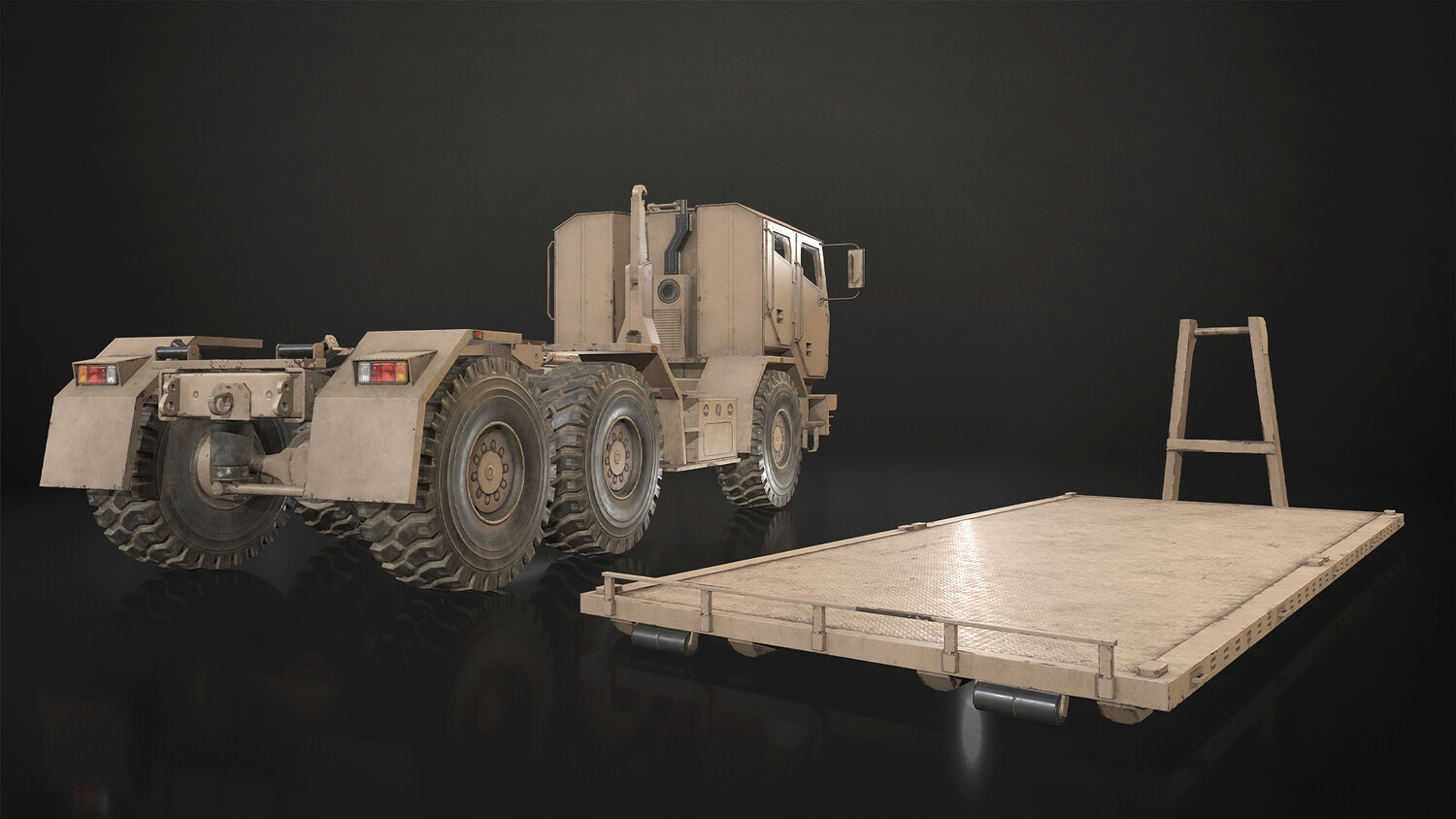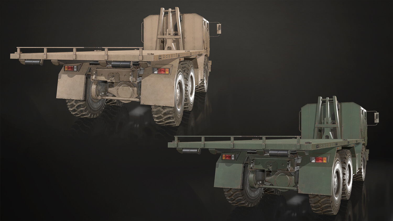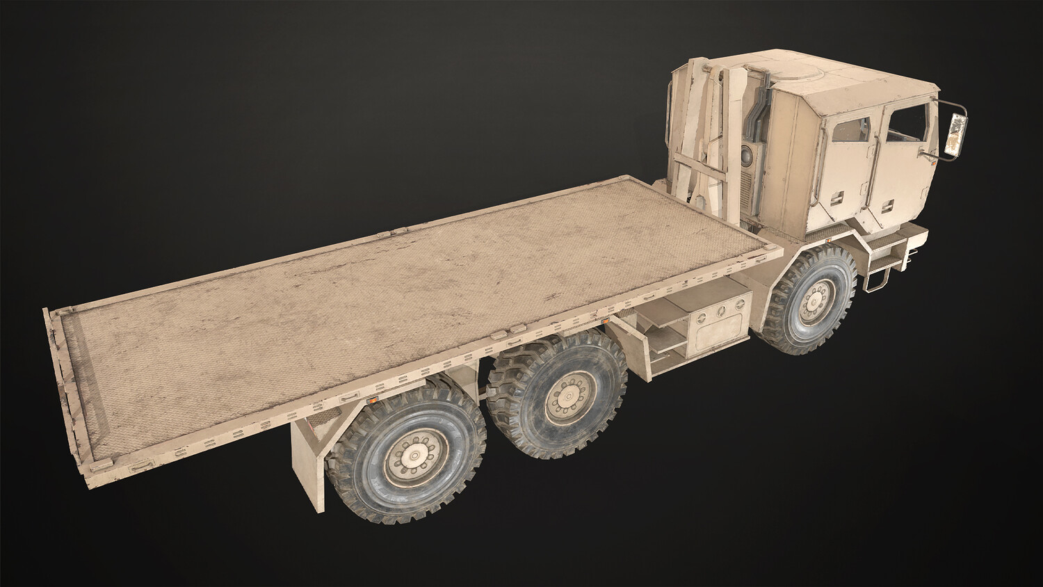- All doors, wheels, steering wheel and shifters are separate objects and can be easily rigged/animated. Flatbed parts such as bed, arm and hydraulic cylinders also separated, ready to rig/animate (model NOT animated). It can all be detached if desired to use only truck chassis.