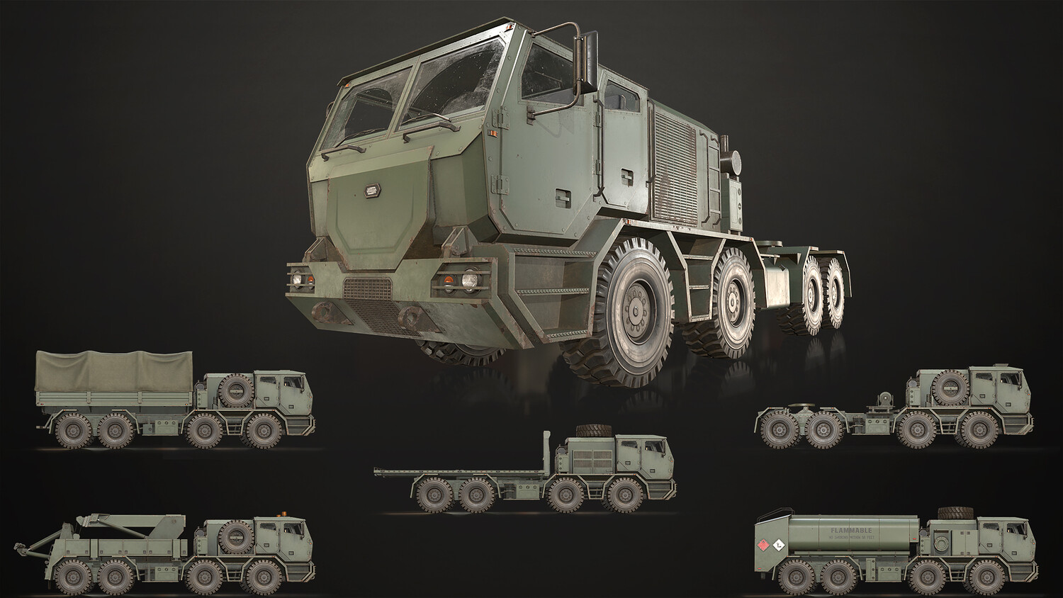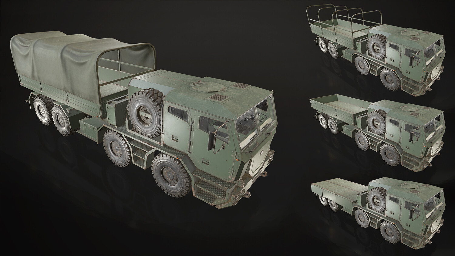 Generic Heavy Military Truck Pack including an 8x8 truck chassis with 5 different variations.