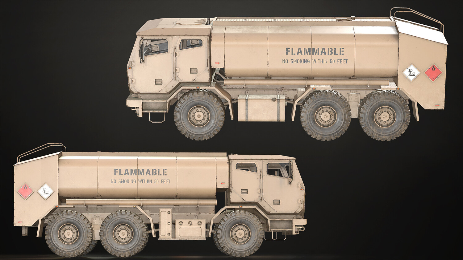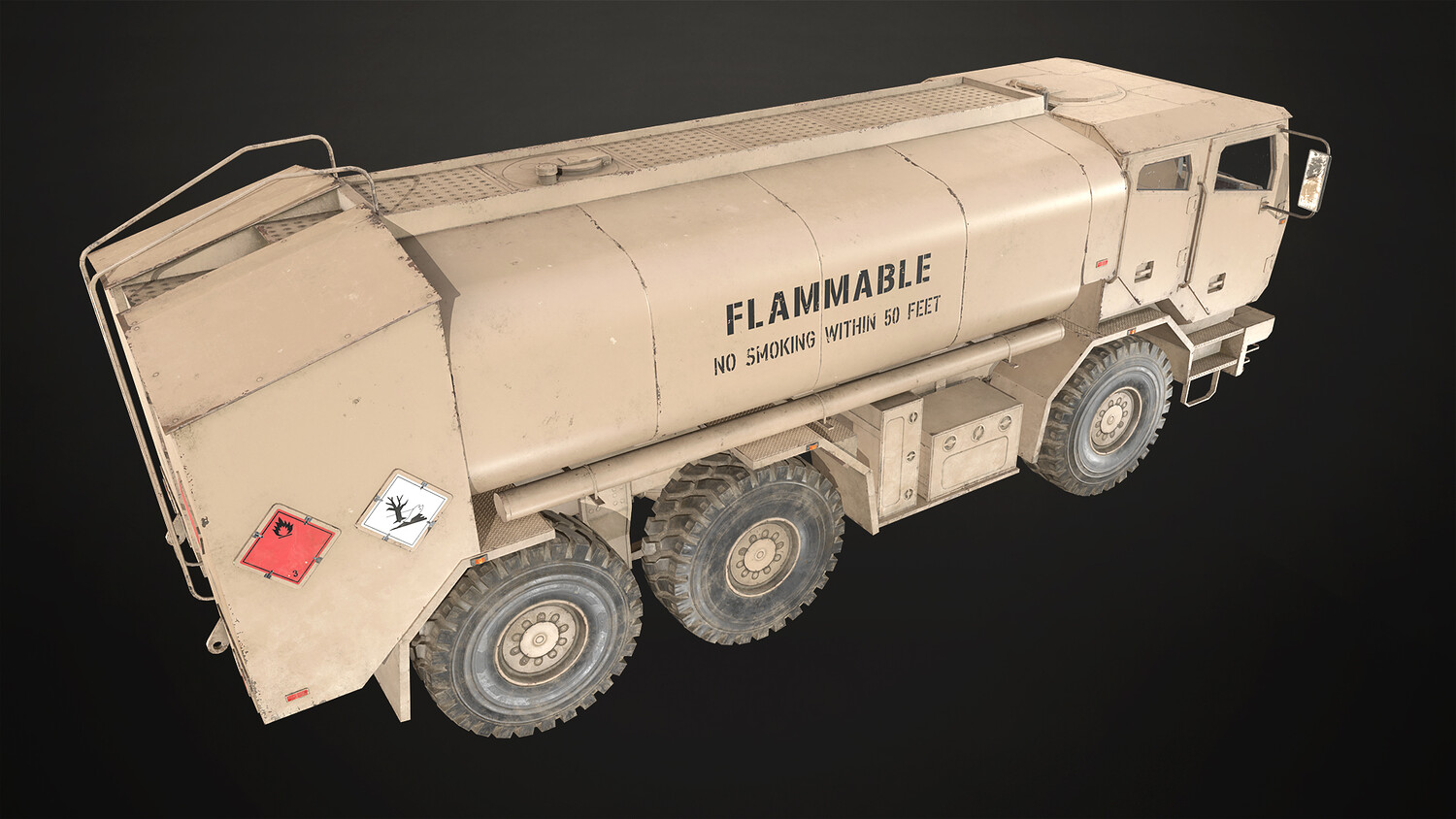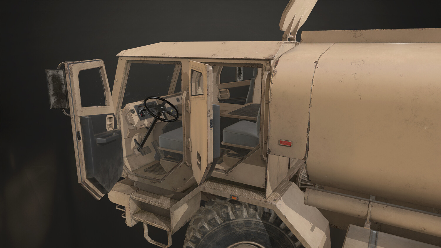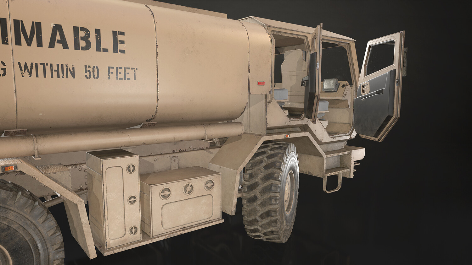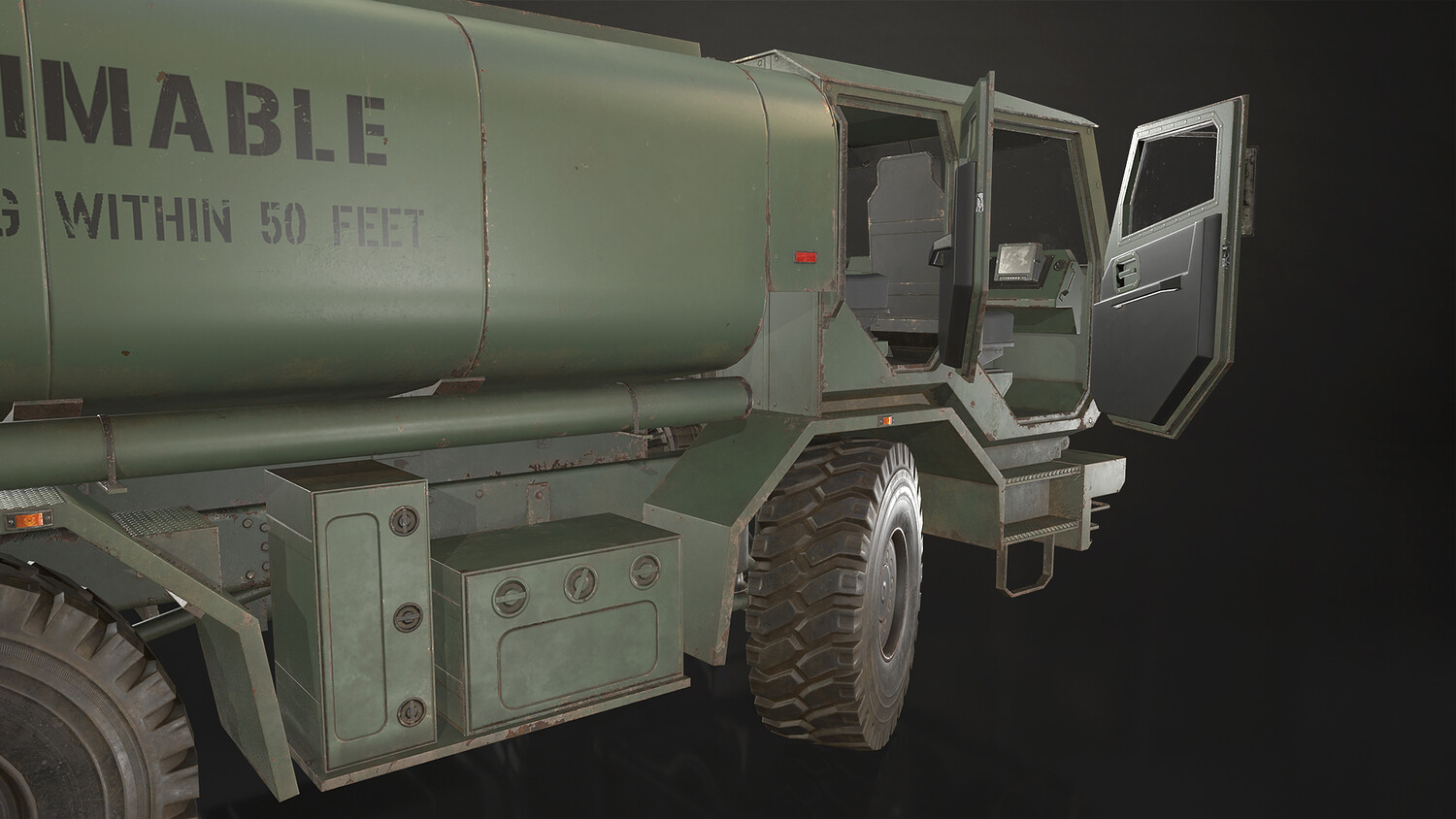 - All doors, wheels, steering wheel and shifters are separate objects and can be easily rigged/animated. Tanker can be detached if desired to use only truck chassis.