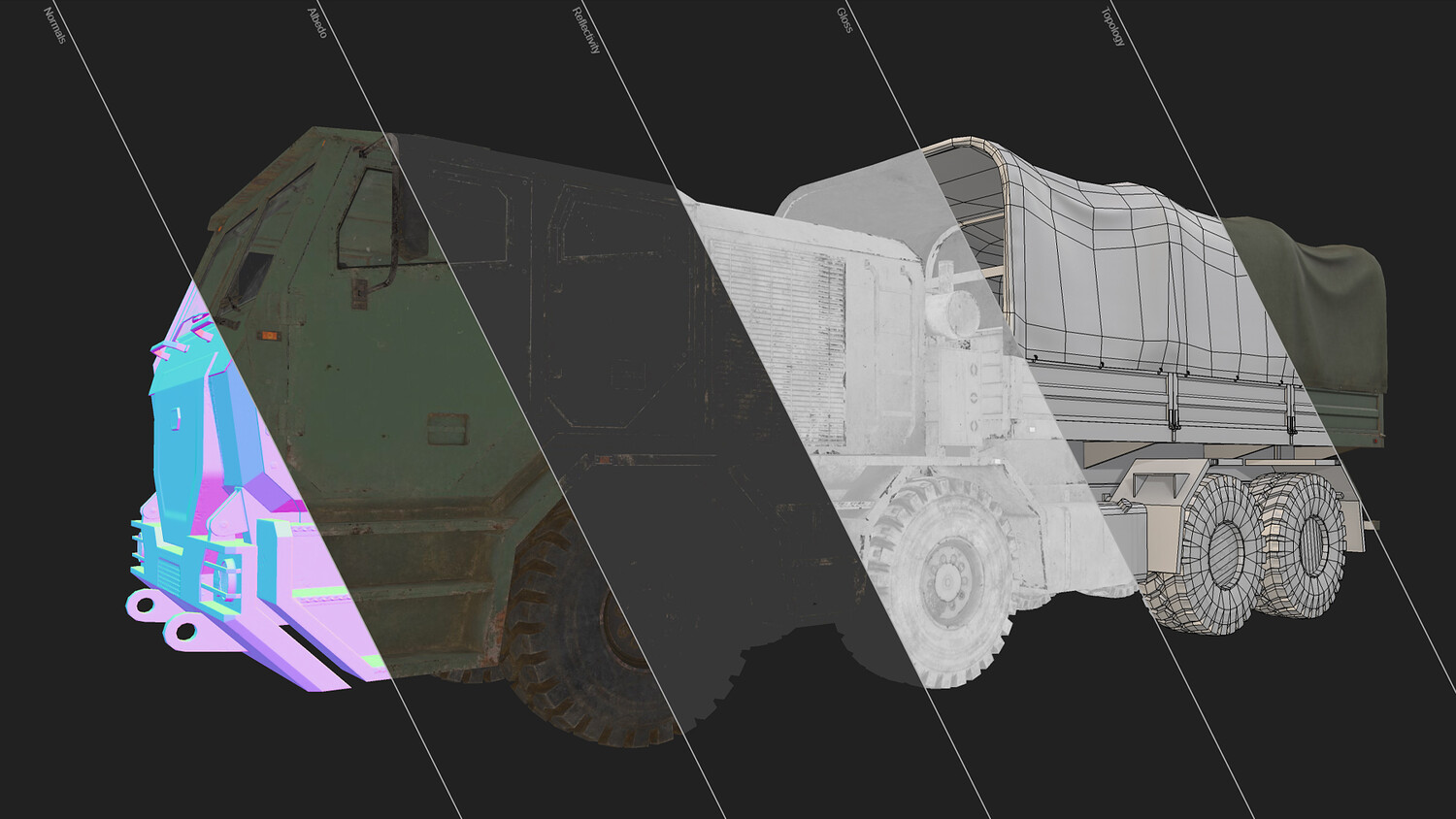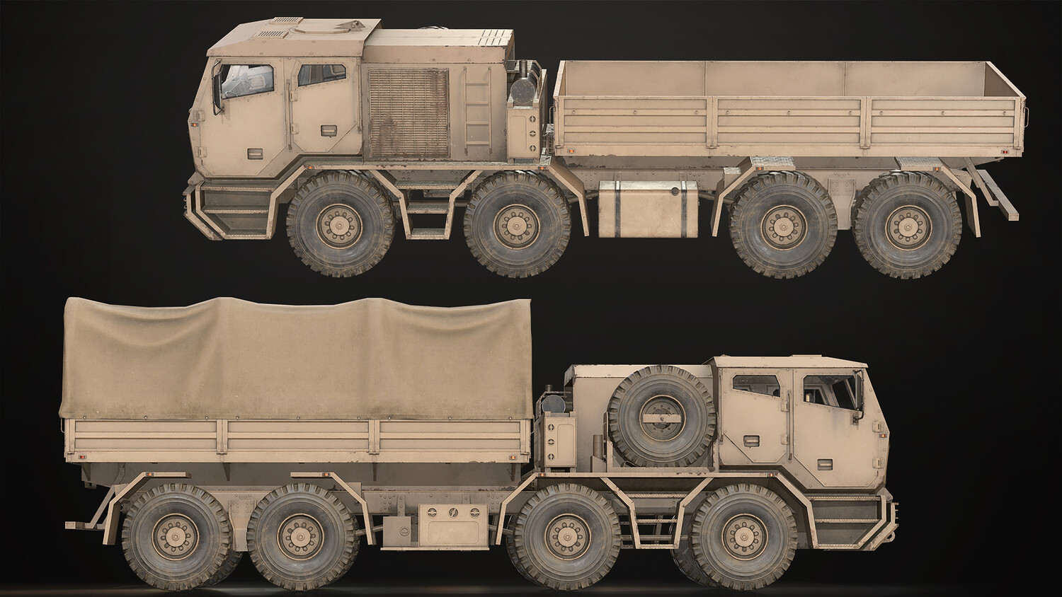 Modular fairly low poly model (48467 tris), gameready and with 2 colors included (green and desert):