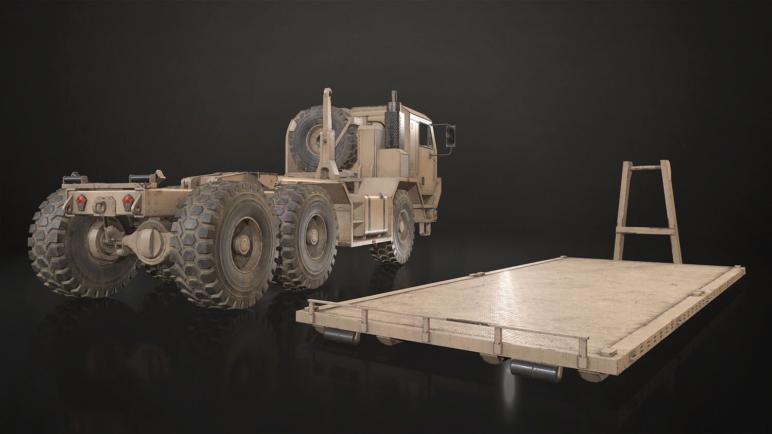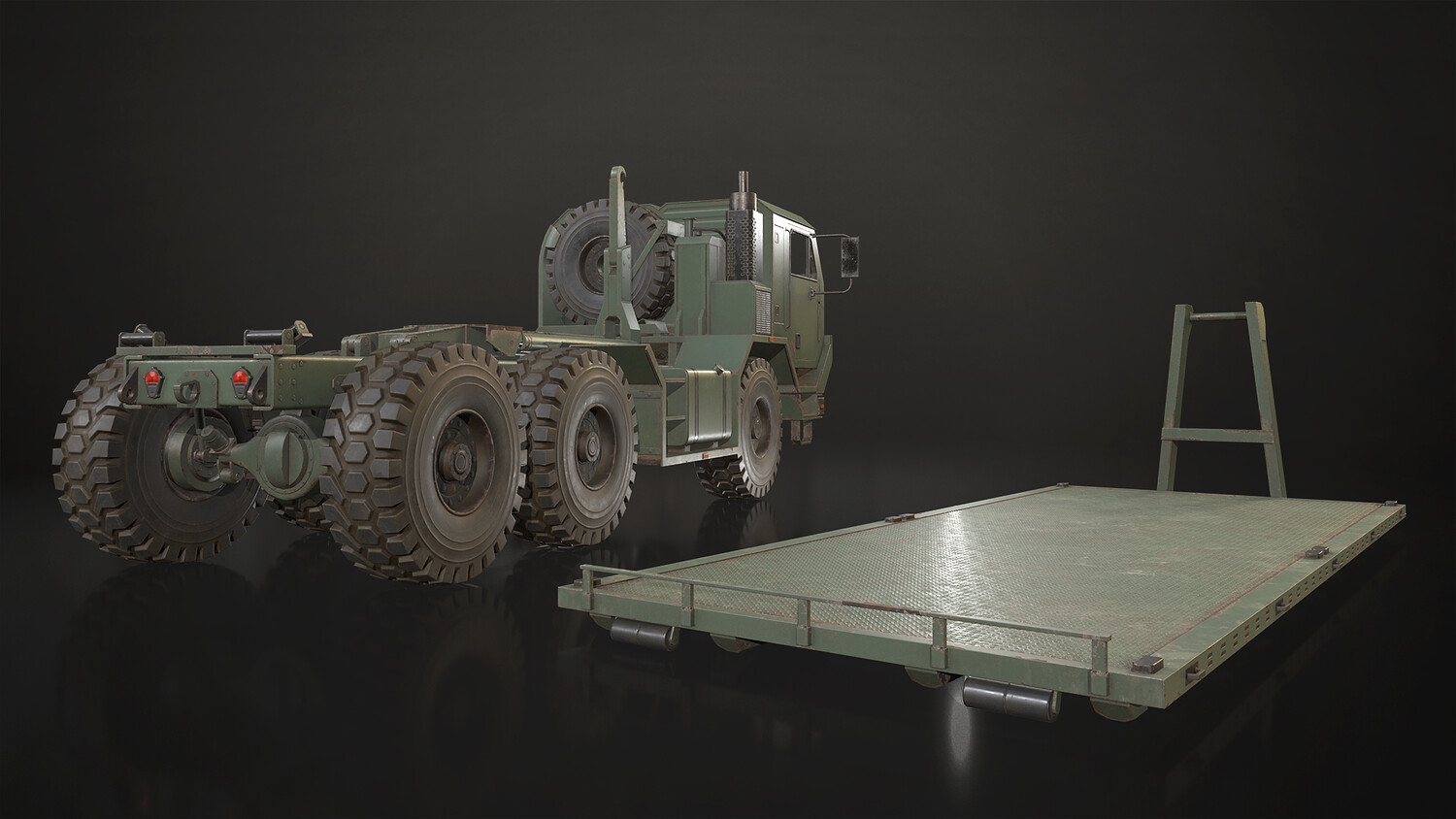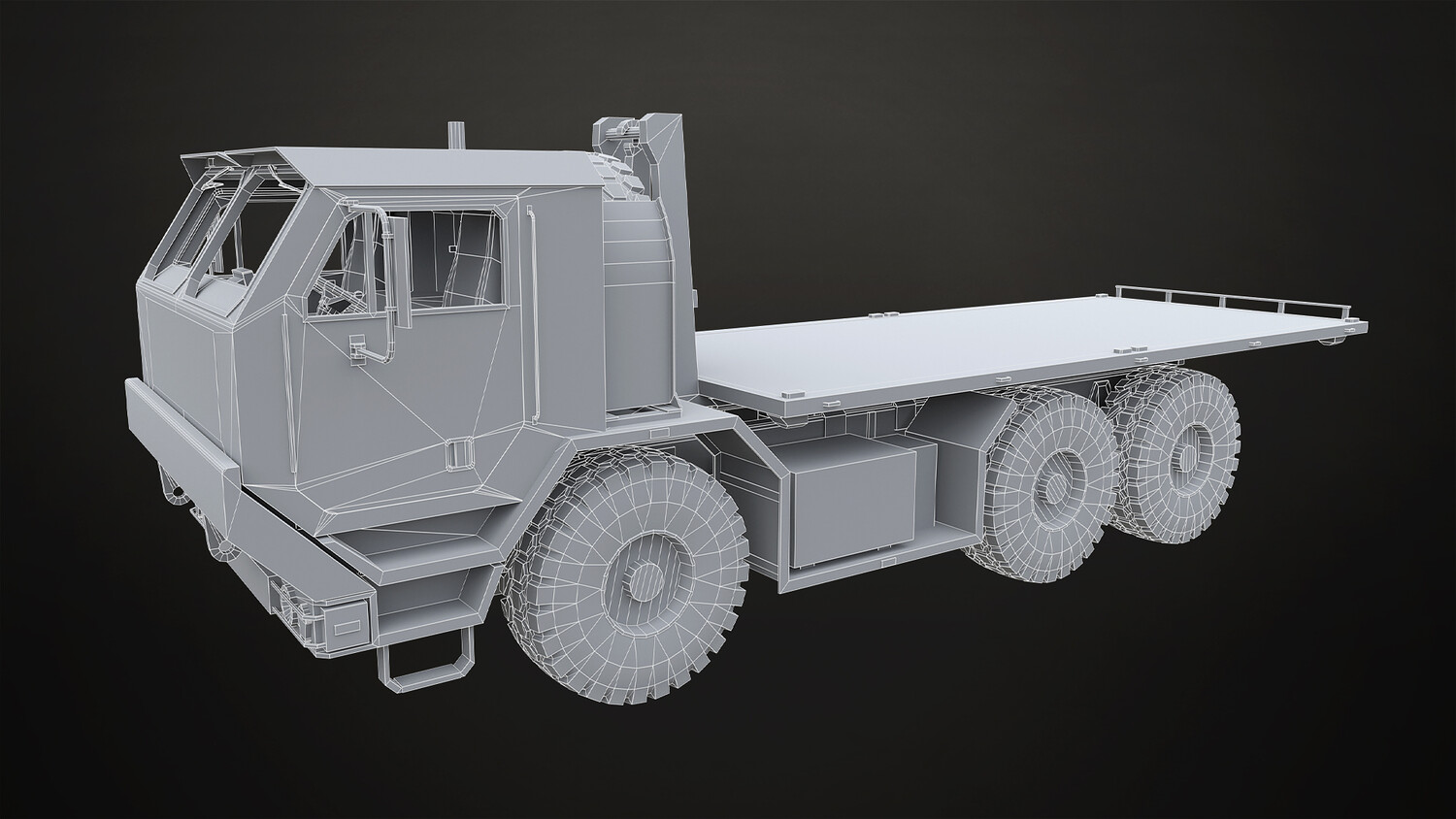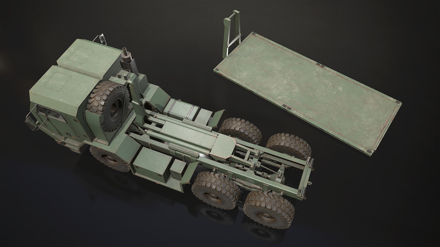- All doors, wheels, steering wheel and shifter are separate objects and can be easily rigged/animated. Flatbed parts such as bed, arm and hydraulic cylinders also separated, ready to rig/animate (model NOT animated). It can all be detached if desired to use only truck chassis.