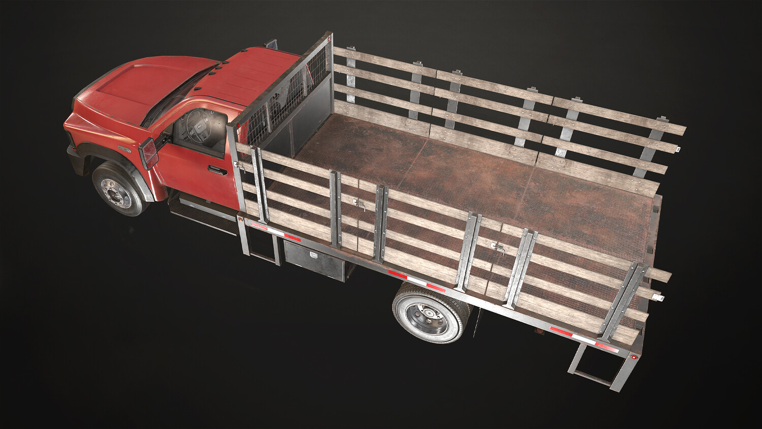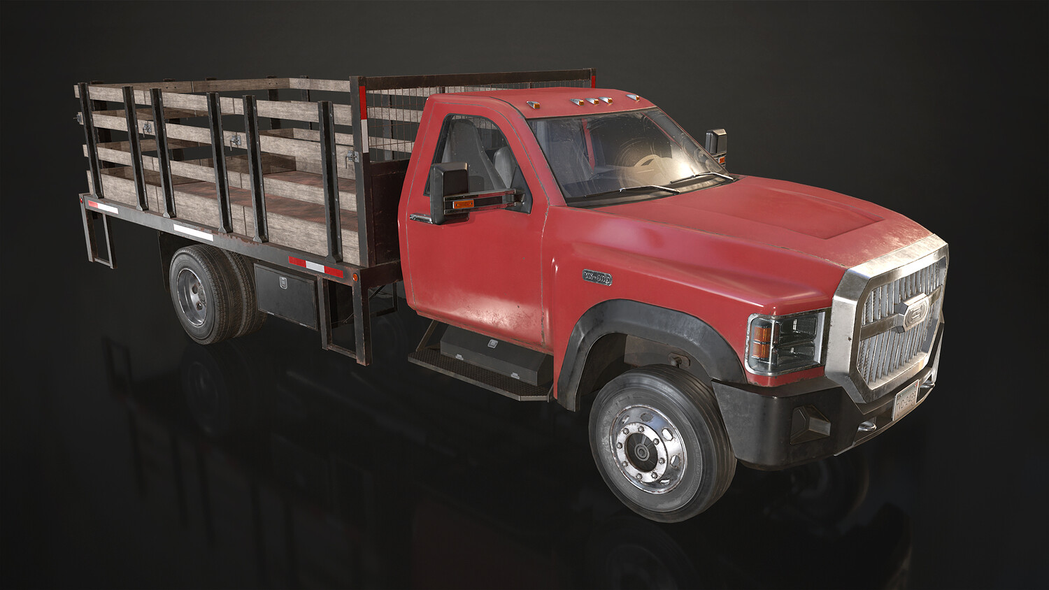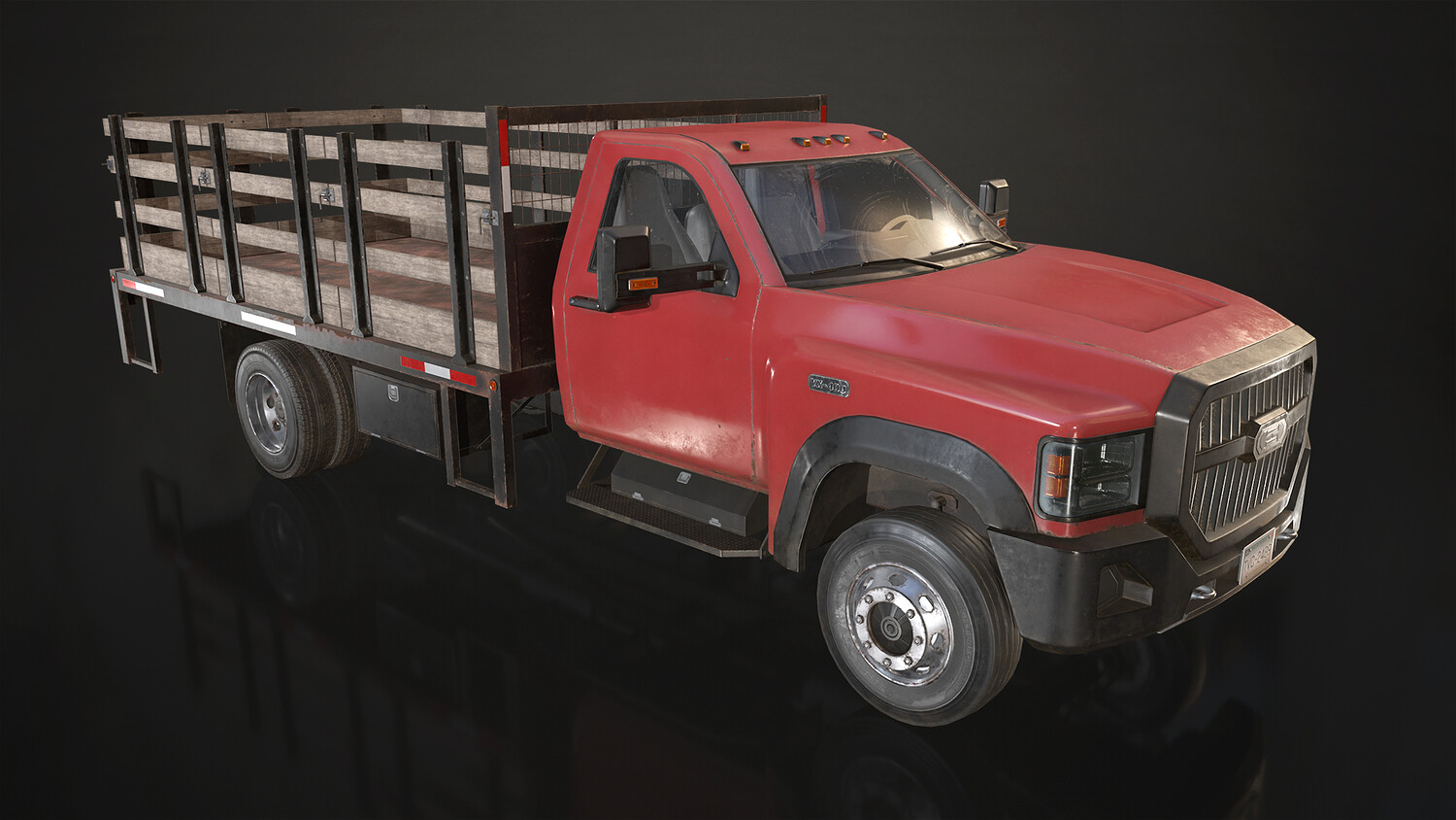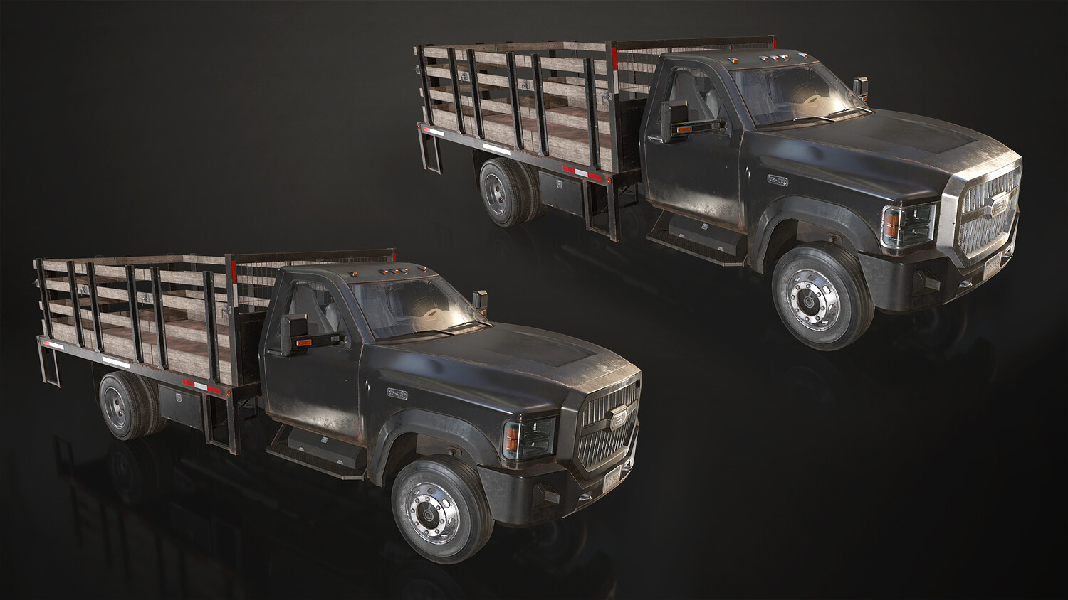 The package includes a truck base with multiple visual configurations, built with realistic proportions and optimized geometry. The stake bed module features removable wooden side and rear panels (stake) as separate meshes, allowing it to be used as a fully enclosed stake bed or a flatbed. Module can also be detached to use chassis individually.