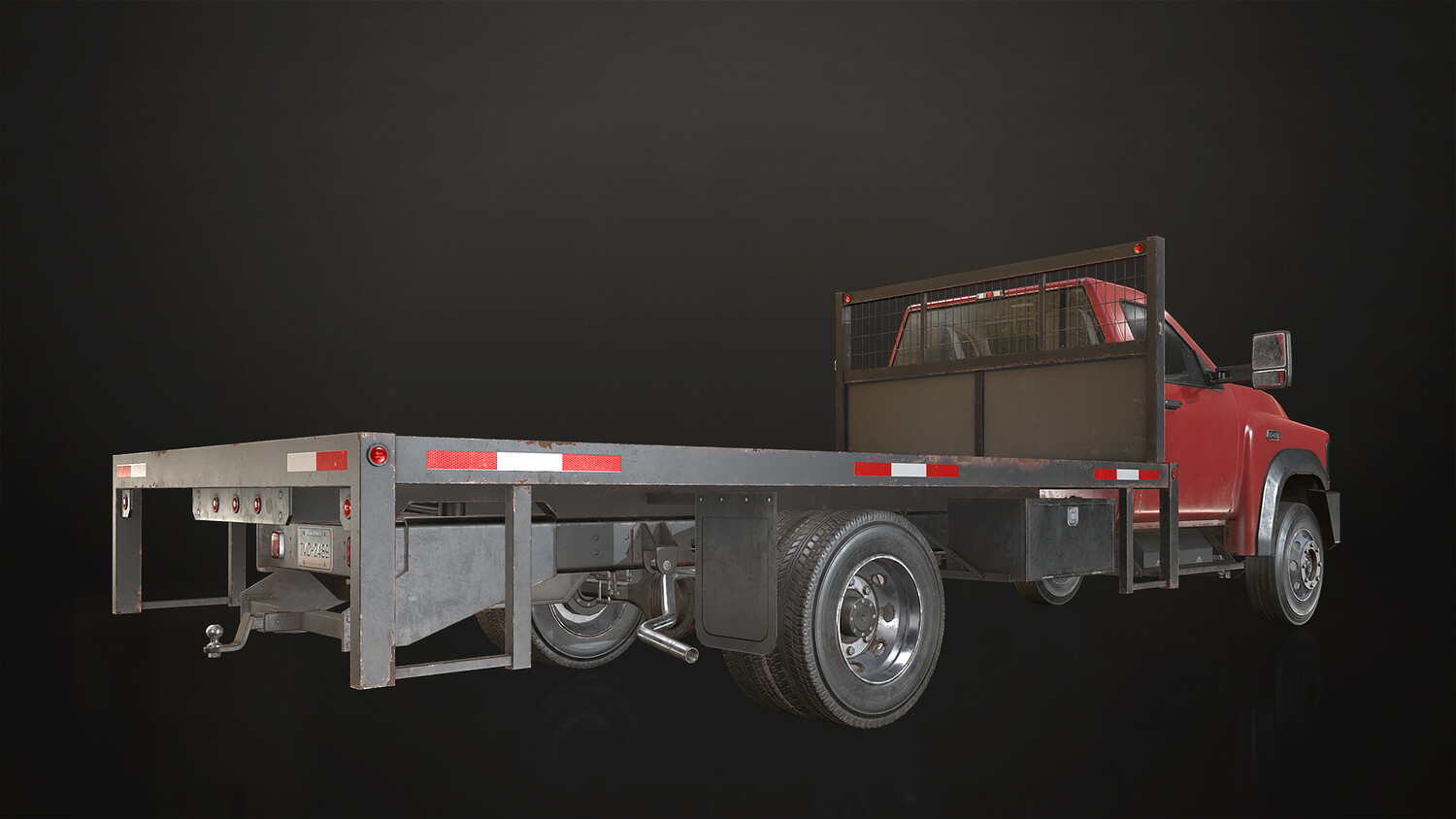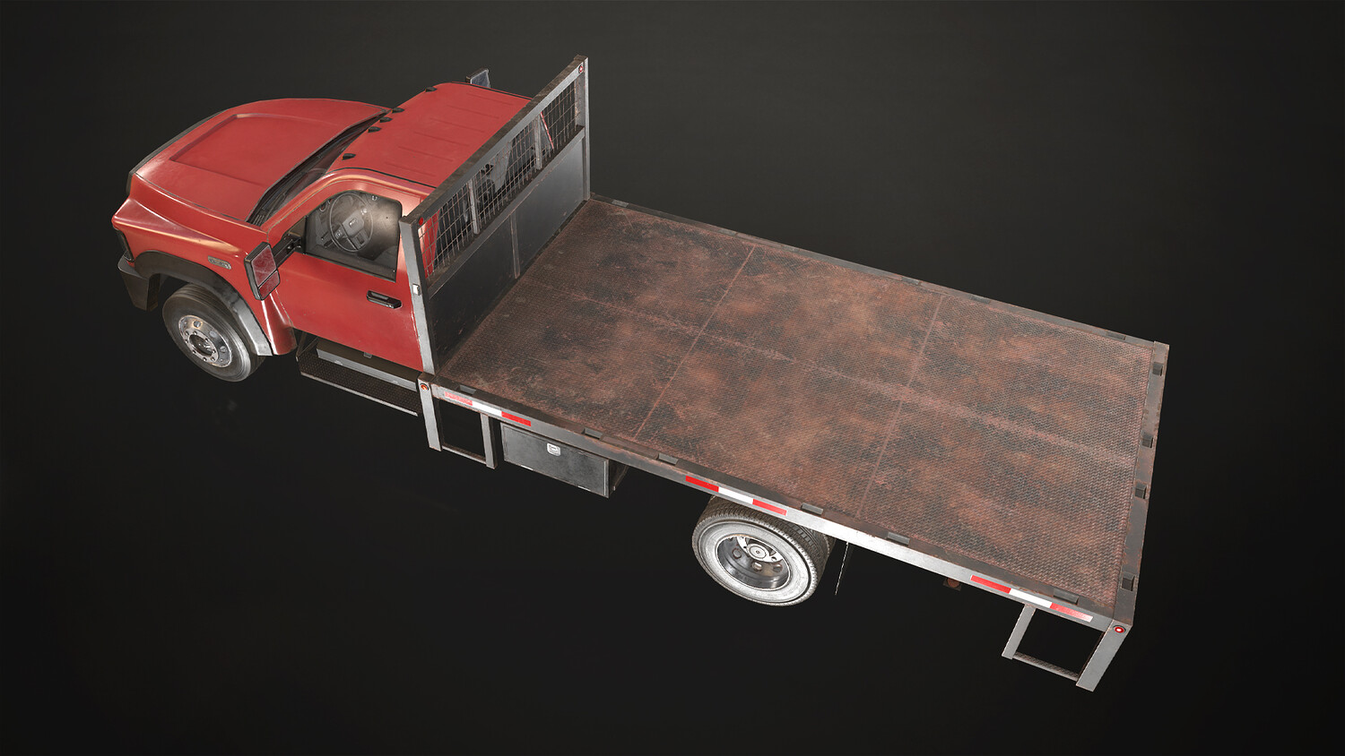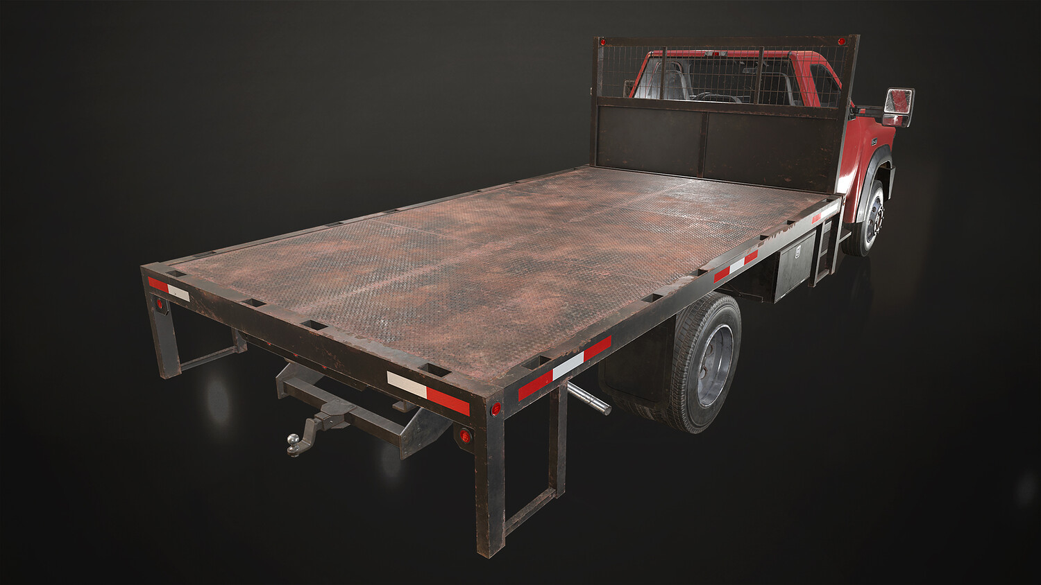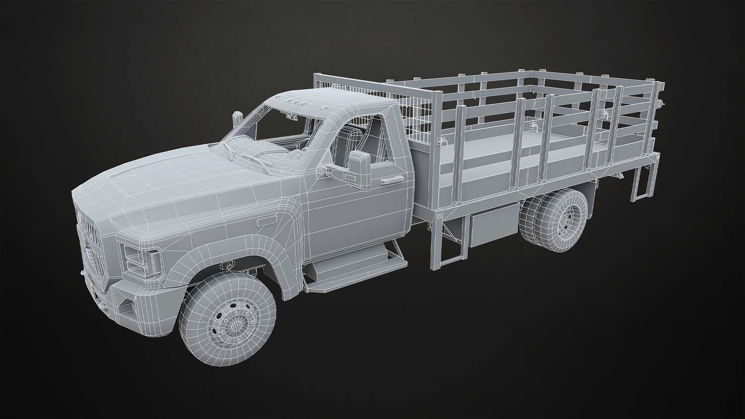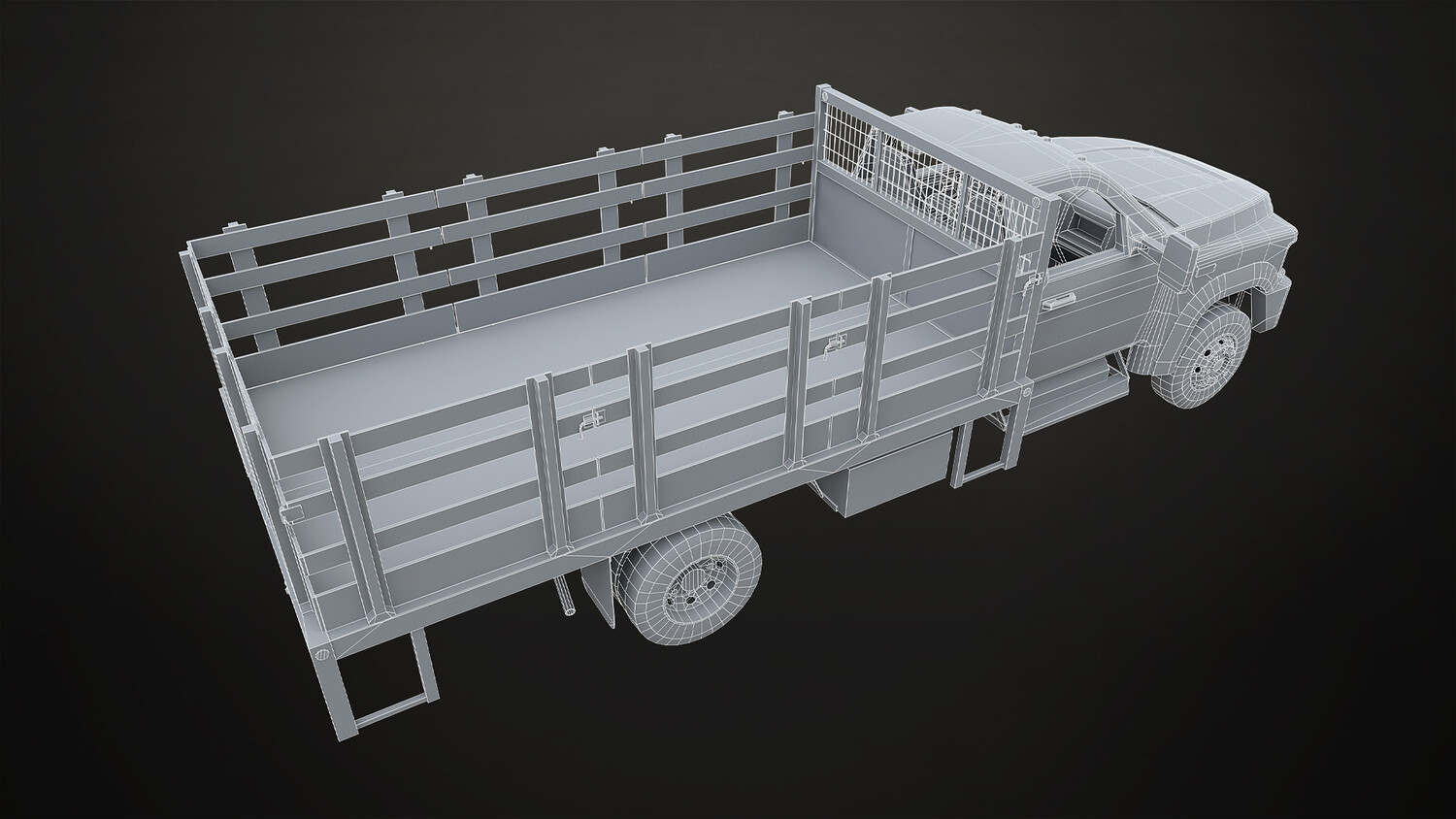 Low-mid poly medium duty work vehicle chassis with regular cab and a 14 ft Stake Bed module. PBR-ready, modular and optimized for game engines.