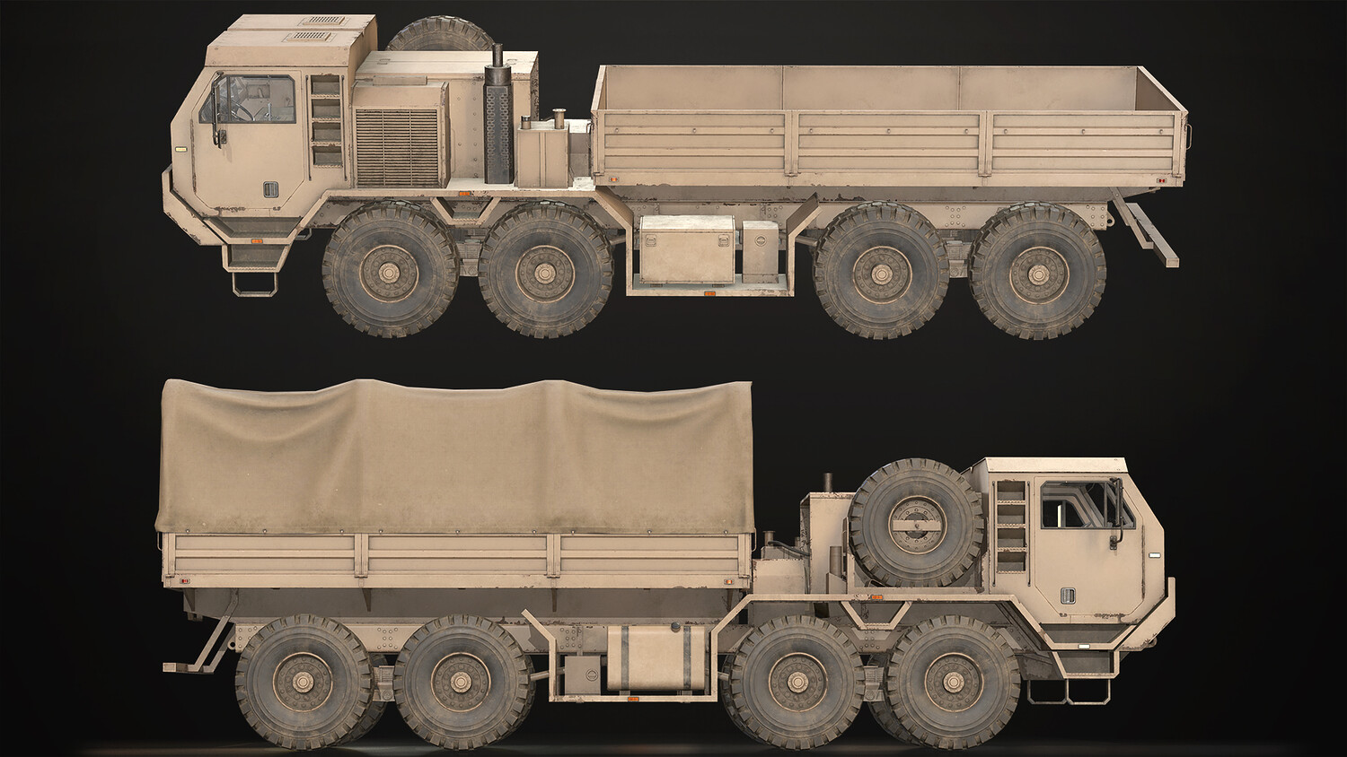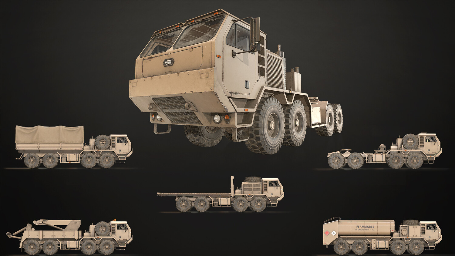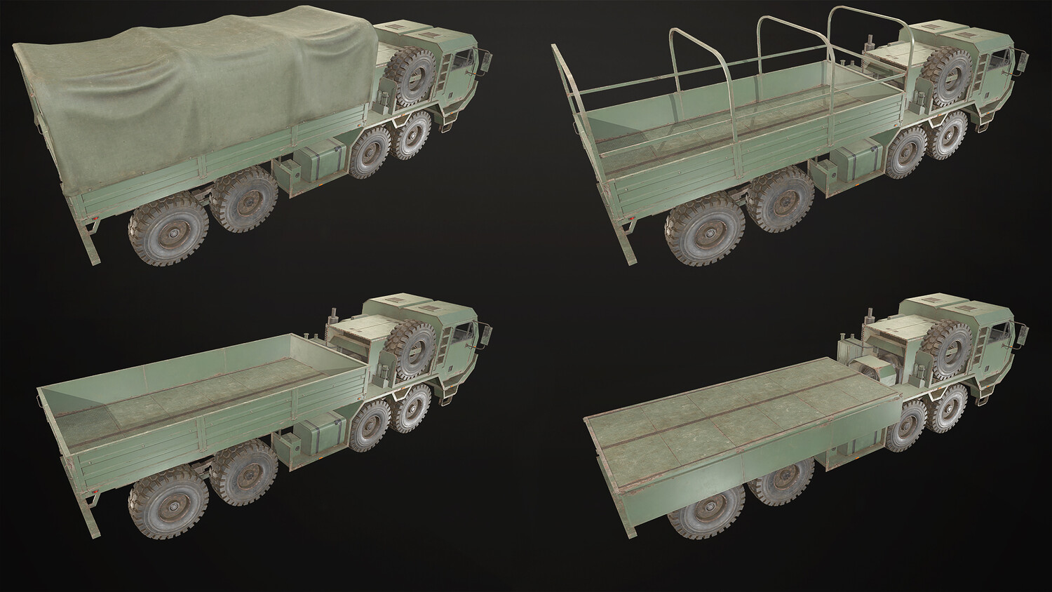 8x8 Heavy Military Truck Pack including a generic truck chassis with 5 different variations.