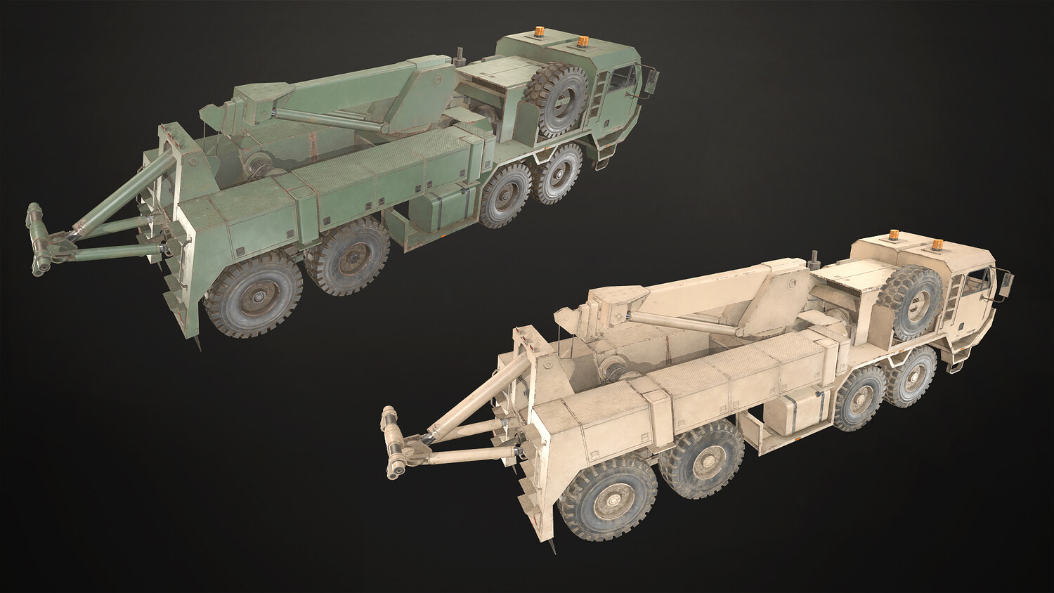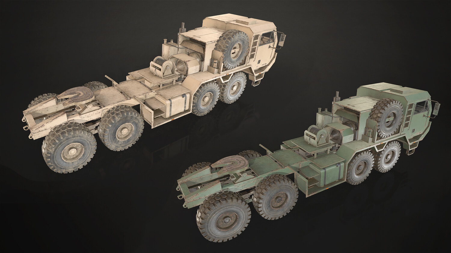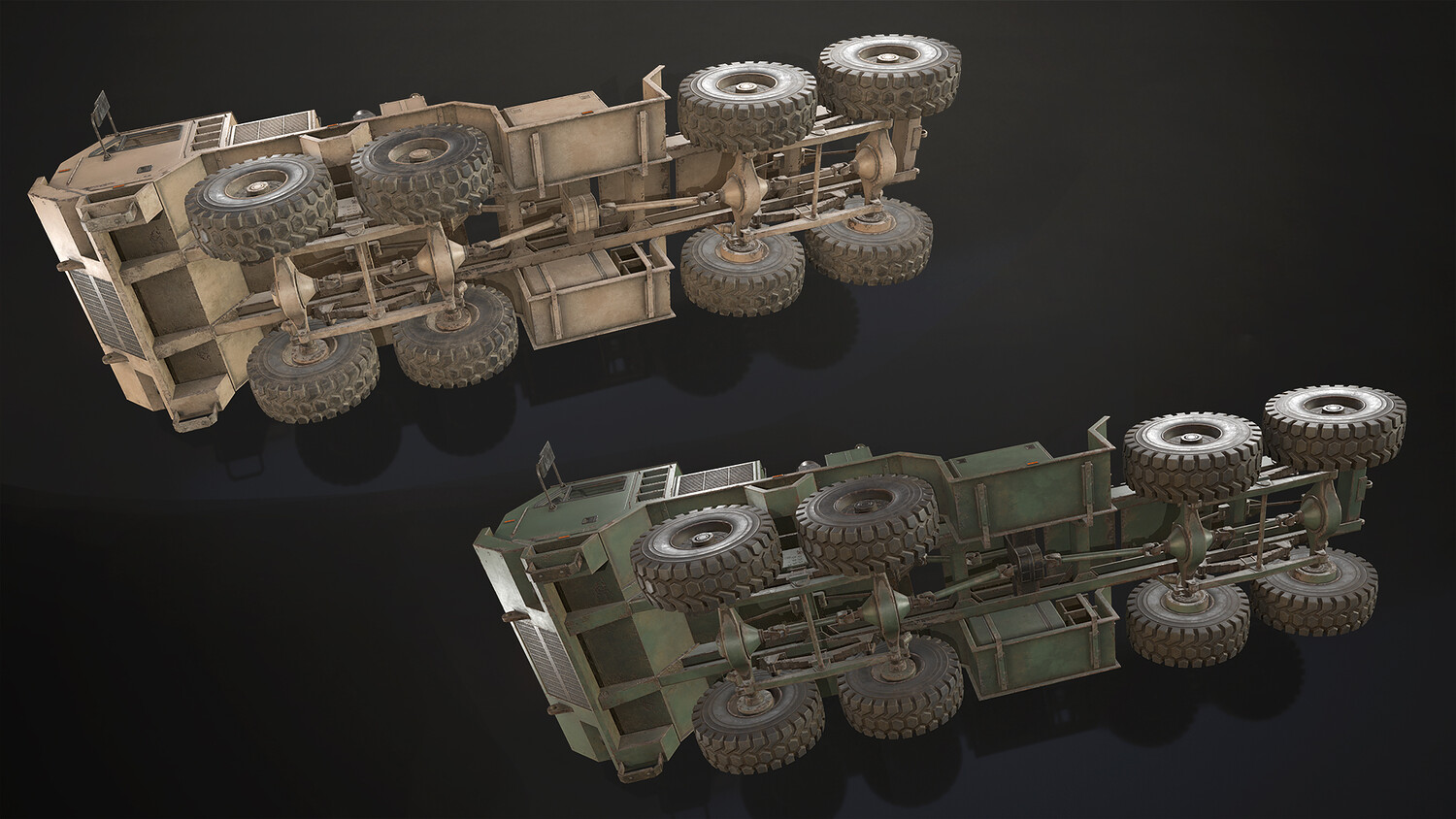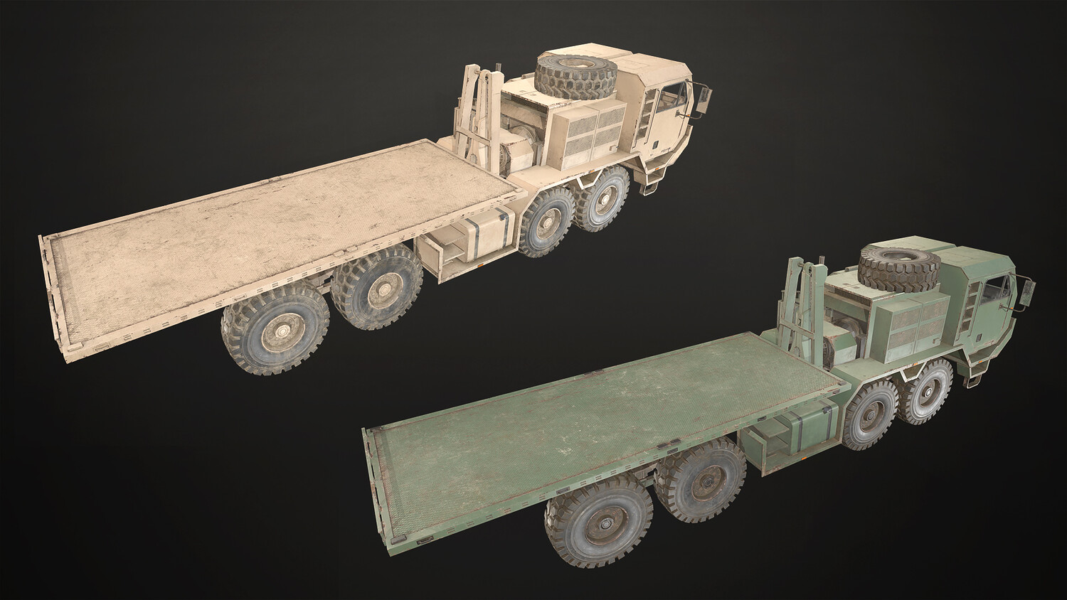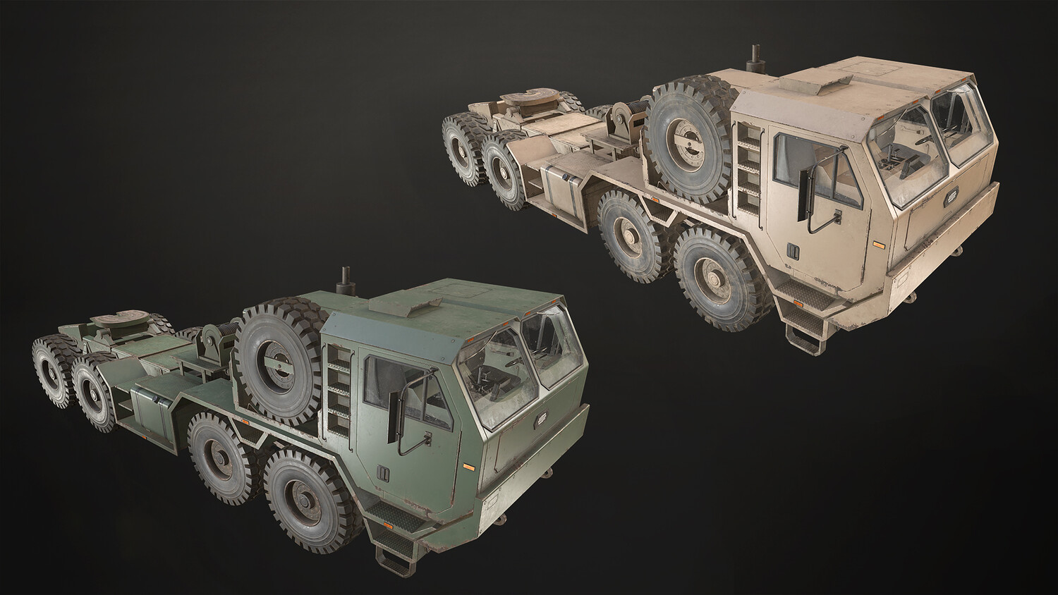 The models are low-mid poly, gameready and including 2 colors (green and desert):