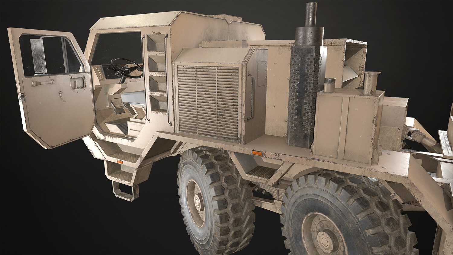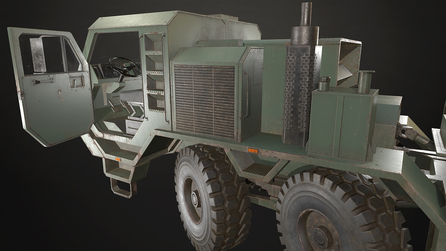 - Cab interior fully modeled, textured and accessible.