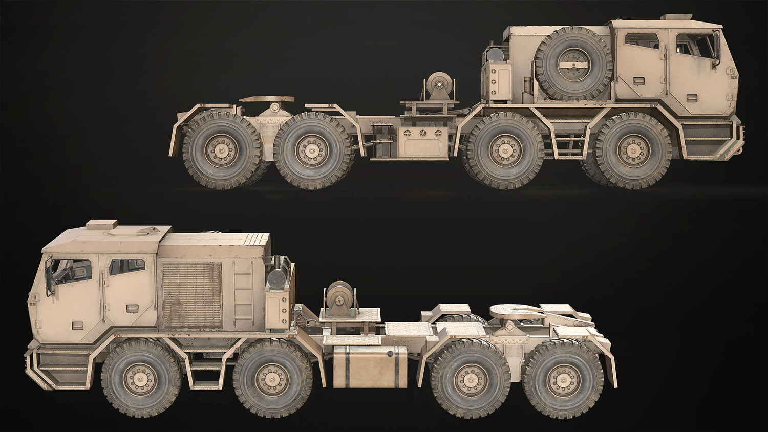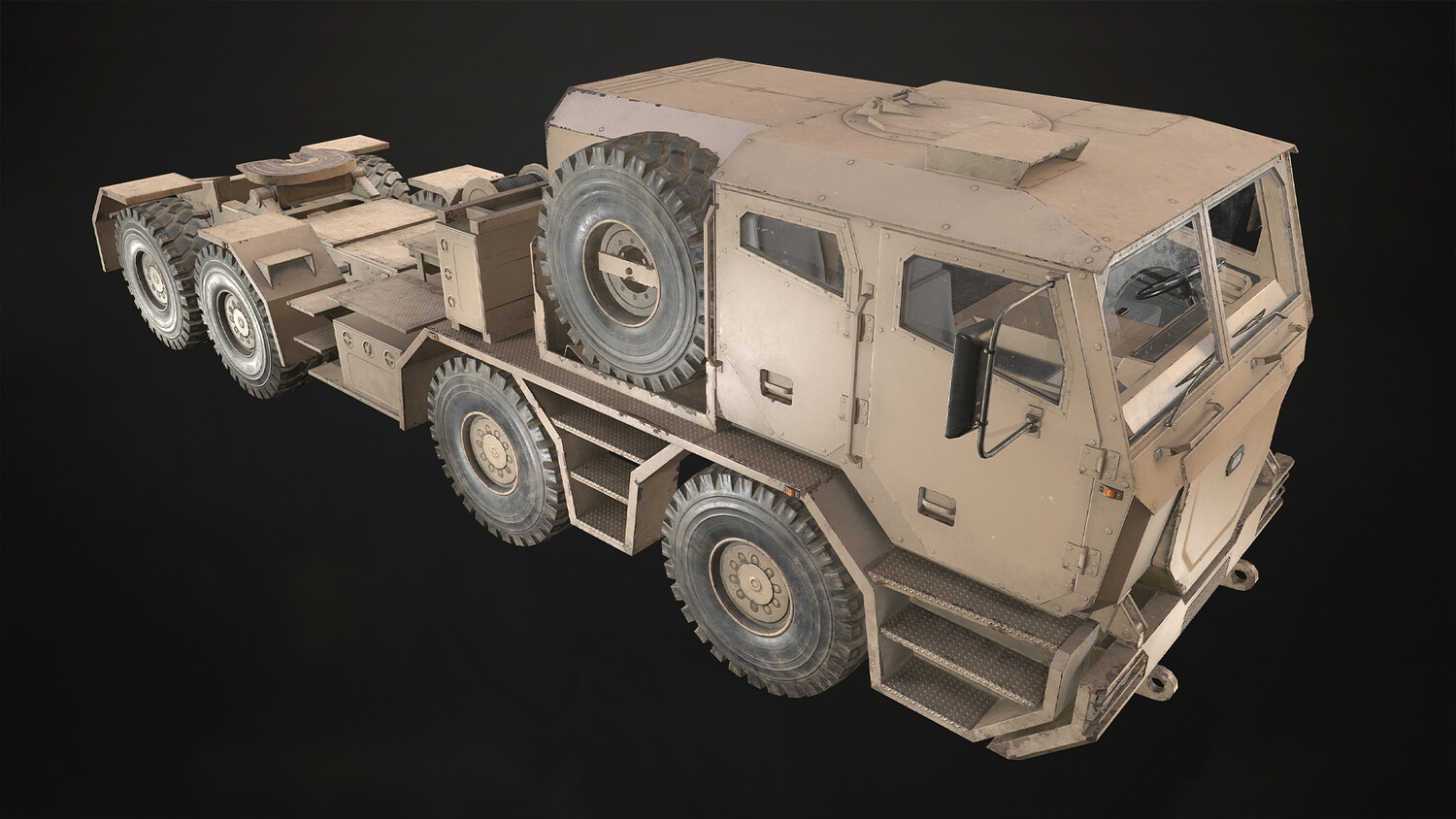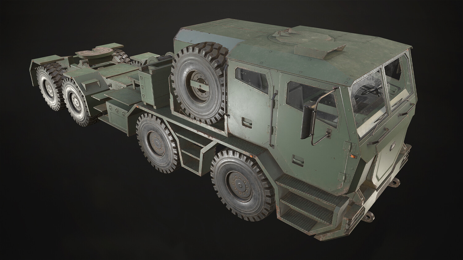 - All doors, wheels, cabin hatch, fifth wheel, steering wheel and shifter are separate objects and can be easily rigged/animated.