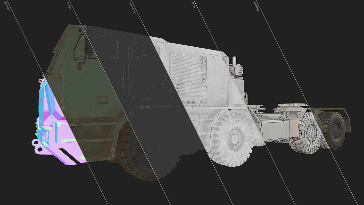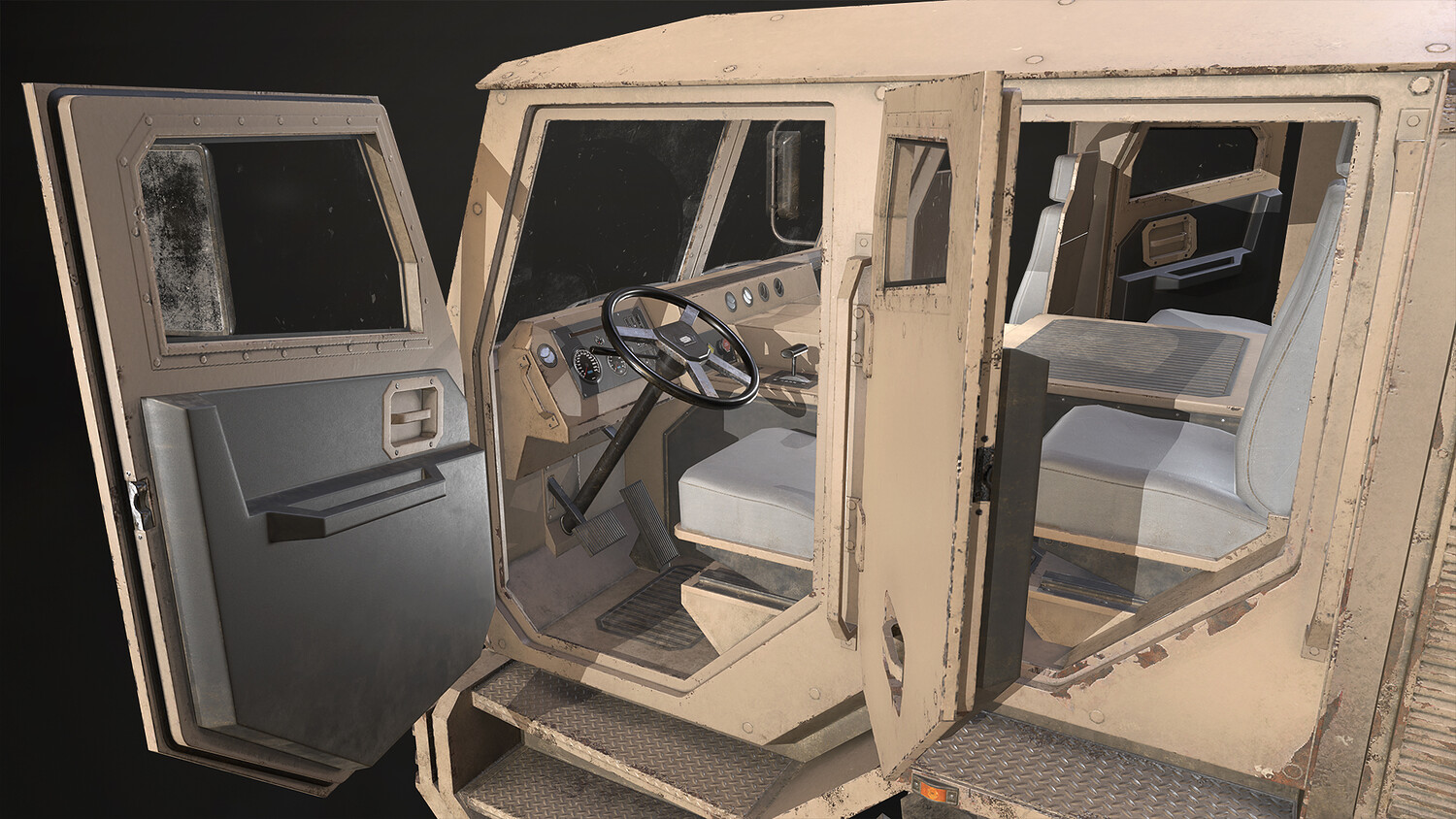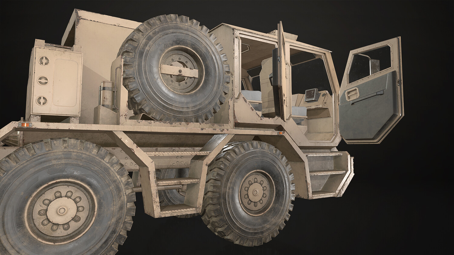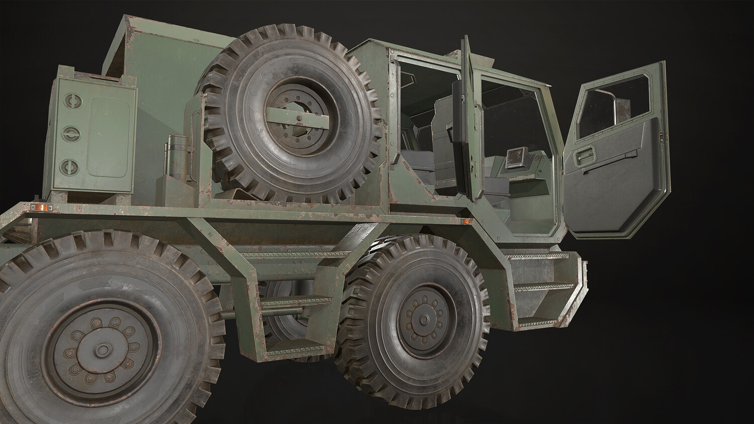 - All doors, wheels, cabin hatch, fifth wheel, steering wheel and shifter are separate objects and can be easily rigged/animated.