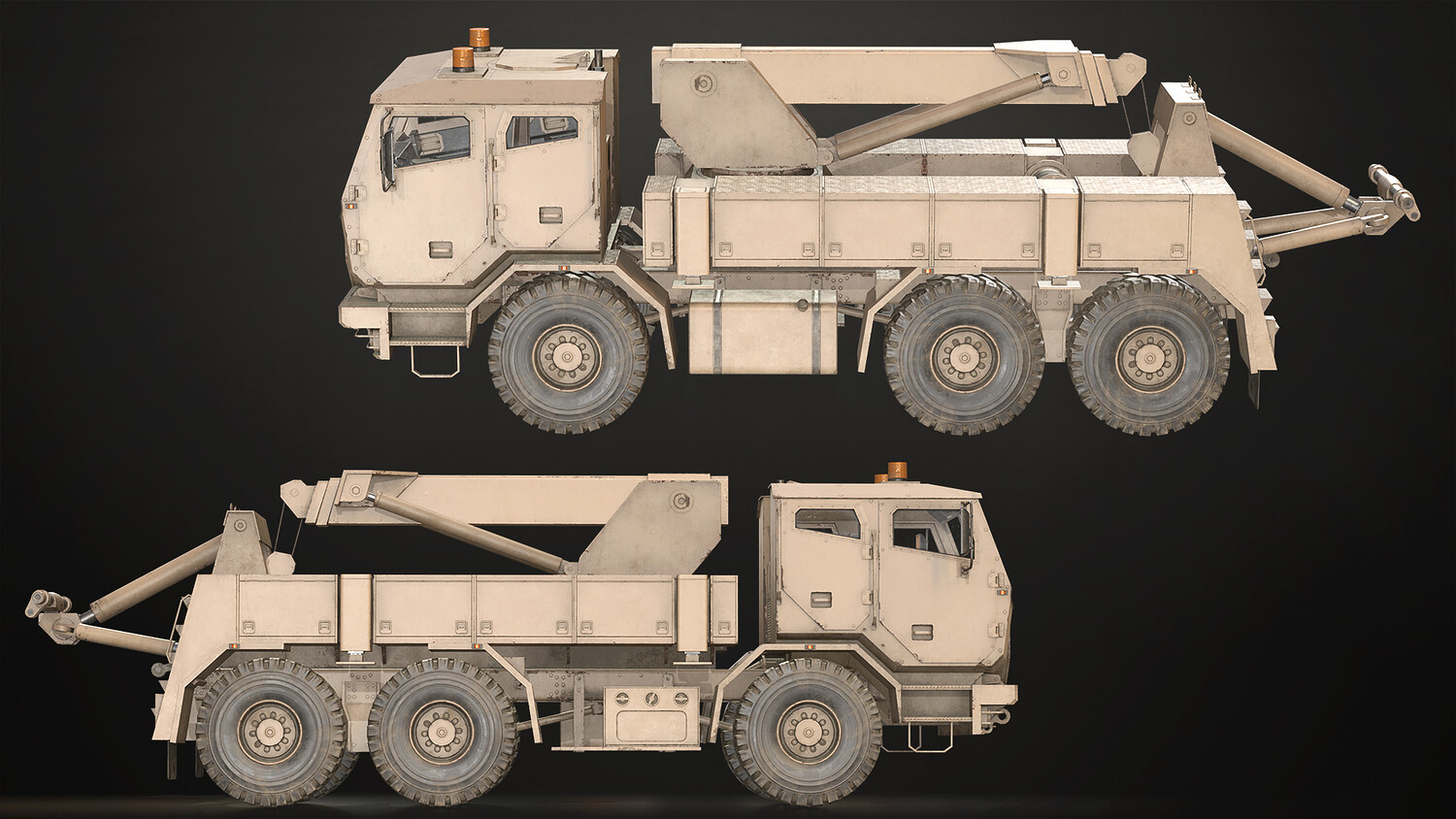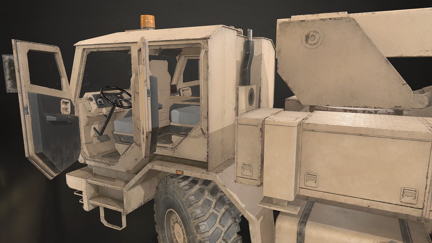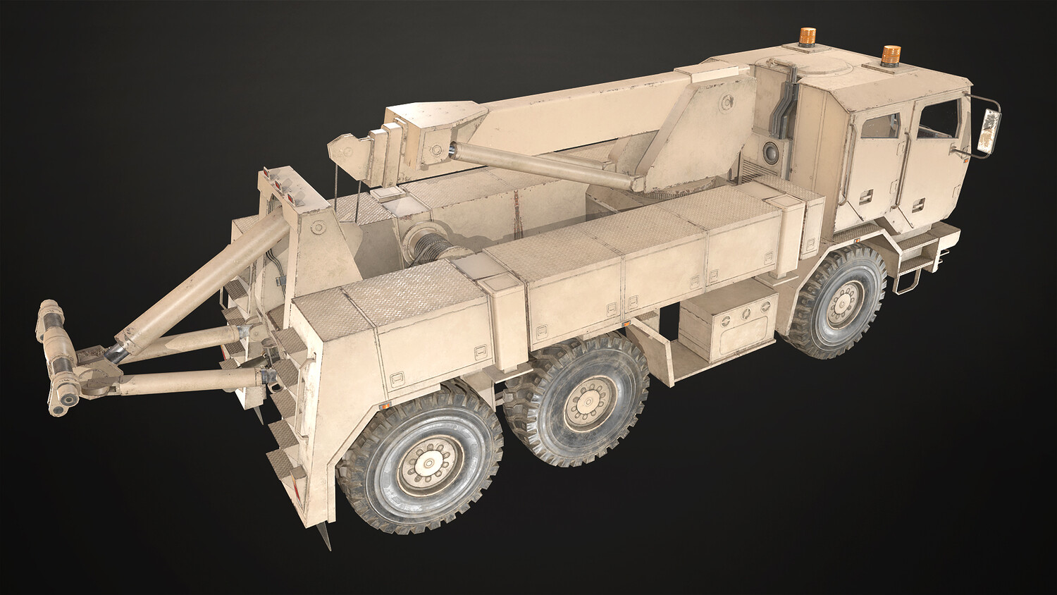 - All doors, wheels, steering wheel and shifters are separate objects and can be easily rigged/animated. Wrecker parts such as crane, tow, outriggers are also separated, ready to rig/animate (model NOT animated). It can all be detached if desired to use only truck chassis.