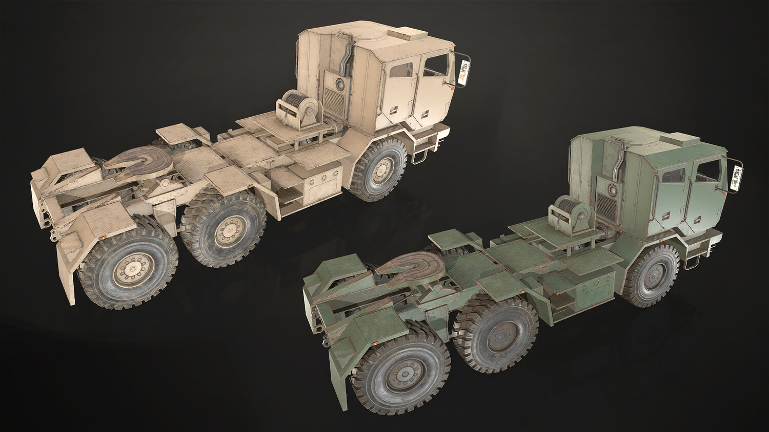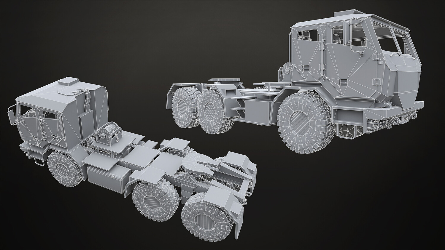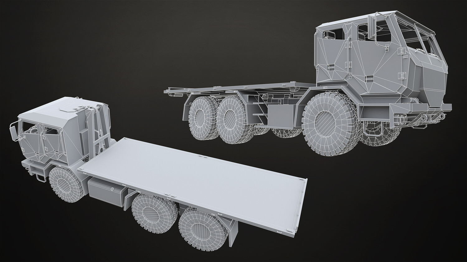 - All doors, wheels, steering wheel, shifters and fifth wheel are separate objects and can be easily rigged/animated. Wrecker parts (such as crane, tow, outriggers), Flatbed parts and Cargo parts (cover, structure, doors) are also separated, ready to rig/animate (models NOT animated). It can all be detached if desired to use only truck chassis.