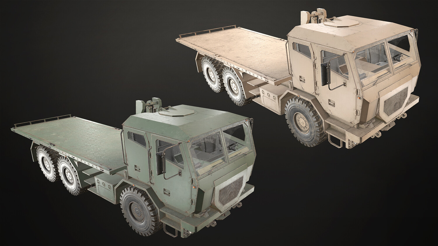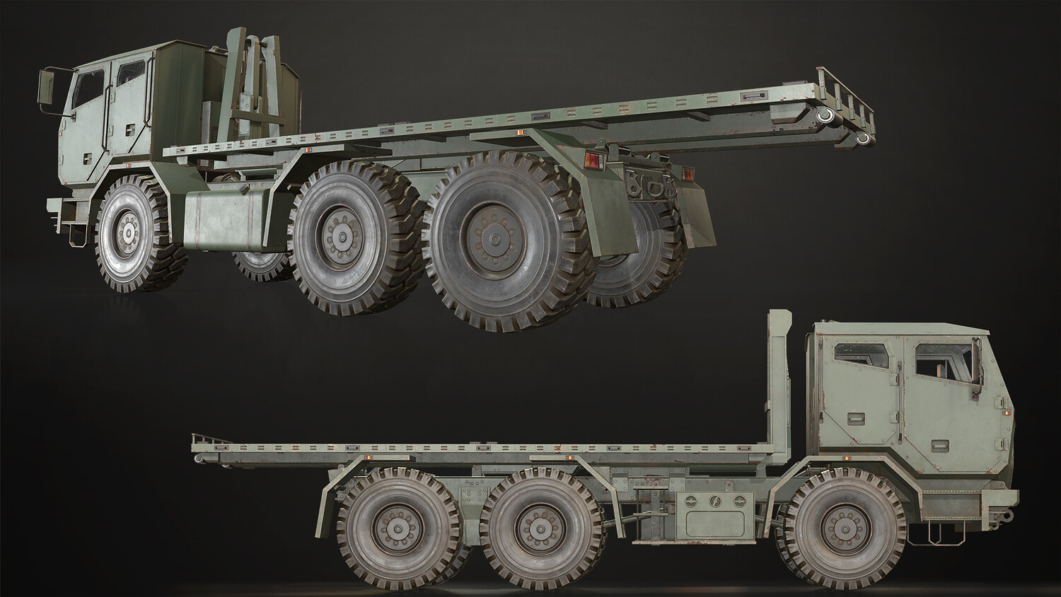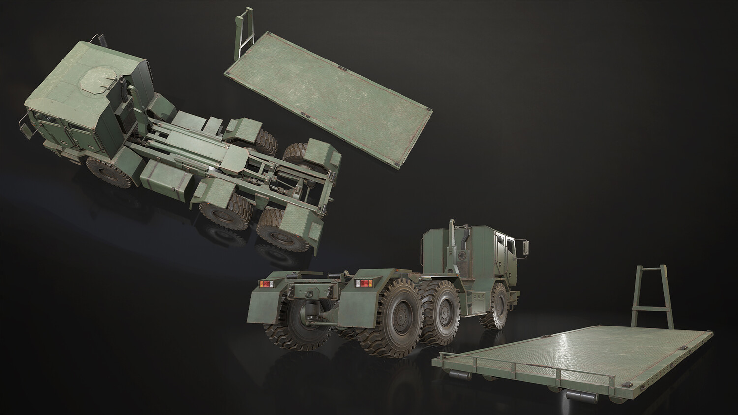 - All doors, wheels, steering wheel, shifters and fifth wheel are separate objects and can be easily rigged/animated. Wrecker parts (such as crane, tow, outriggers), Flatbed parts and Cargo parts (cover, structure, doors) are also separated, ready to rig/animate (models NOT animated). It can all be detached if desired to use only truck chassis.
