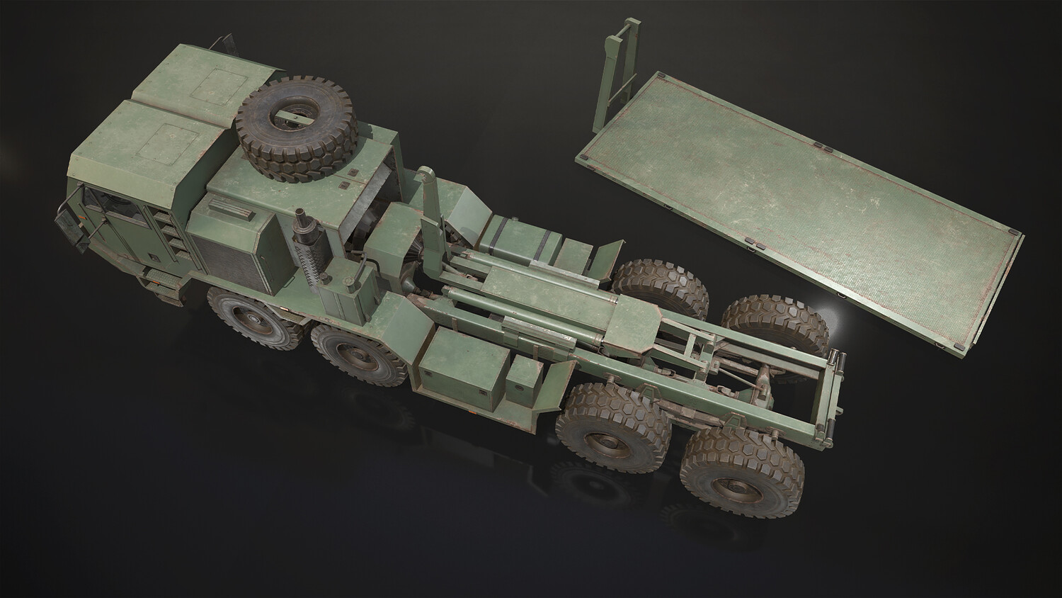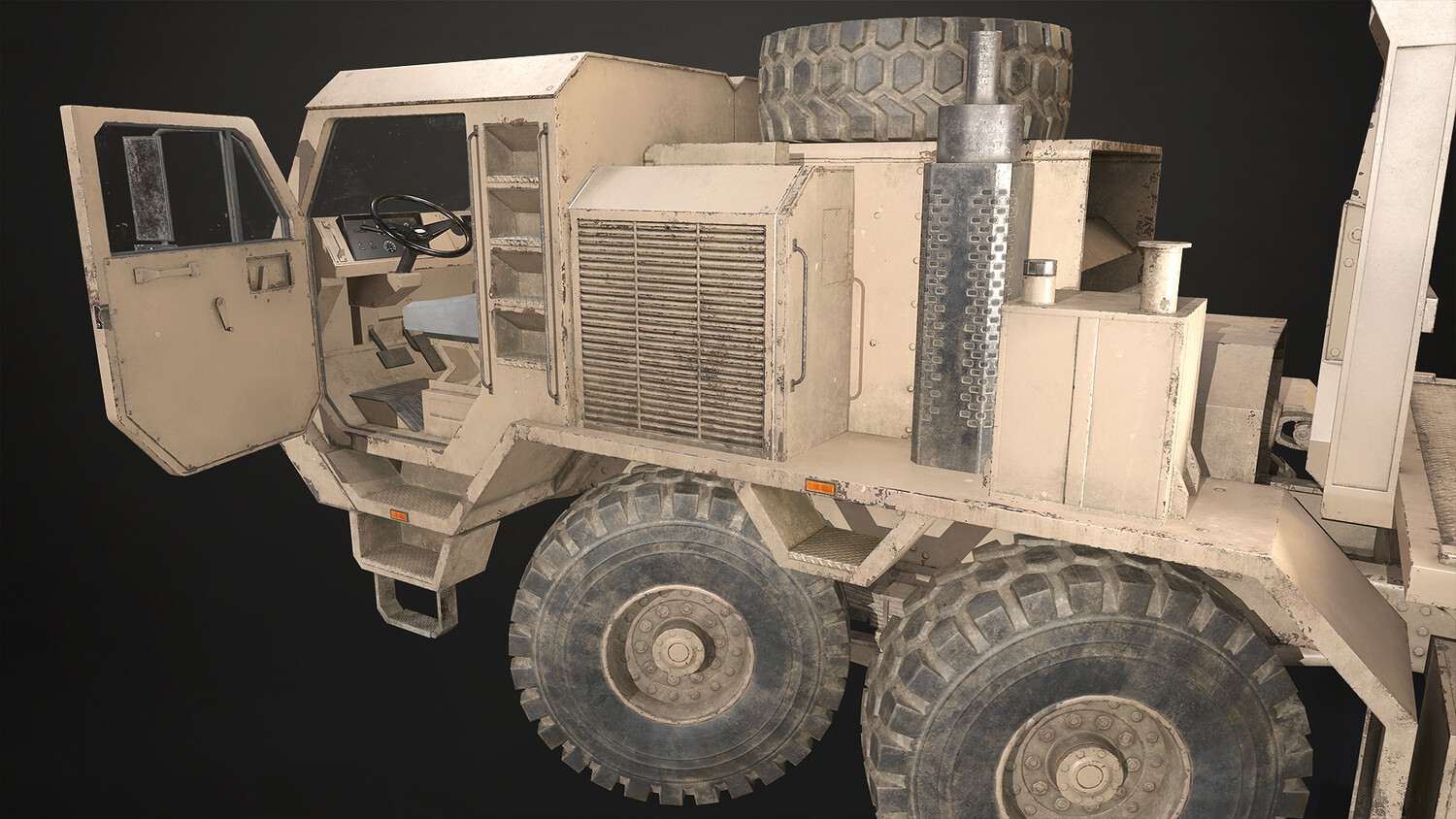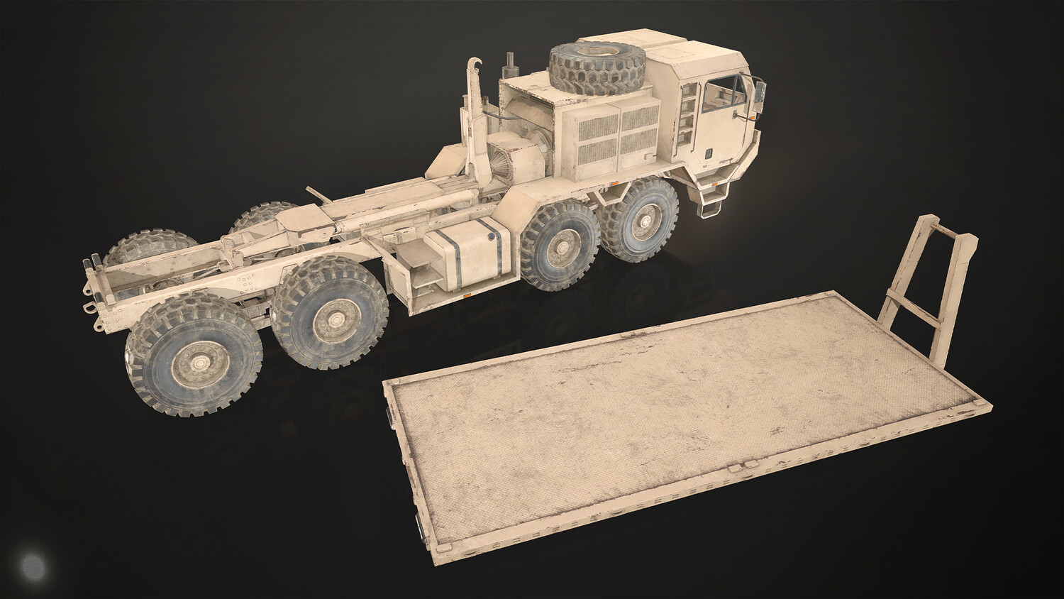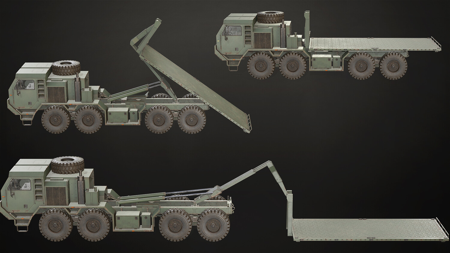 - All doors, wheels, steering wheel and shifter are separate objects and can be easily rigged/animated. Flatbed parts such as bed, arm and hydraulic cylinders also separated, ready to rig/animate (model NOT animated). It can all be detached if desired to use only truck chassis. - PBR textures made in Substance Painter