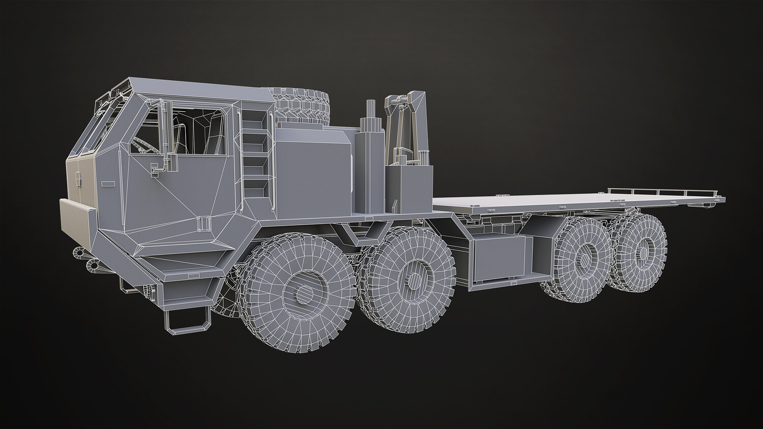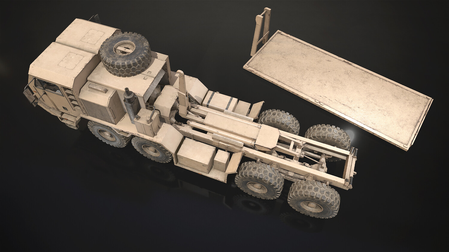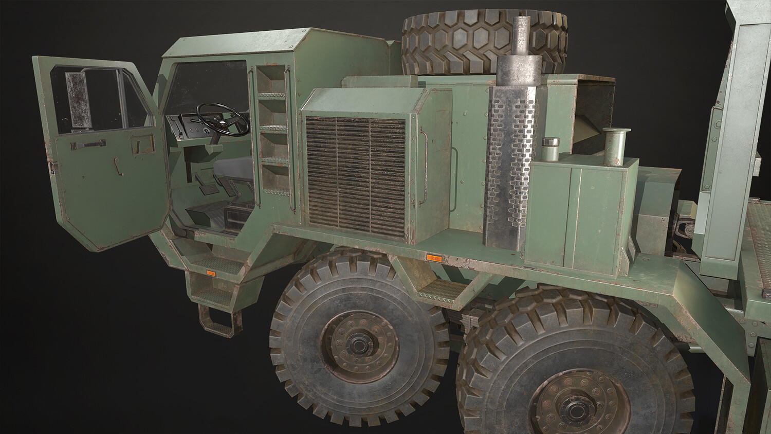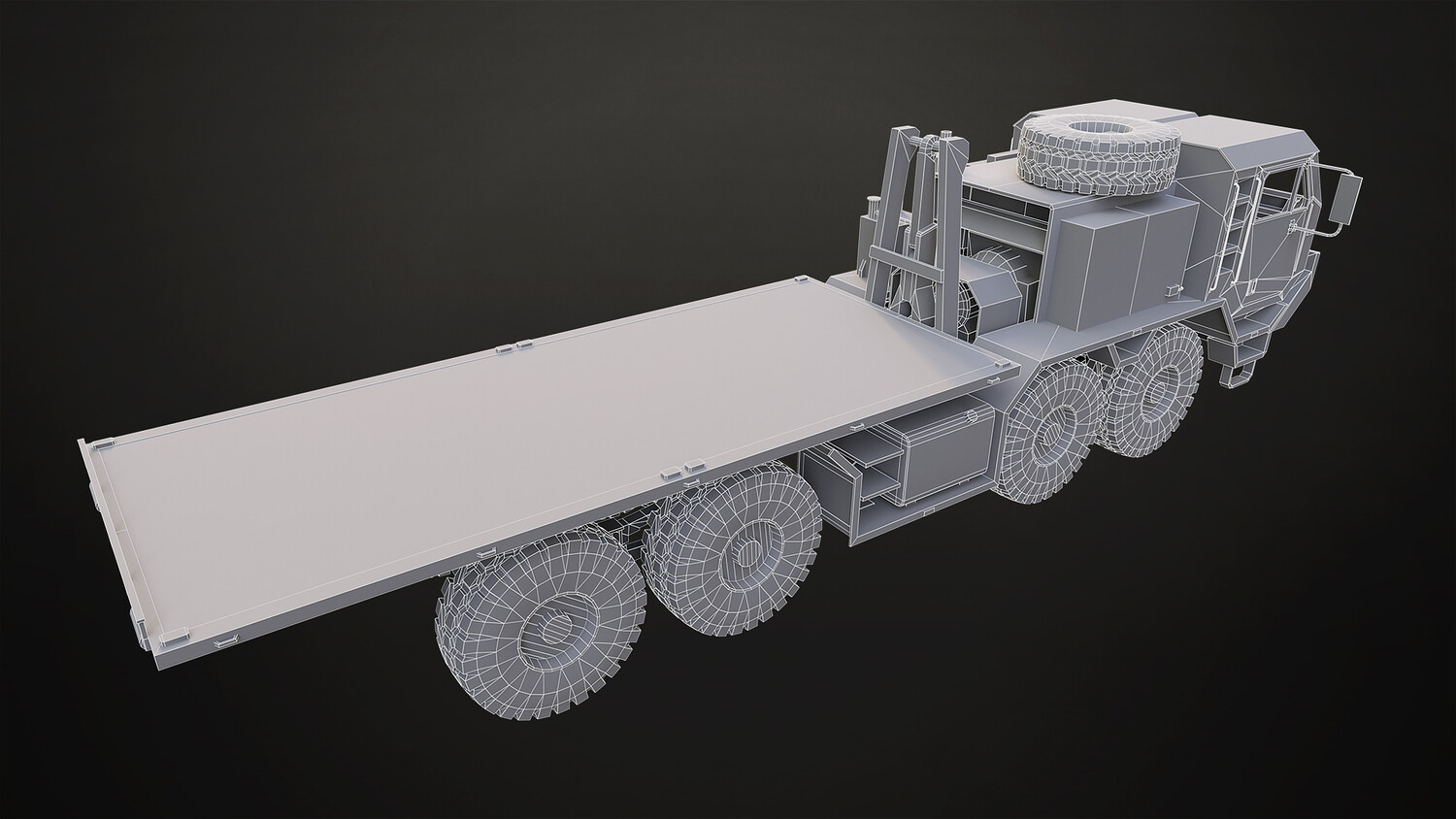 - All doors, wheels, steering wheel and shifter are separate objects and can be easily rigged/animated. Flatbed parts such as bed, arm and hydraulic cylinders also separated, ready to rig/animate (model NOT animated). It can all be detached if desired to use only truck chassis. - PBR textures made in Substance Painter